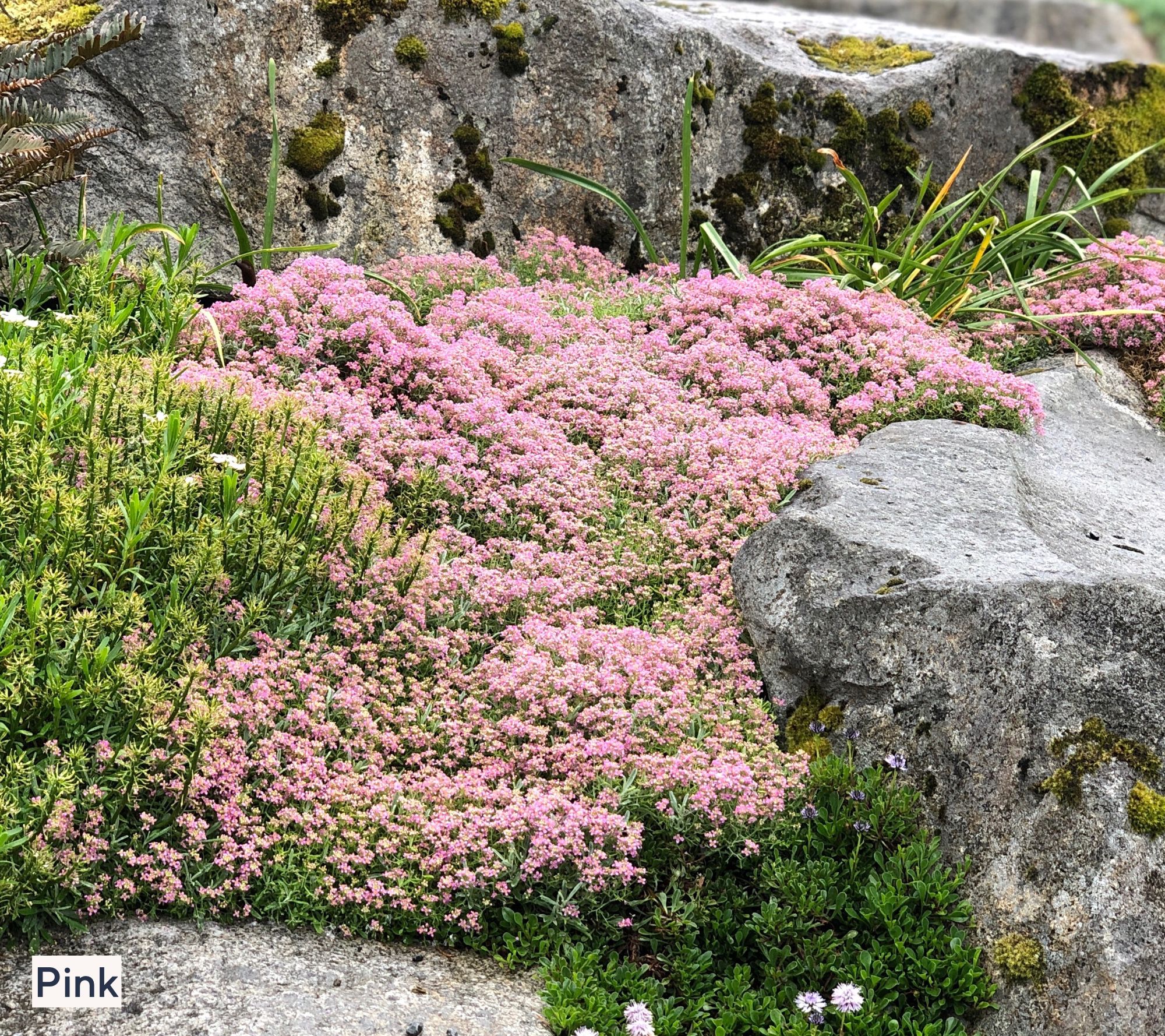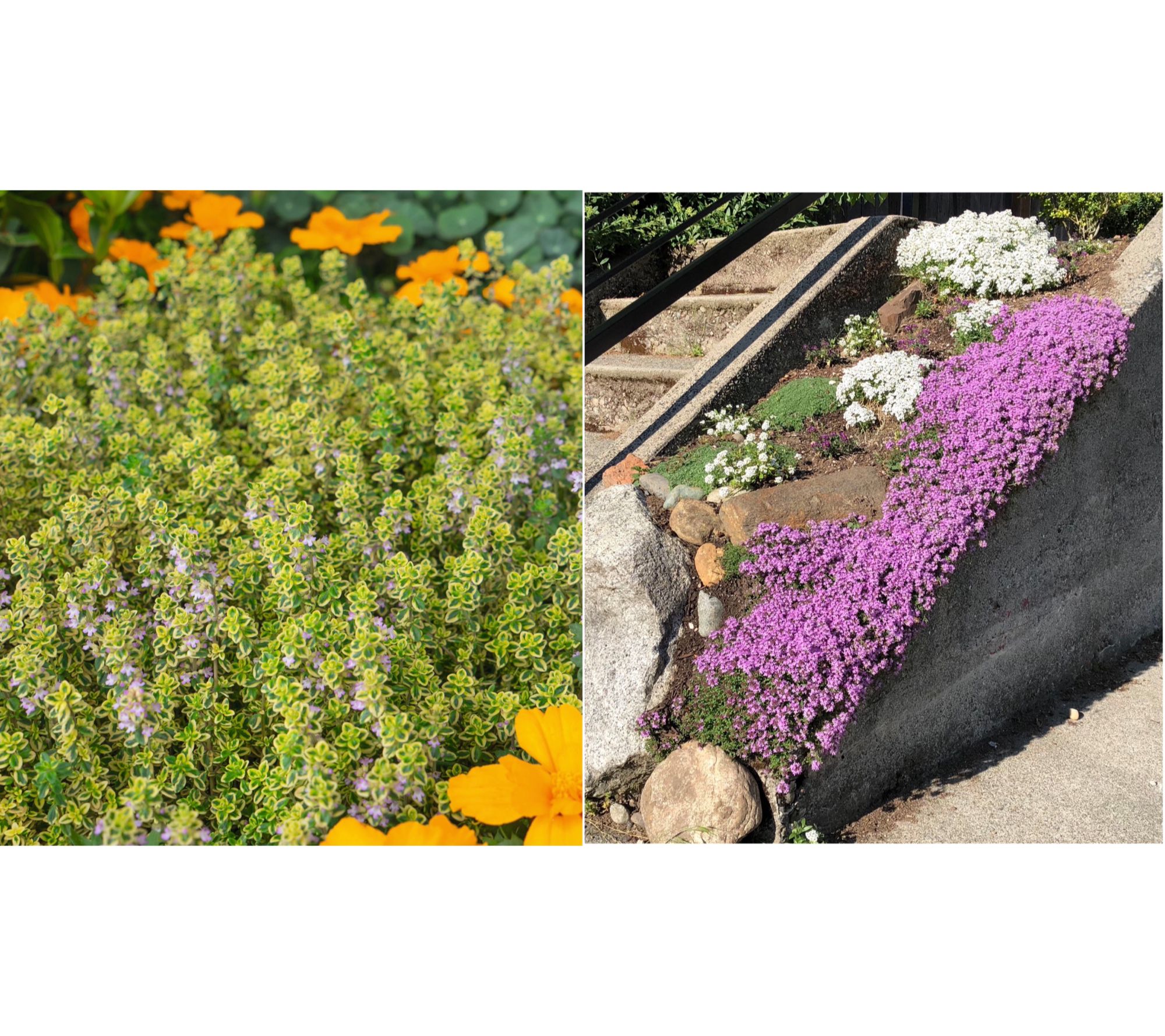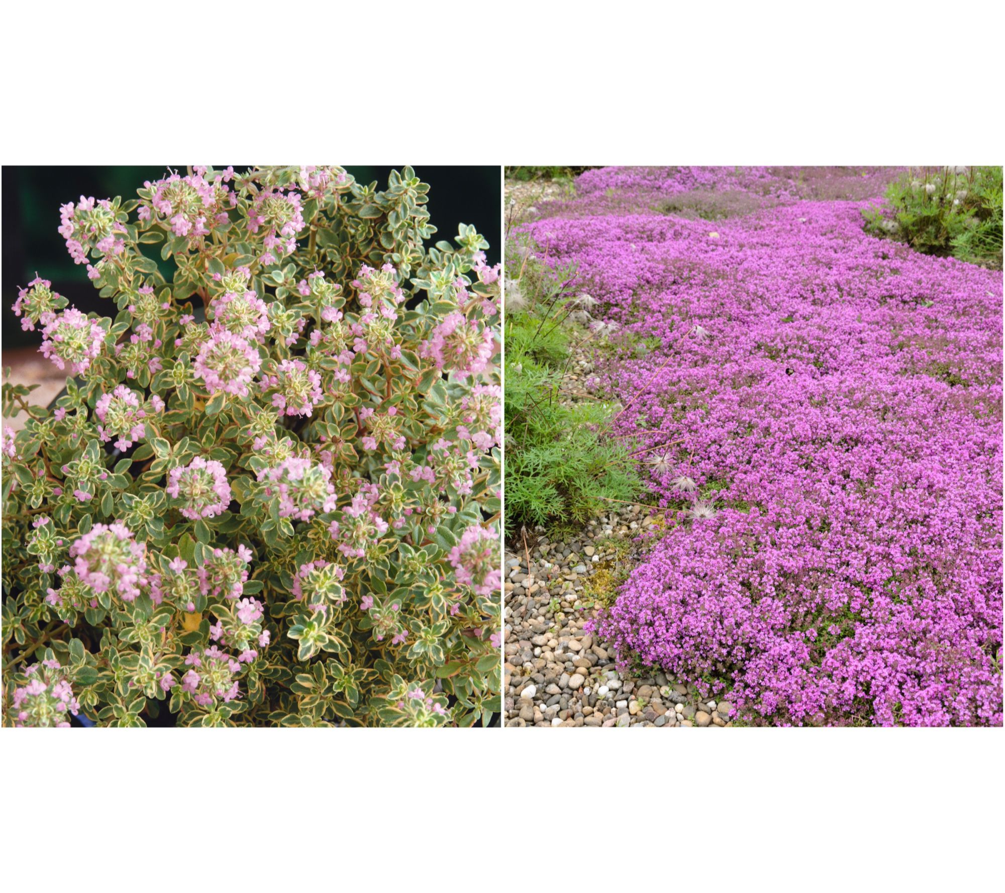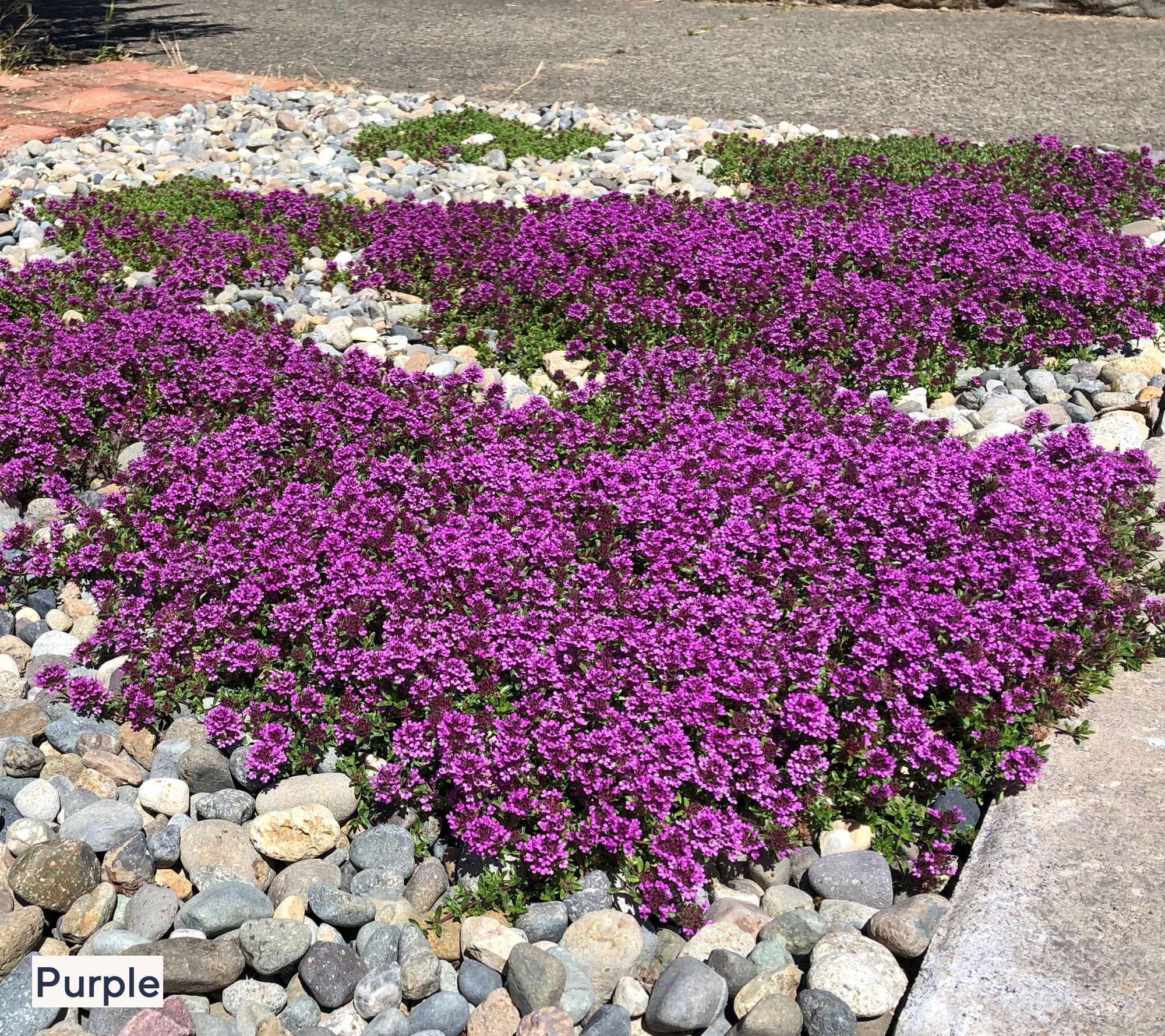 Create a lush carpet of vibrant color in your sunny spaces with this Trample Me flowering thyme groundcover. Ideal for busy paths and open areas, its aromatic foliage and delicate flowers not only brighten up your landscape, but also thrive despite foot traffic and dry spells. Enjoy year-round evergreen foliage and a burst of blooms that comes back stronger each season. From Roberta's.