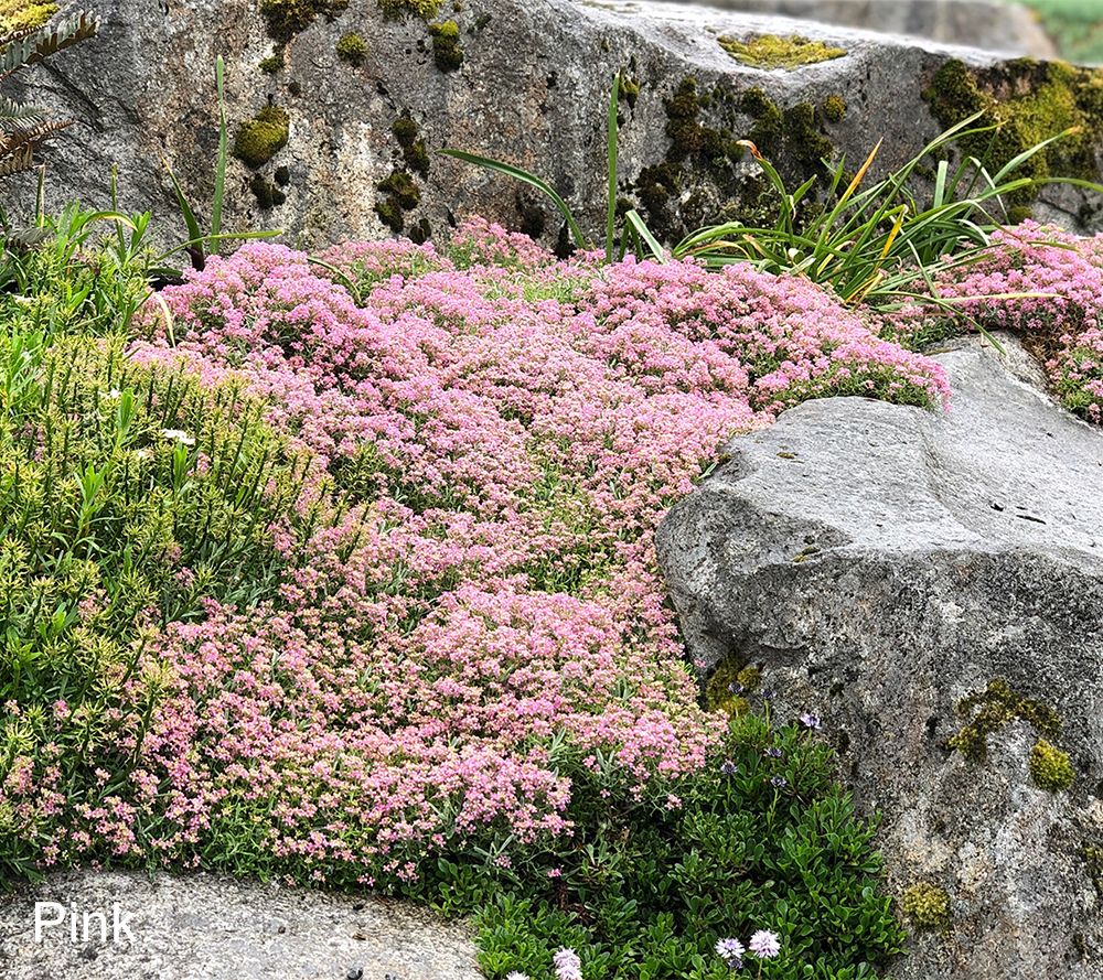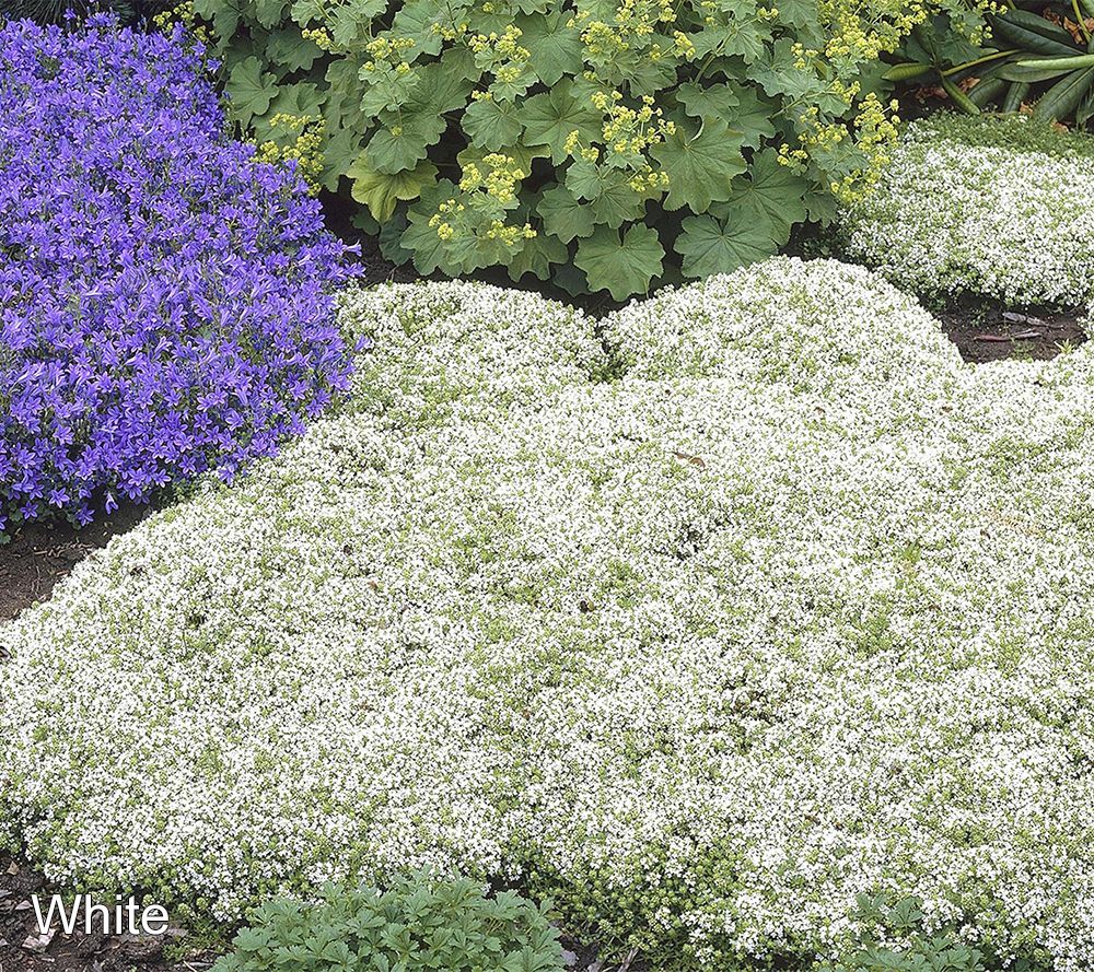 This easily grown, spreading thyme variety works well when planted as a lawn substitute or among stepping stones or pavers to create a living patio. An evergreen with lightly haired foliage, this tiny-growing beauty will appear in low, dense mats, which sprawl randomly and quickly fill in areas as a ground cover. From Roberta's.