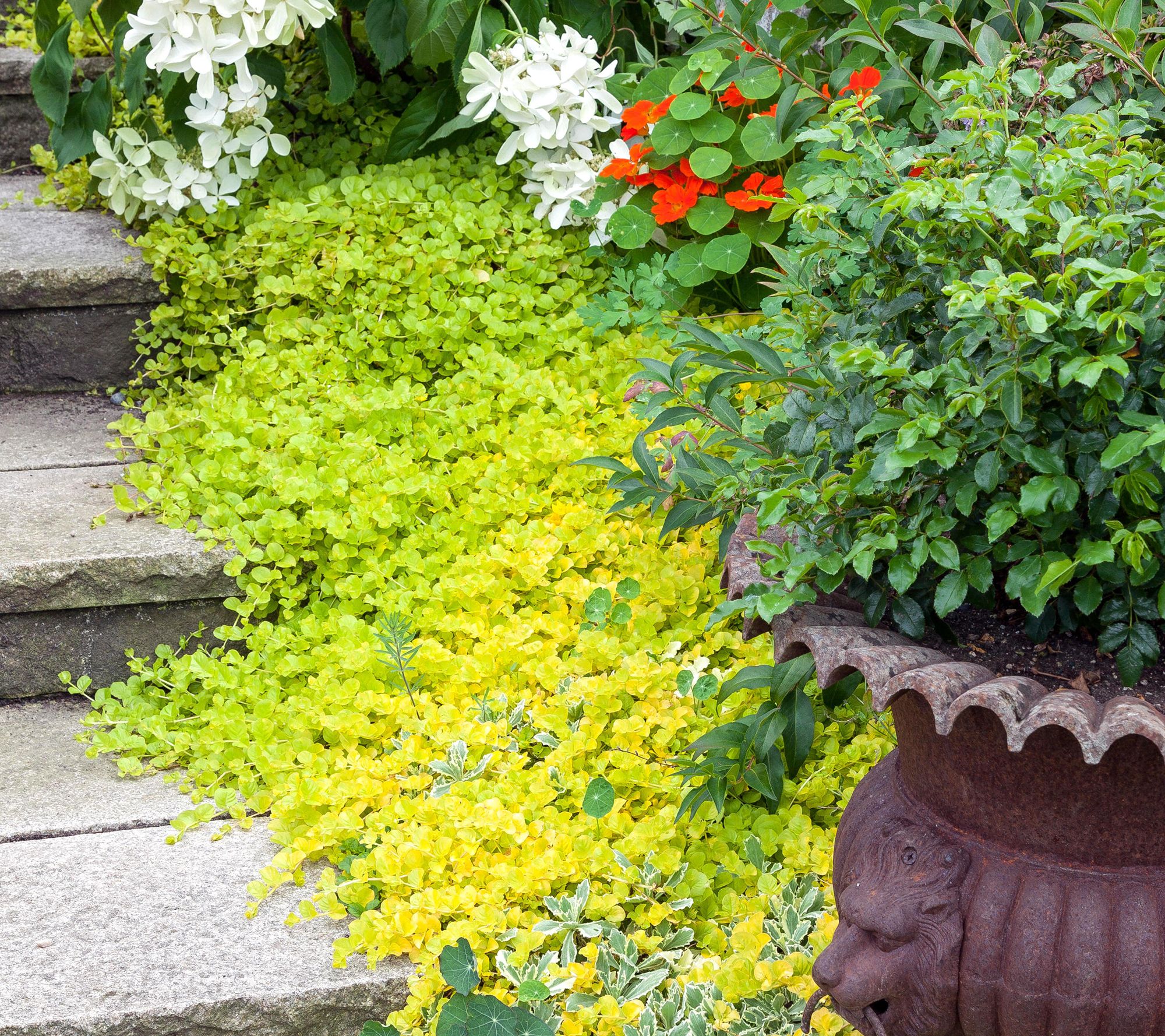 Transform your garden with the vivid charm of Yellow Brick Road creeping Jenny. This versatile groundcover features golden evergreen foliage, perfect for filling gaps, adorning walkways, embellishing retaining walls, or blending effortlessly with other perennials and shrubs. Thriving in winter and easy to grow, it promises year-round beauty in your landscape. From Roberta's.