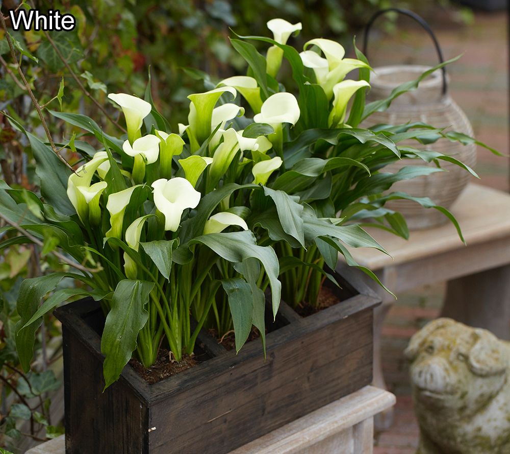 Love to garden but a little short on green space? No worries! Just plant these callas in pots or containers, and enjoy their botanical beauty on a balcony, deck, porch, or patio.