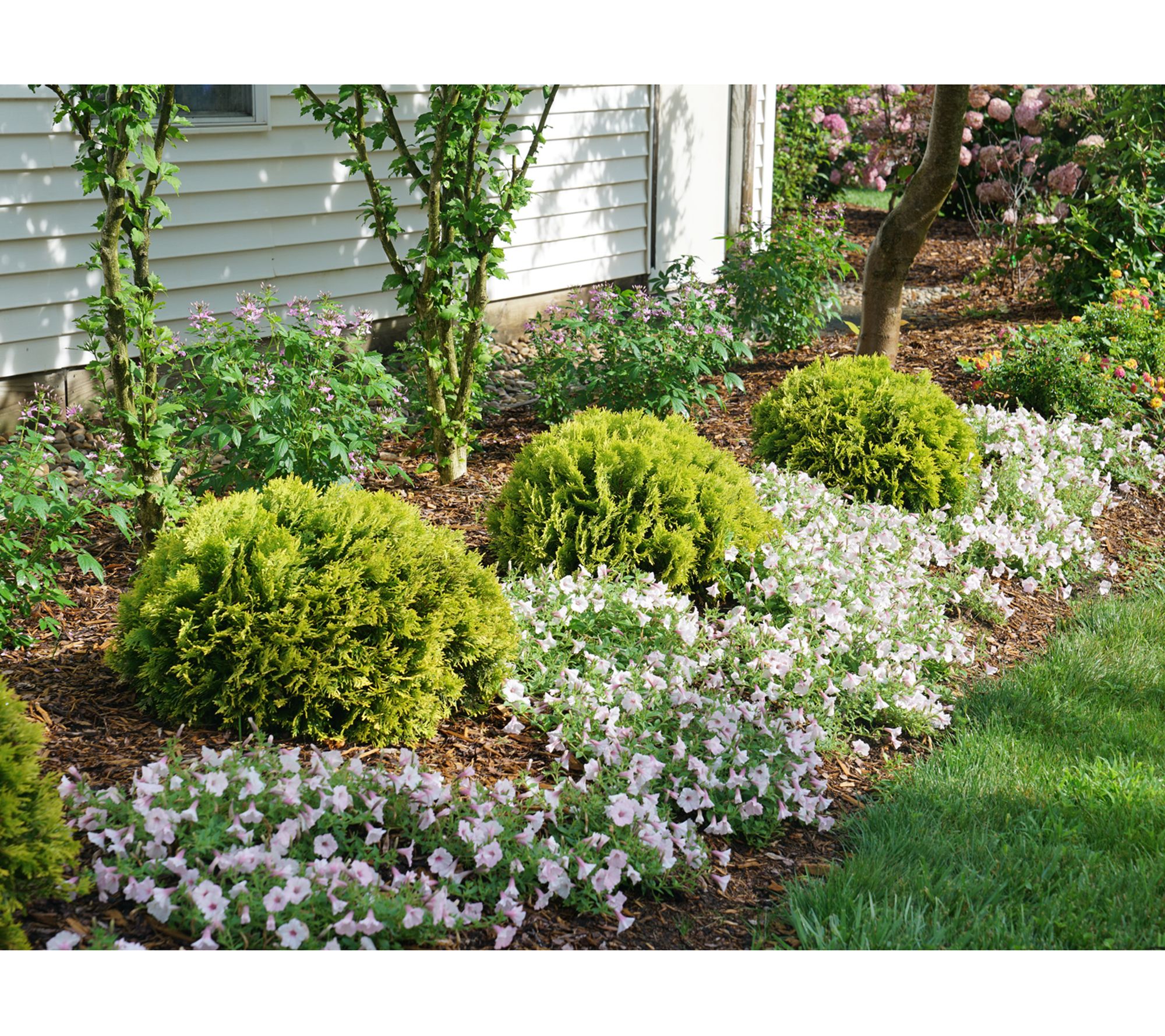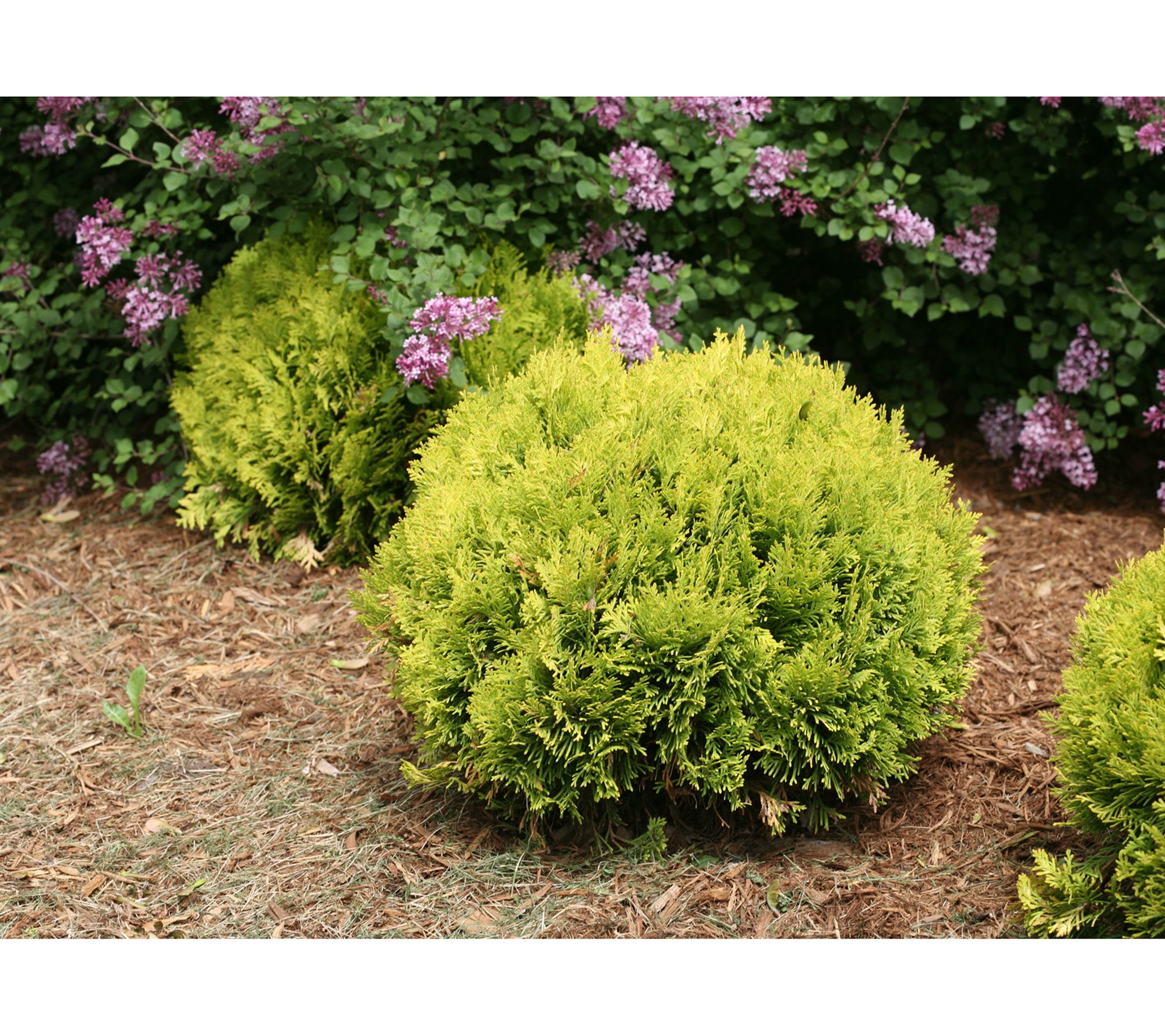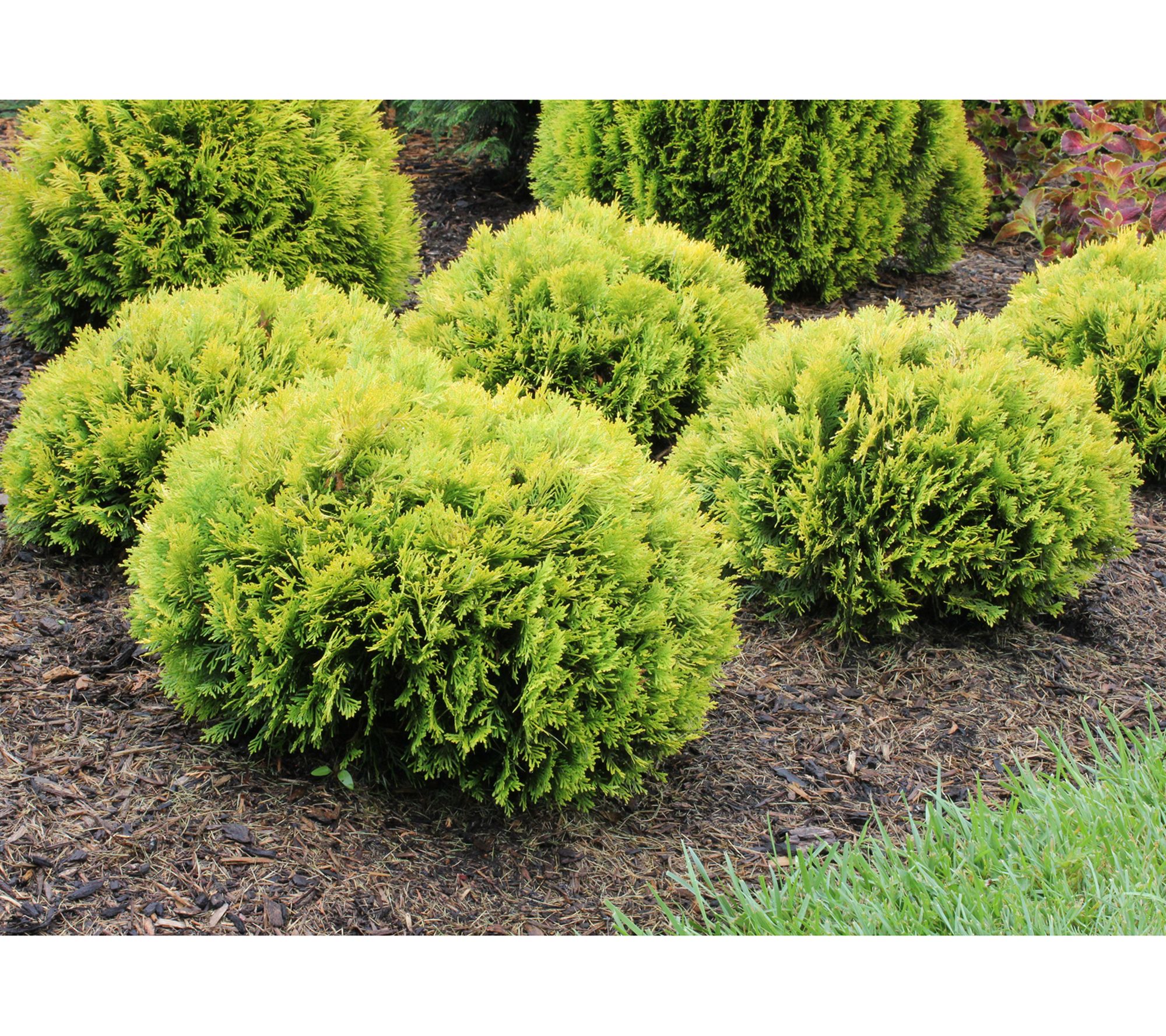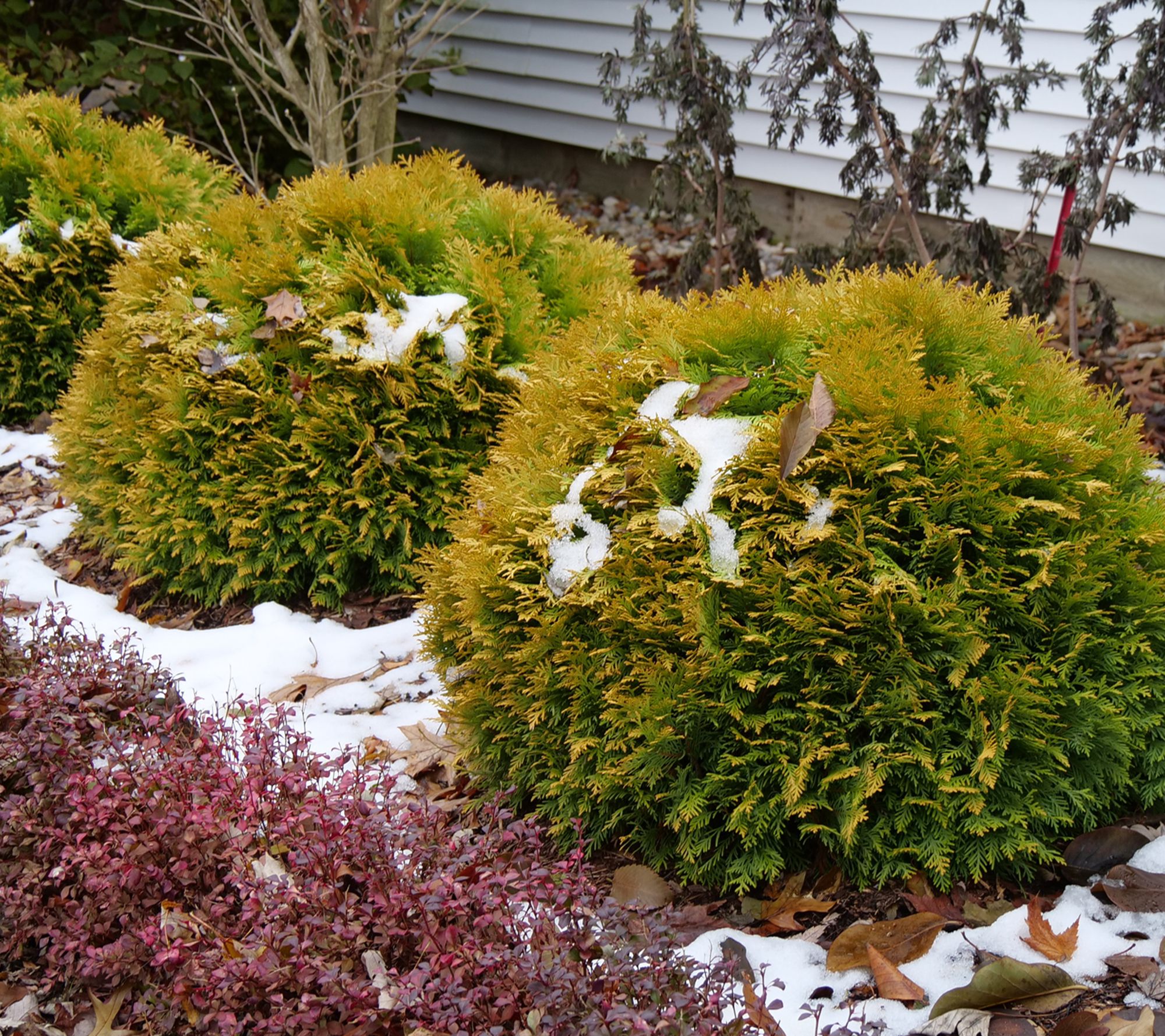 A playful bounce of color for your landscape, Anna's Magic Ball arborvitae is a cute little sphere of cheerful yellow-green foliage that stands up to cold weather and requires little to no pruning. From Roberta's.