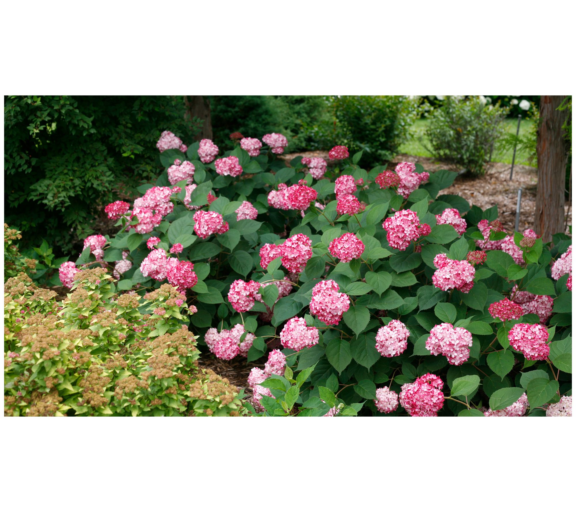 Enjoy beautiful bold blooms from this Invincibelle Ruby hydrangea! Plant in your landscaping or as a statement plant in your cottage garden. From Roberta's Gardens.