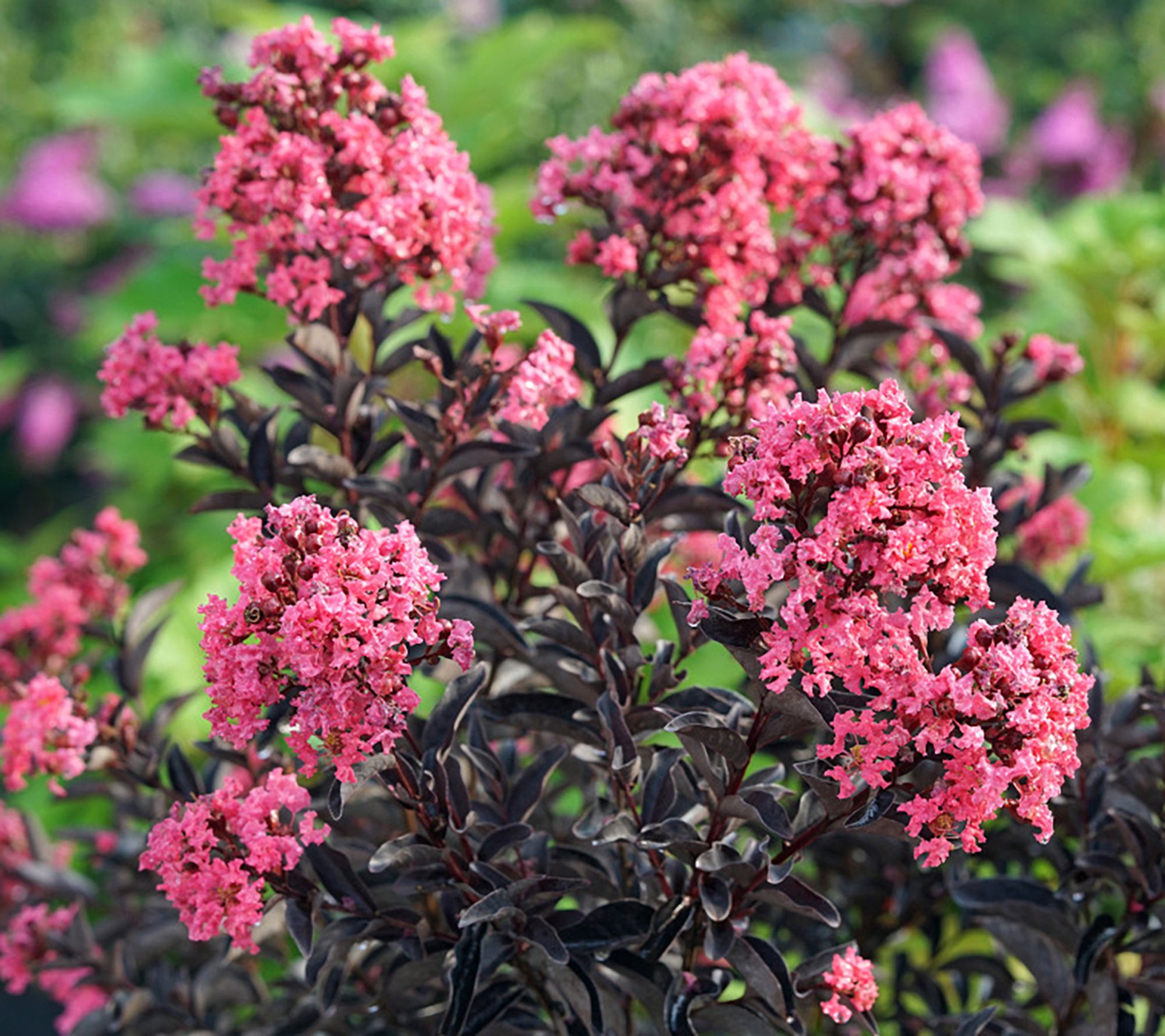 Showcasing eye-catching reddish-black foliage and deeply saturated pink blooms that start early and last all summer, the Center Stage crapemyrtle is a beautiful way to brighten up your outdoor space. From Roberta's Gardens.