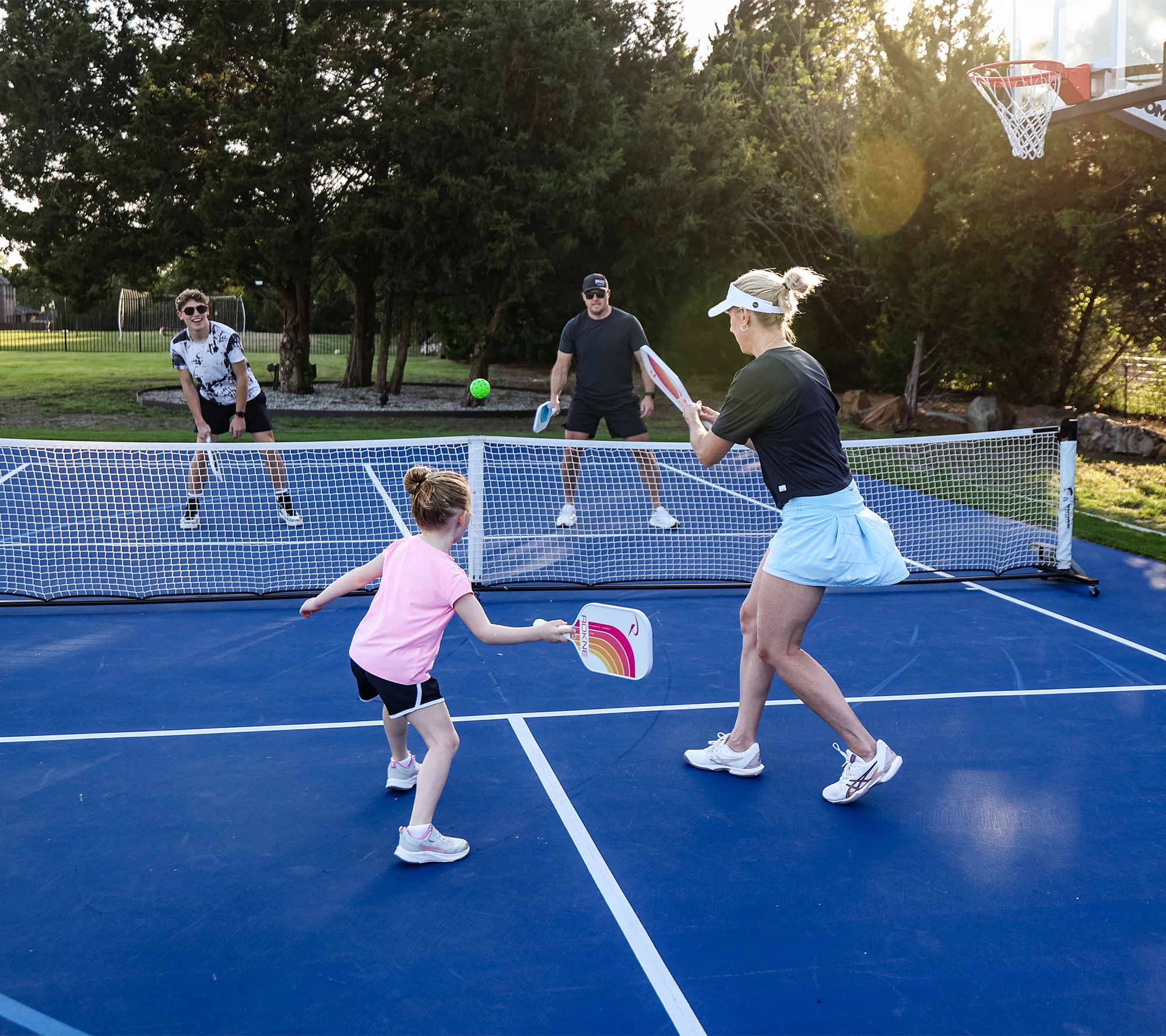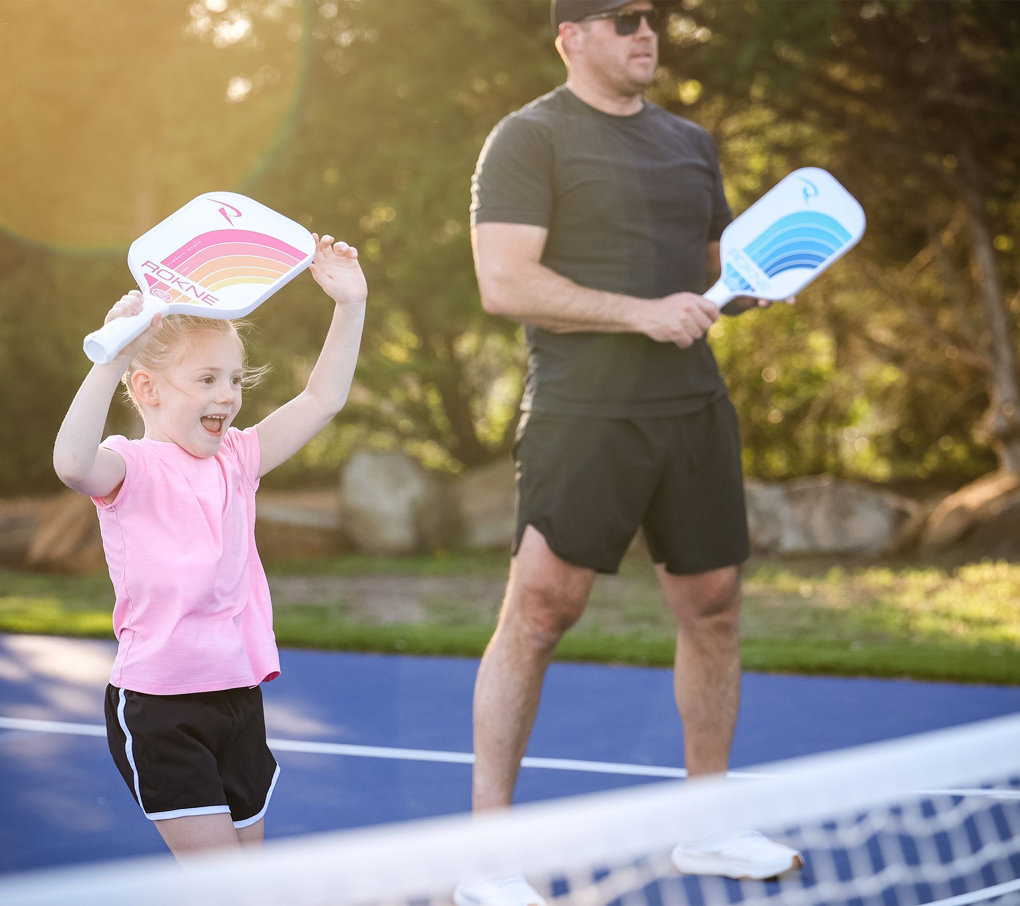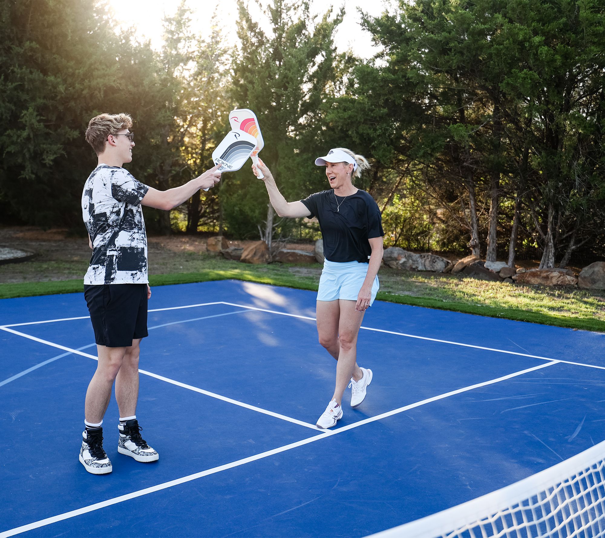 Dominate the court. Whether you're driving the serve or returning with a dink shot, this five-piece pickelball set delivers. Designed for players of all levels, the paddles feature a protective edge guard for durability and comfortable grip to enhance your game. Keep your equipment and other essentials organized in the included sling bag, making certain you're always ready for action on the court. From ROKNE.