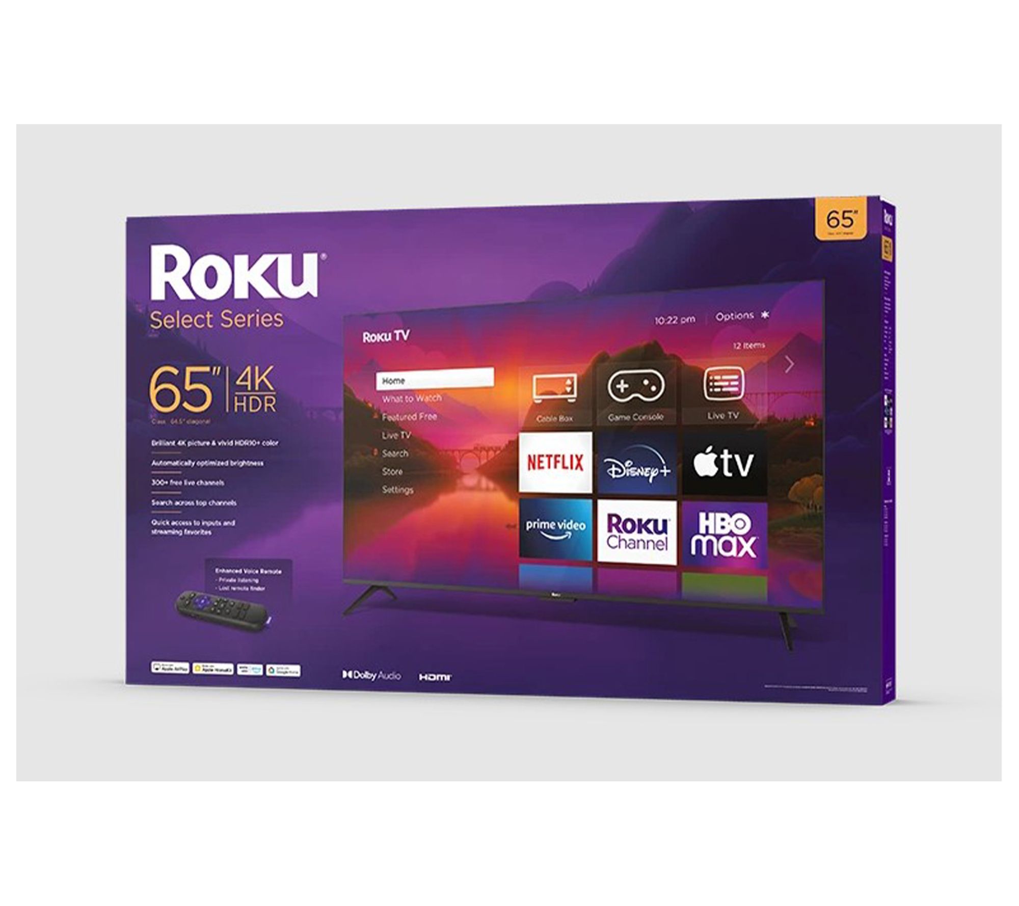 Upgrade your entertainment experience with the Roku Select Series 4K TV, offering a sharp 4K picture that brings your favorite shows and movies to life with stunning detail and vibrant colors. With HDR10+ support, enjoy brilliant color and contrast, while automatic brightness adjustment ensures the perfect view in any room lighting. The frameless design adds a sleek, modern touch to your living space. From Roku.