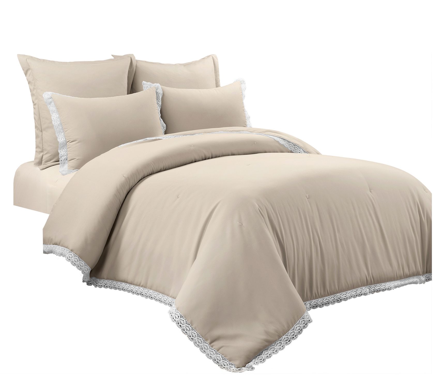 Cozy up in your cottage-style bedroom with this lace-trimmed Rosalie comforter set. From Lush Decor.