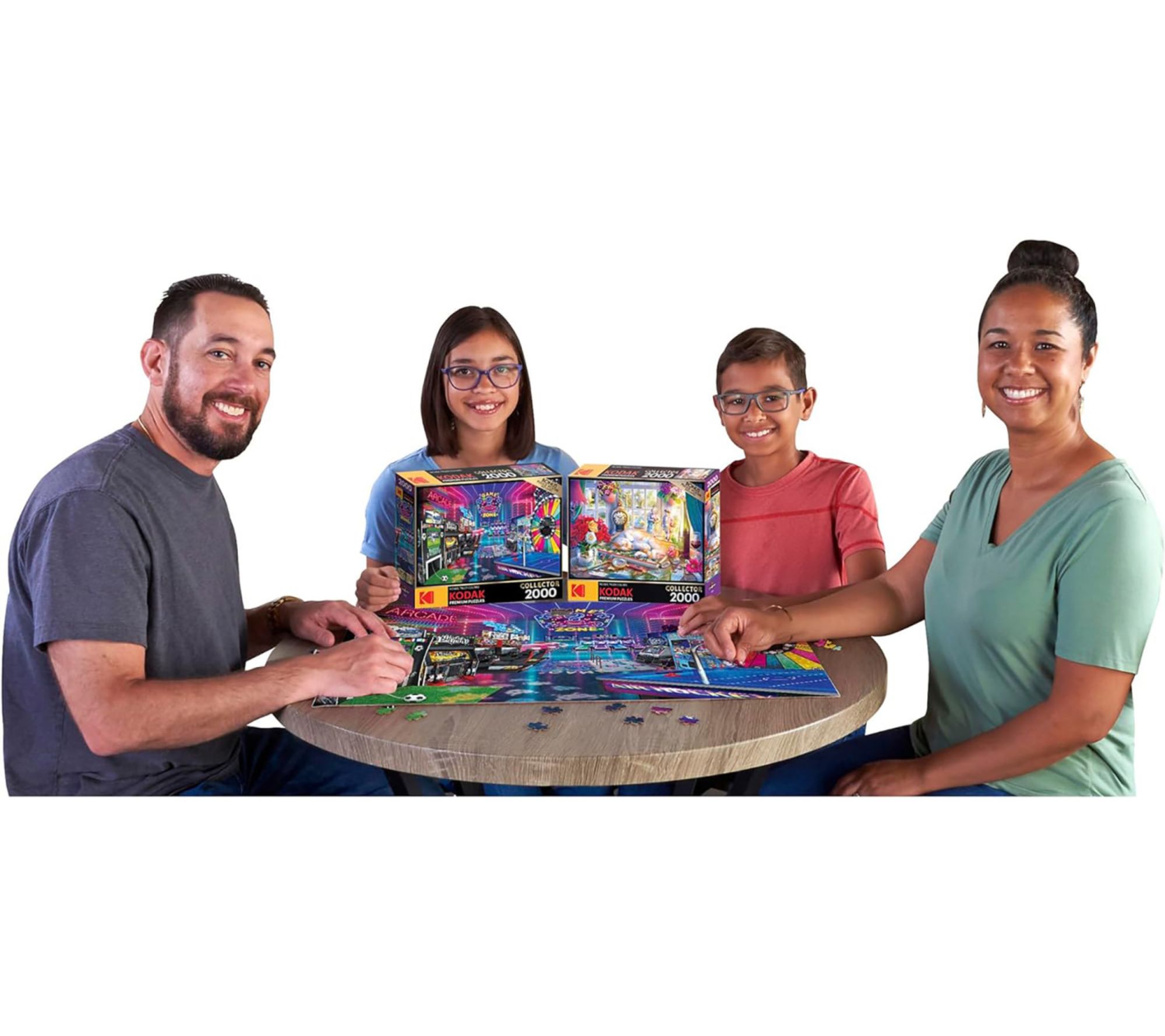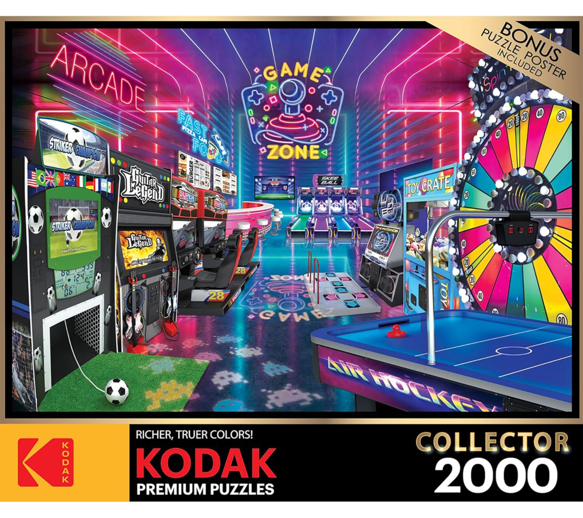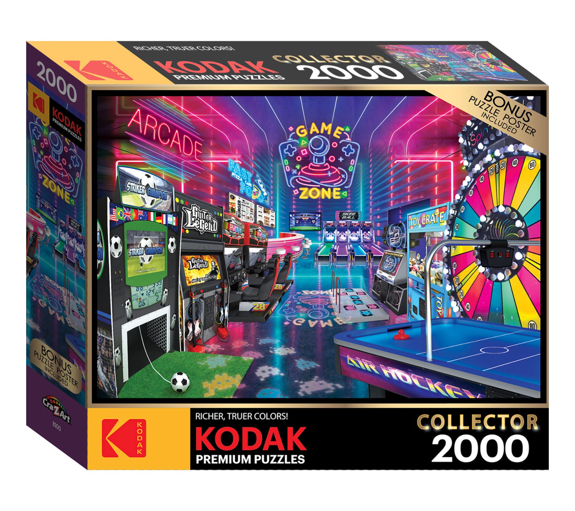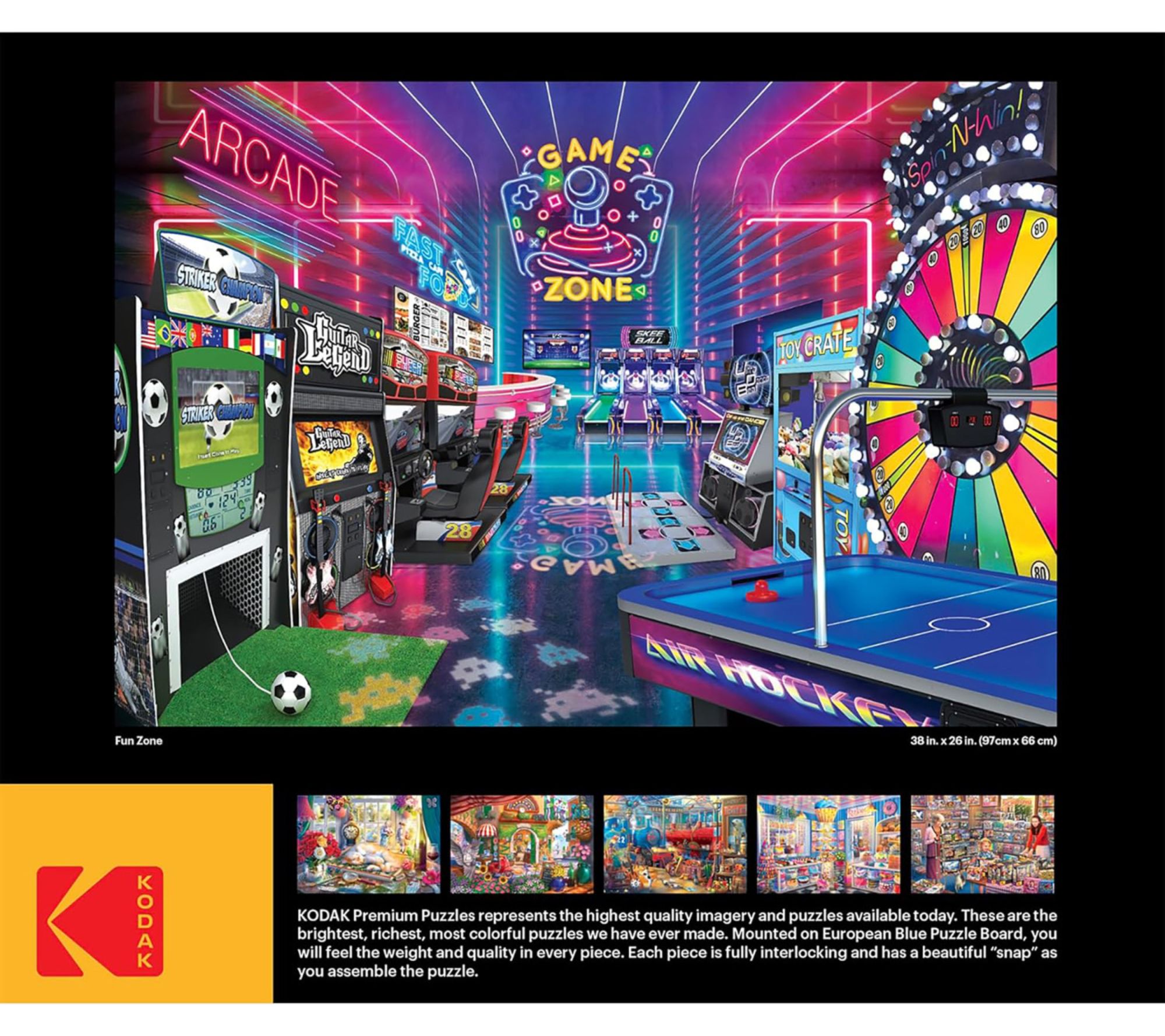 Get ready for hours of enjoyment with the RoseArt Fun Zone 2000-Piece Puzzle. Featuring a vibrant arcade scene with pinball machines and air hockey, this puzzle offers a premium quality experience with its fully interlocking pieces and vivid colors. From RoseArt.