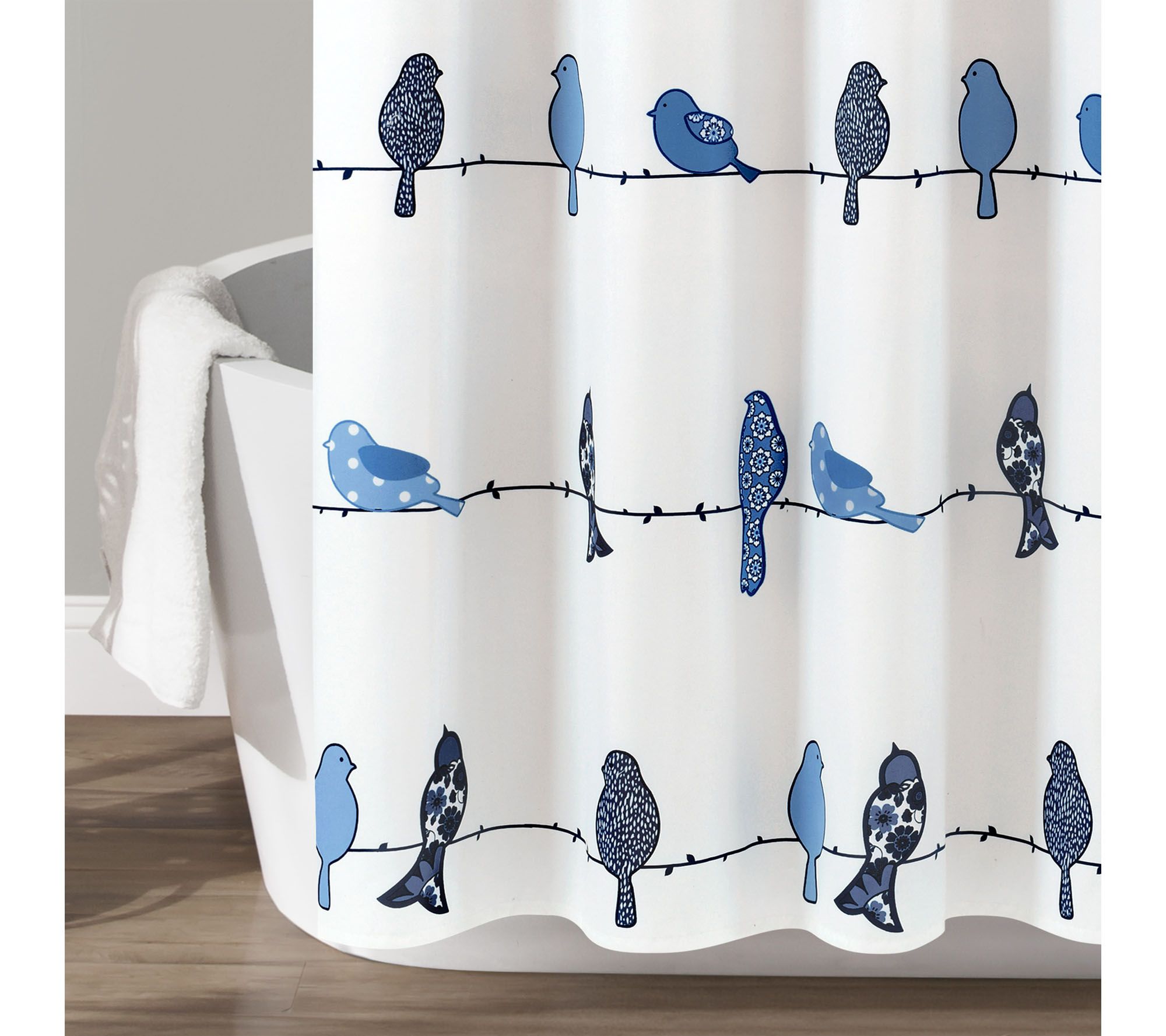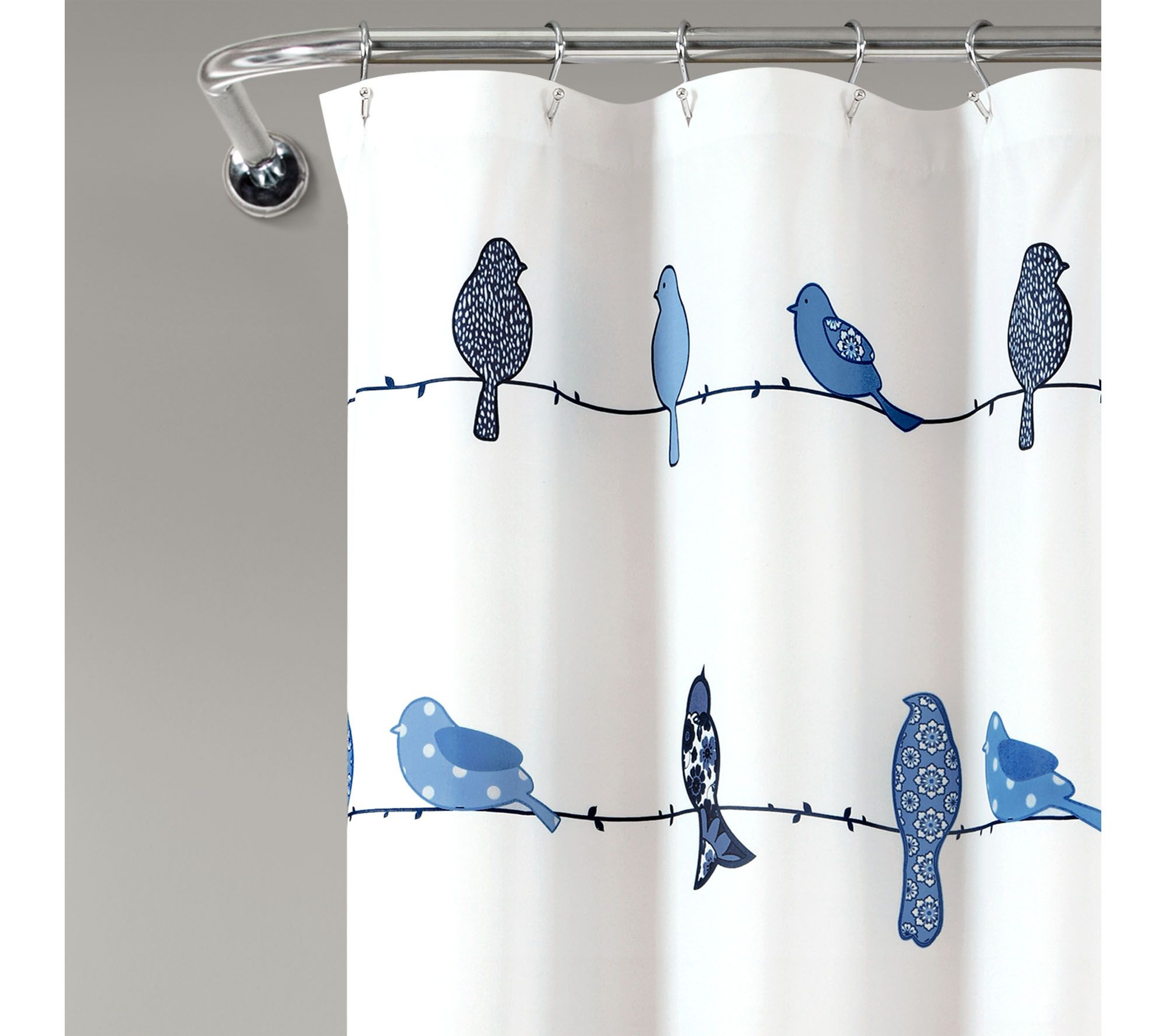 Birds of a feather sit quietly together on this whimsical shower curtain, full of colorful friends that bring a cheerfulness to any bath. From Lush Decor.