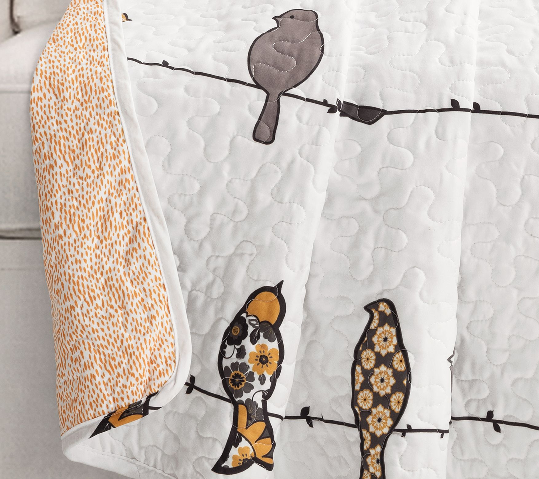 You can't help but fall in love with this fun throw blanket featuring birds with boho patterns sitting along wires. It makes a great conversation piece for your living room, bedroom, or den. From Lush Decor.