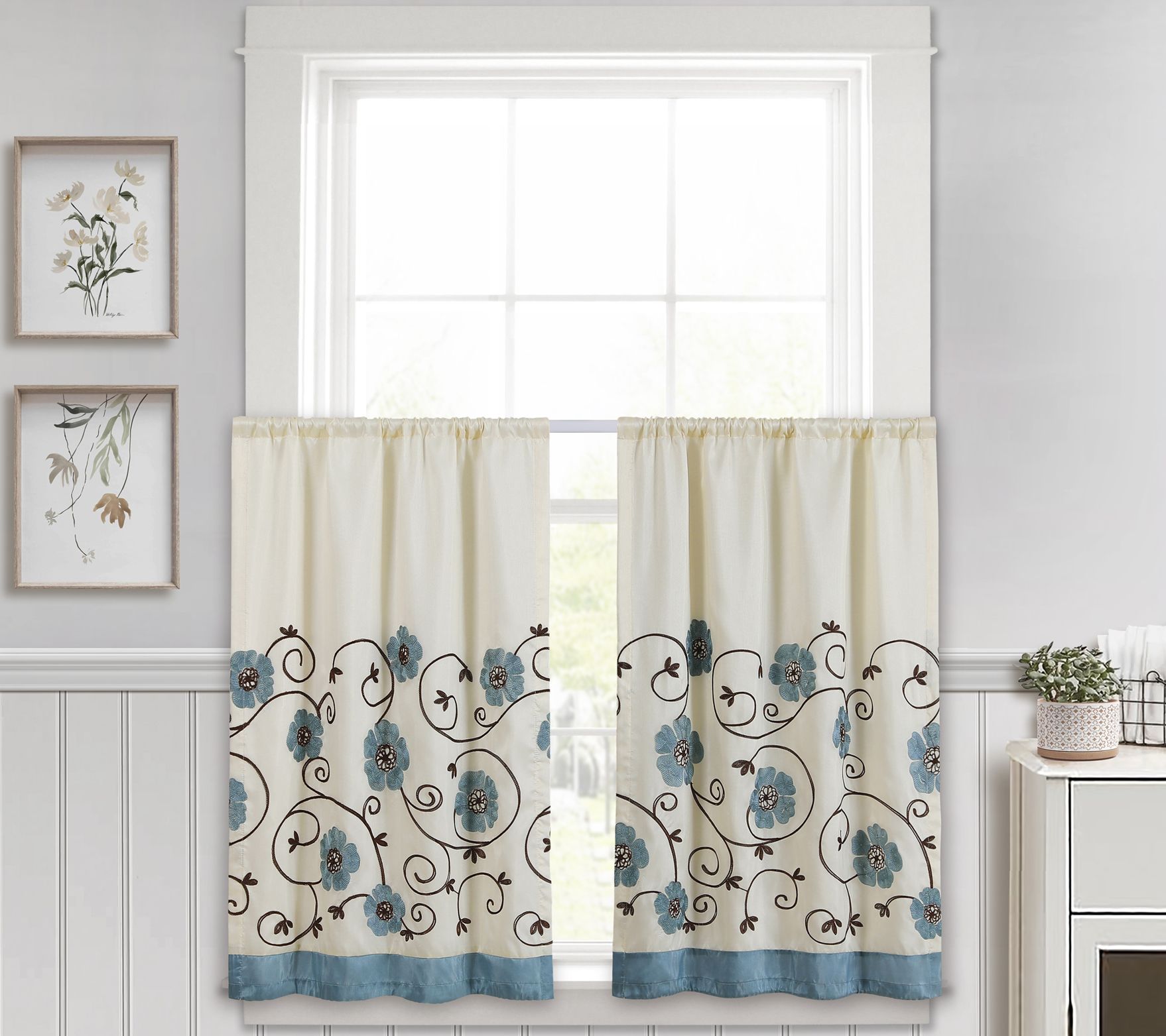 Cheer up your kitchen with these cottage-inspired tier curtain panels. Their embroidered floral design instantly adds a pop of color and elegance to your space. From Lush Decor.