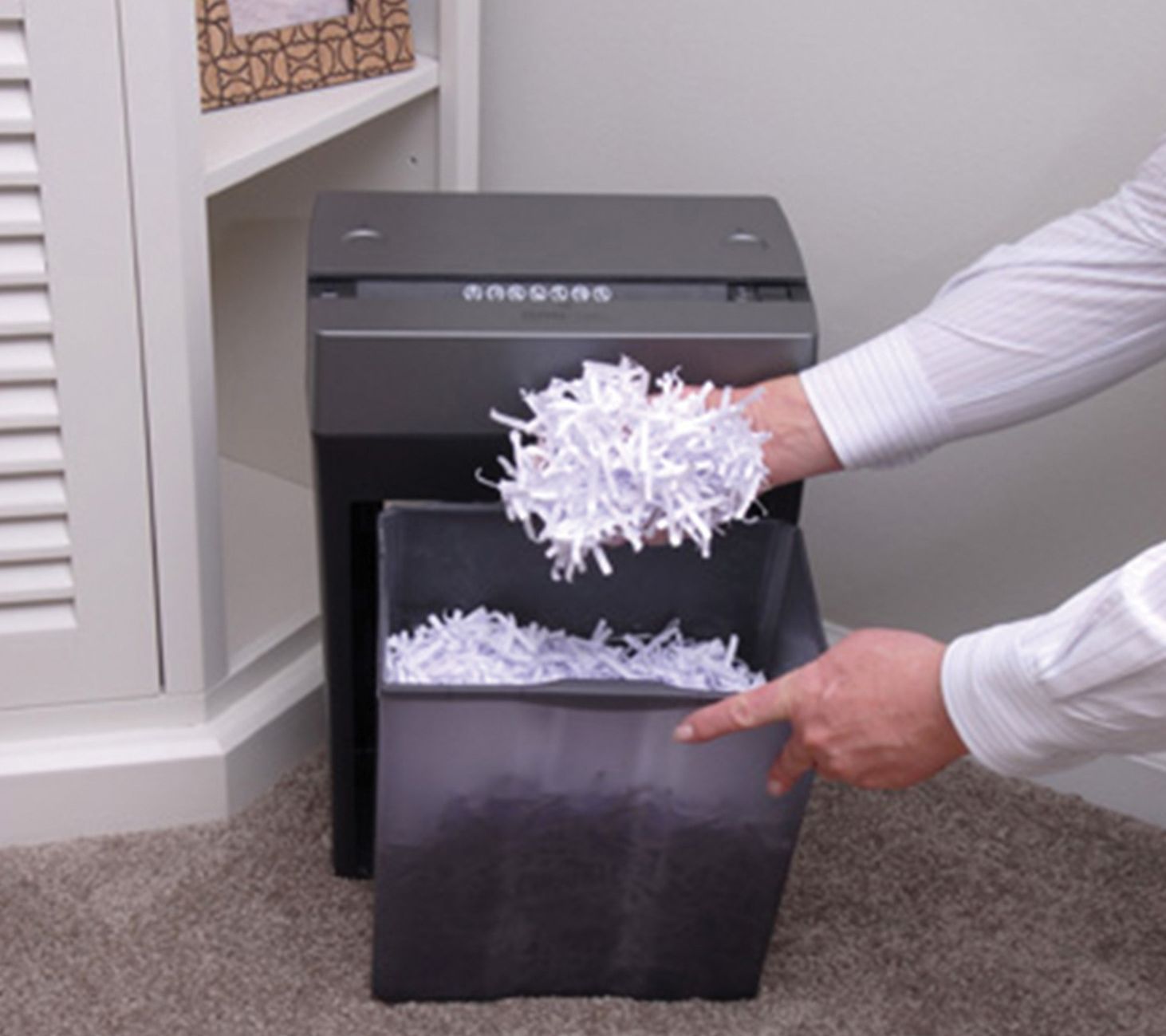 • Shreds staples and credit cards