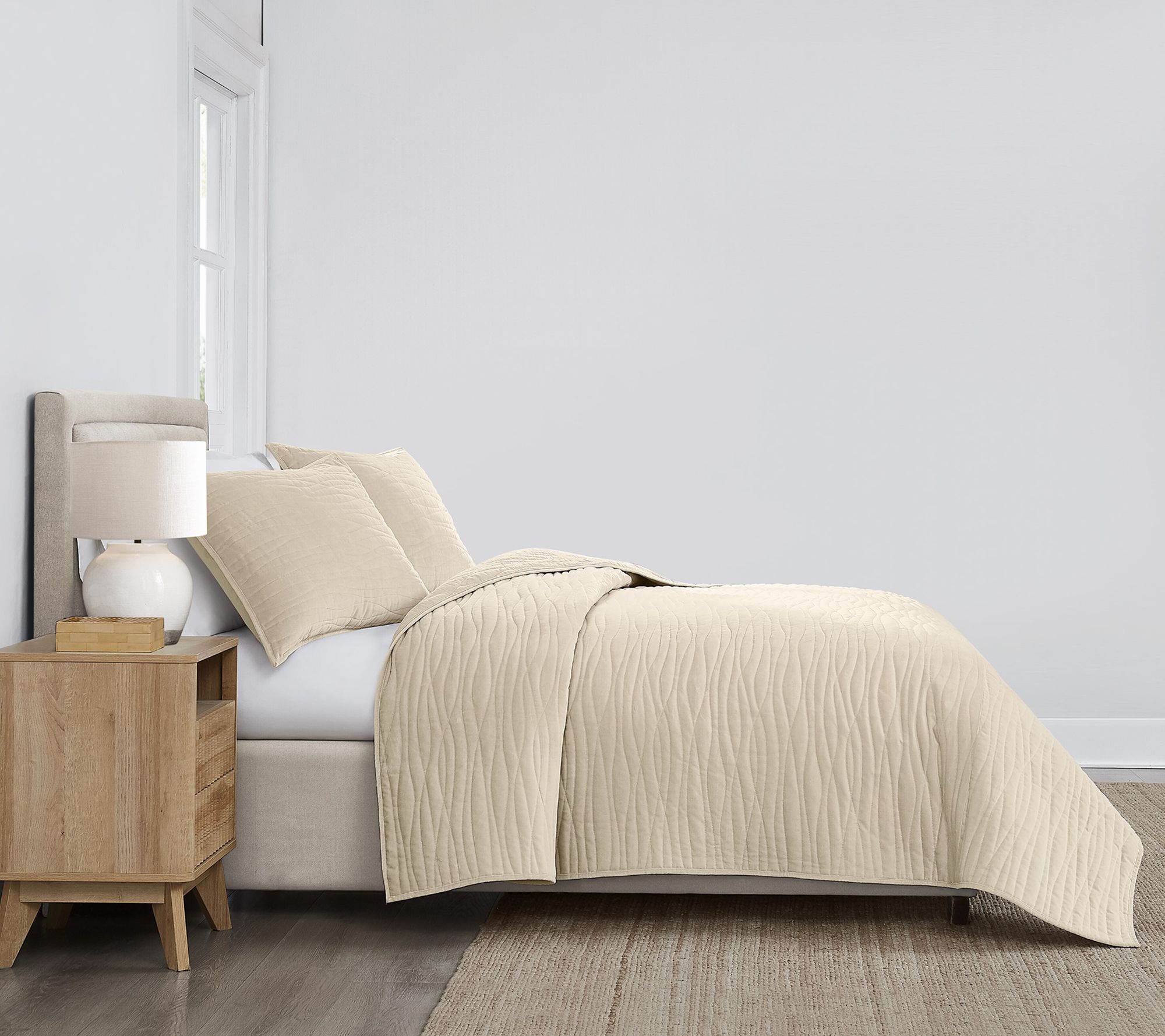 Add a lavish touch to your bedroom and experience cozy nights beneath the sumptuous feel of this cotton velvet quilt set. The wavy texture and soft sheen offer a luxurious vibe, while the set brings effortless sophistication to your personal retreat. From Royal Velvet.