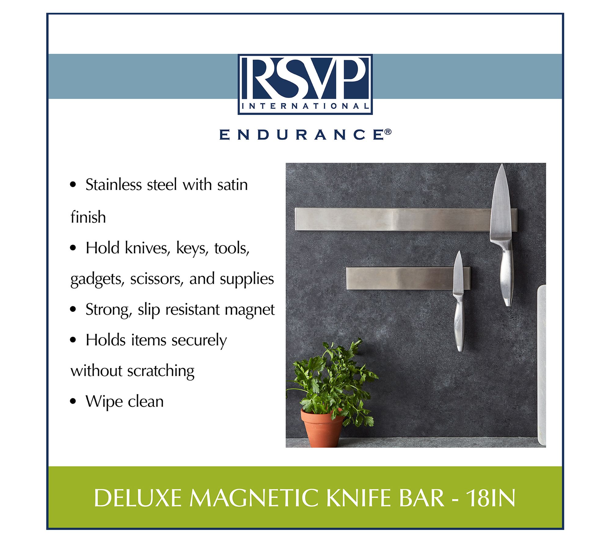 Conveniently store your knives and other kitchen tools with this magnetic knife bar. From RSVP.