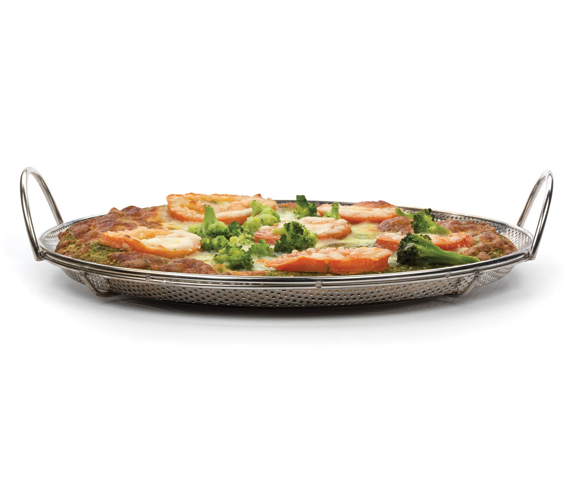 Looking for a way to make your pizza on the grill? Then go for it with this pierced pizza pan. It's created from stainless steel and has large carry handles to easily remove it from a hot grill. Finally achieve authentic flavors with this handy device. From RSVP.