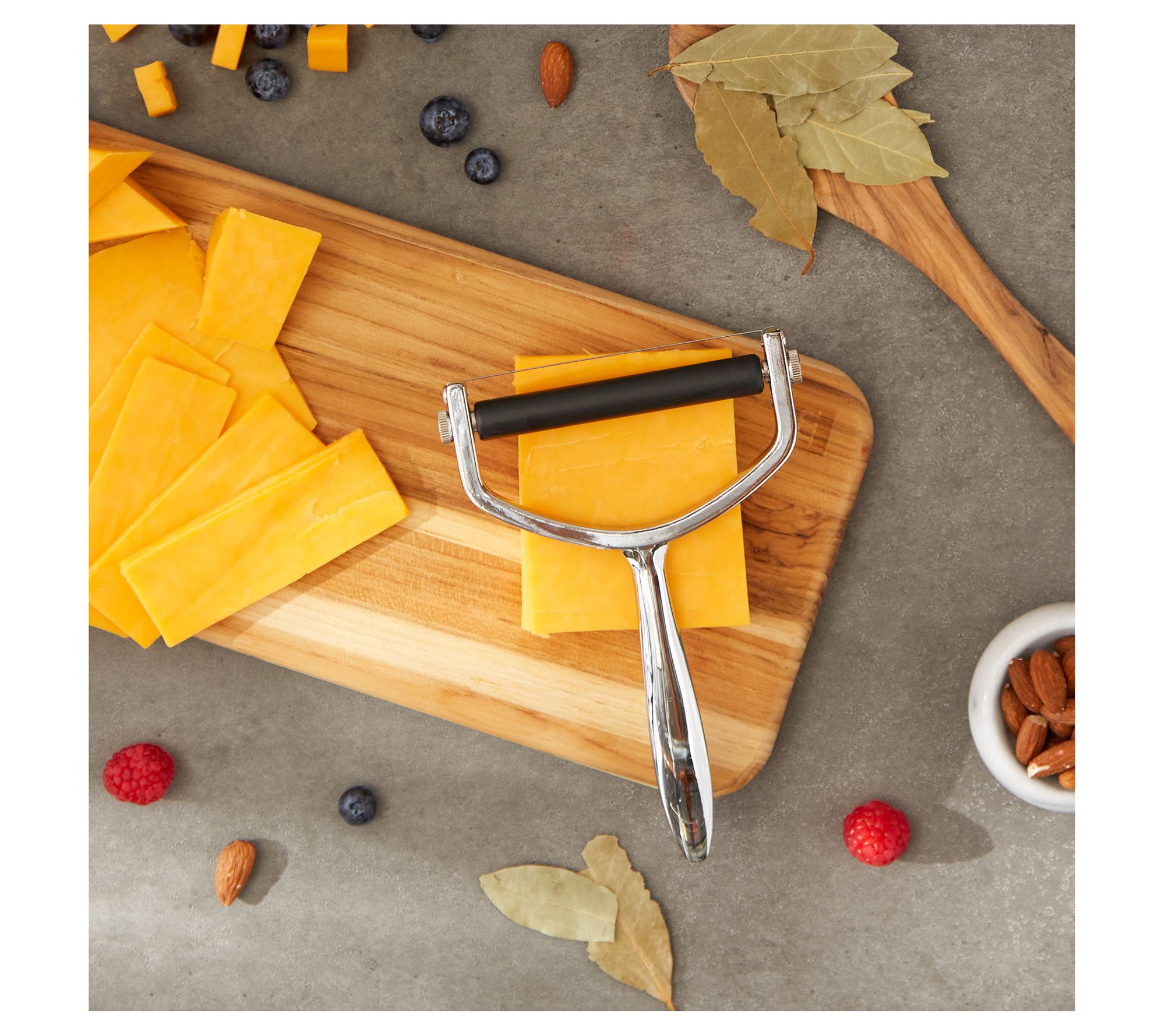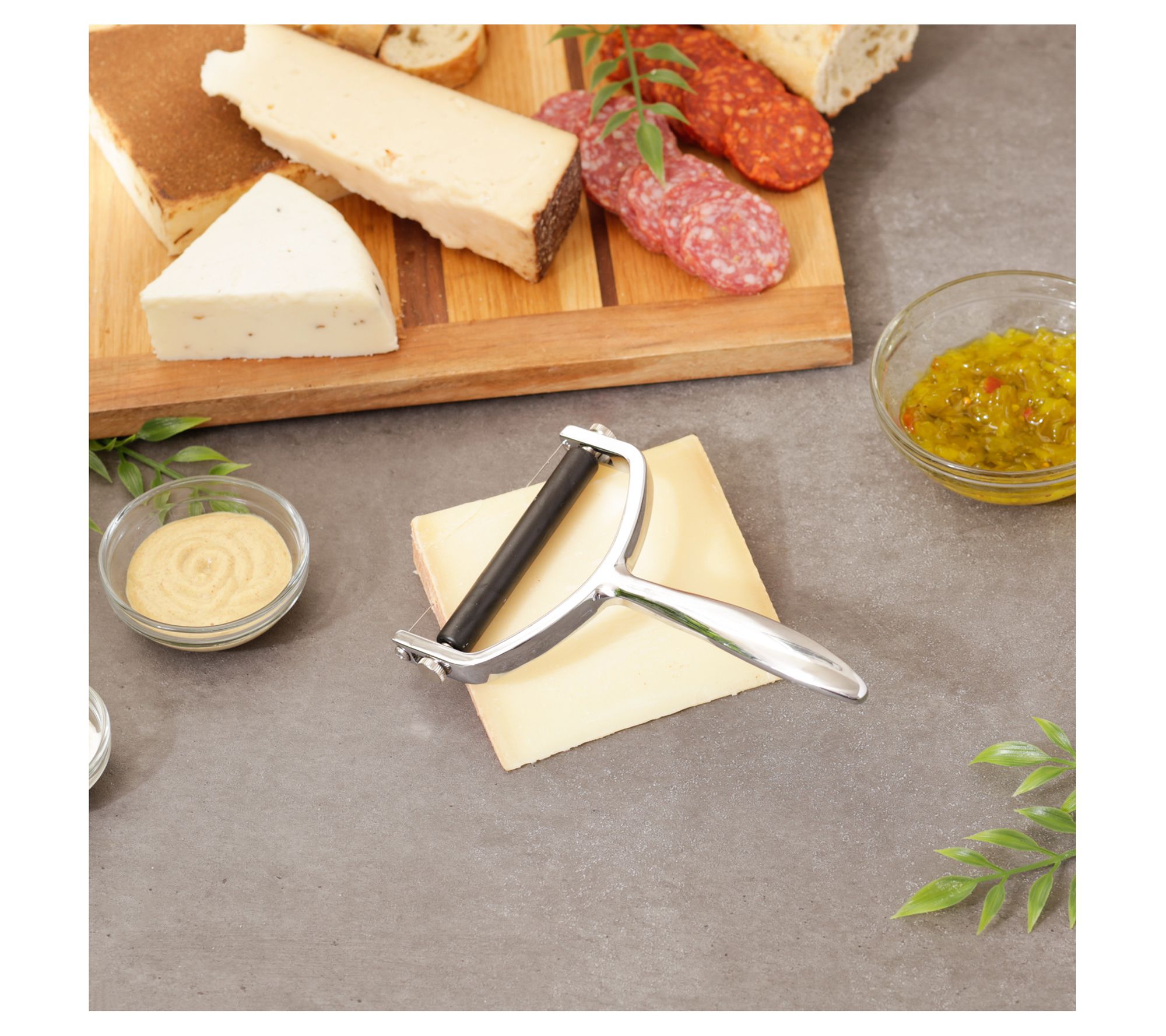Make perfect slices or shavings of semi-soft to firm cheeses with this chrome-plated slicer. The thin wire easily slices through your cheese while an adjustable roller controls the thickness of the slices. From RSVP.