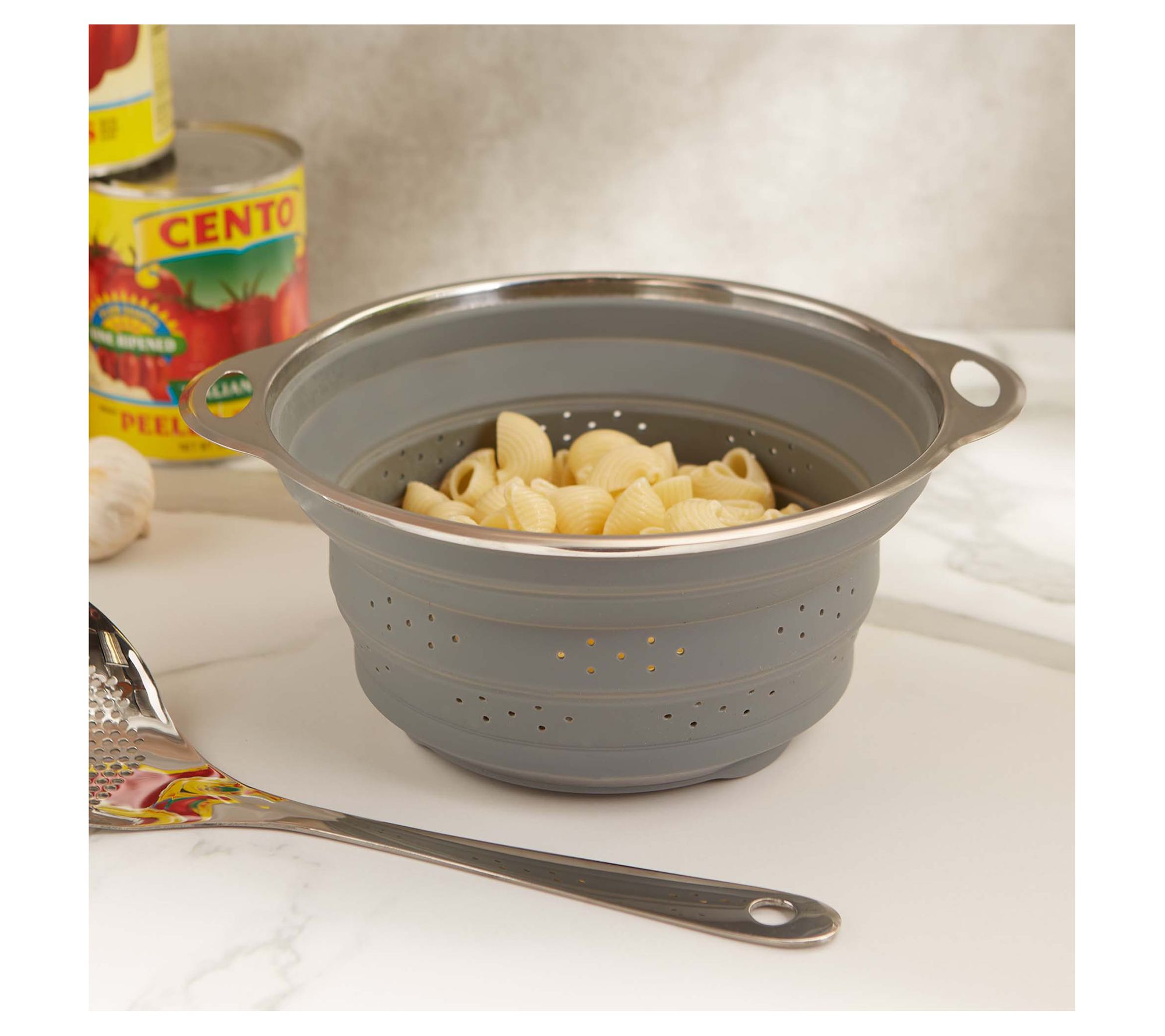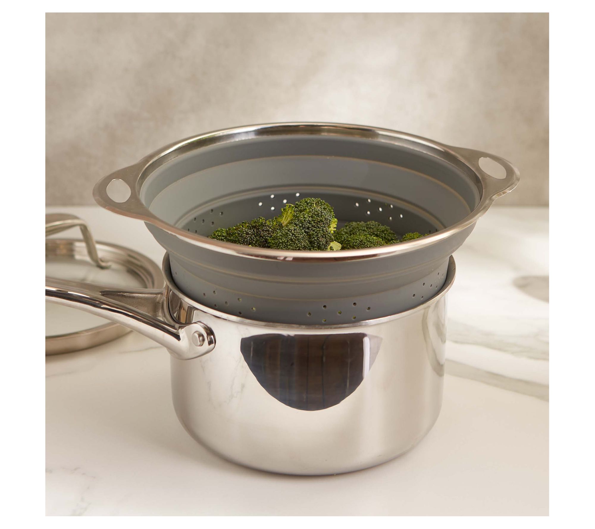 • Includes collapsible colander