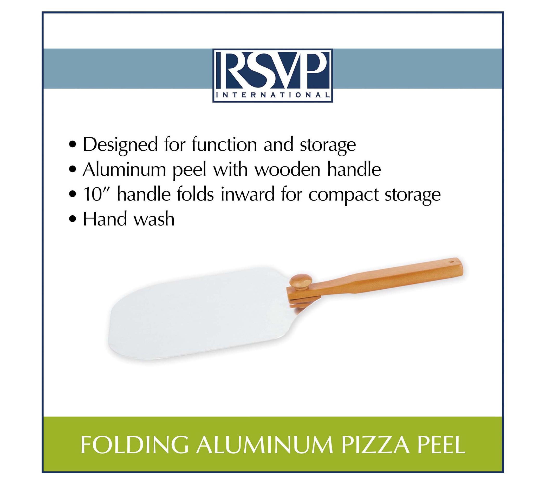 Pull pizza, bread, and other baked goods out of the oven like a pro with this folding aluminum pizza peel. From RSVP.