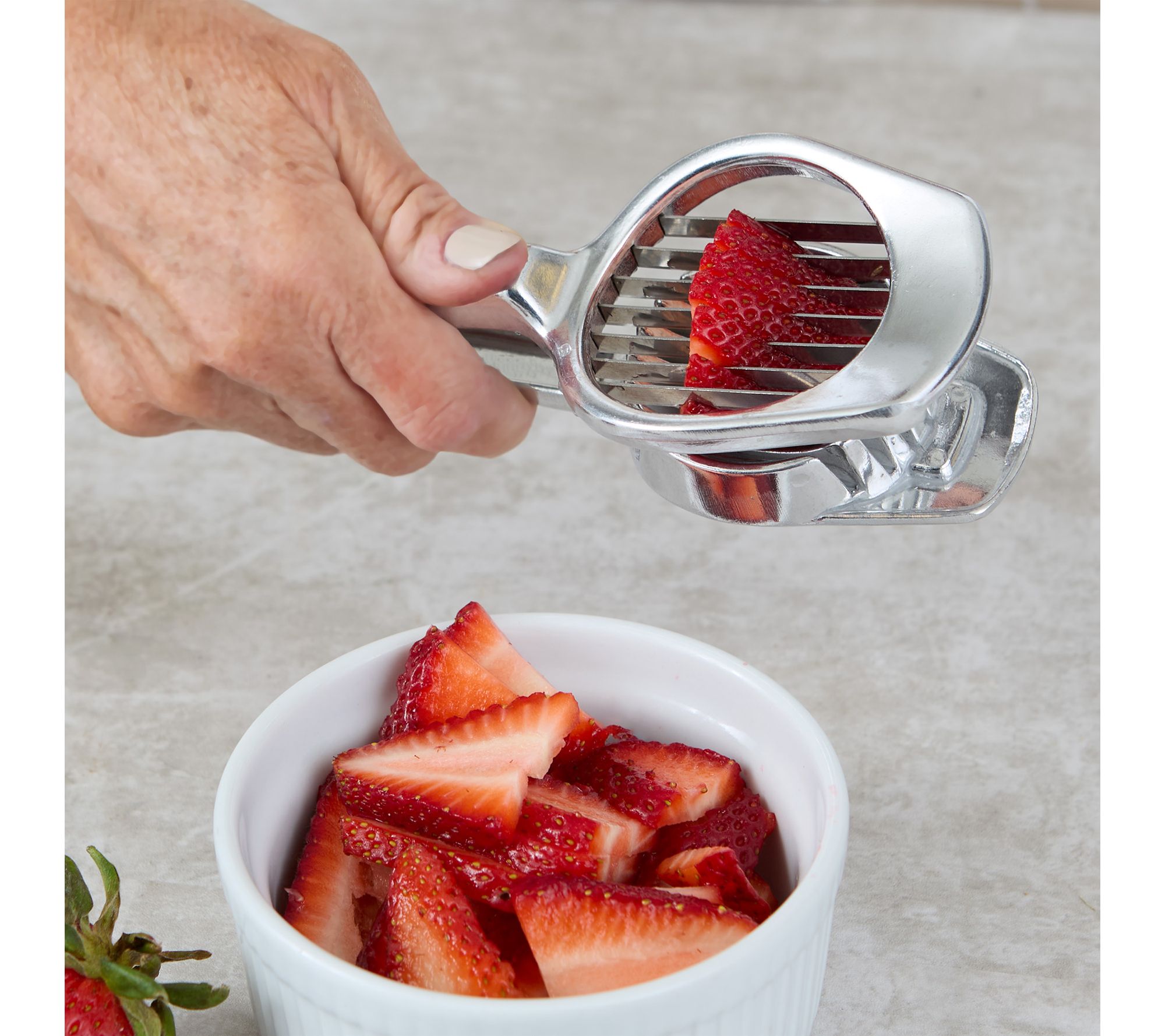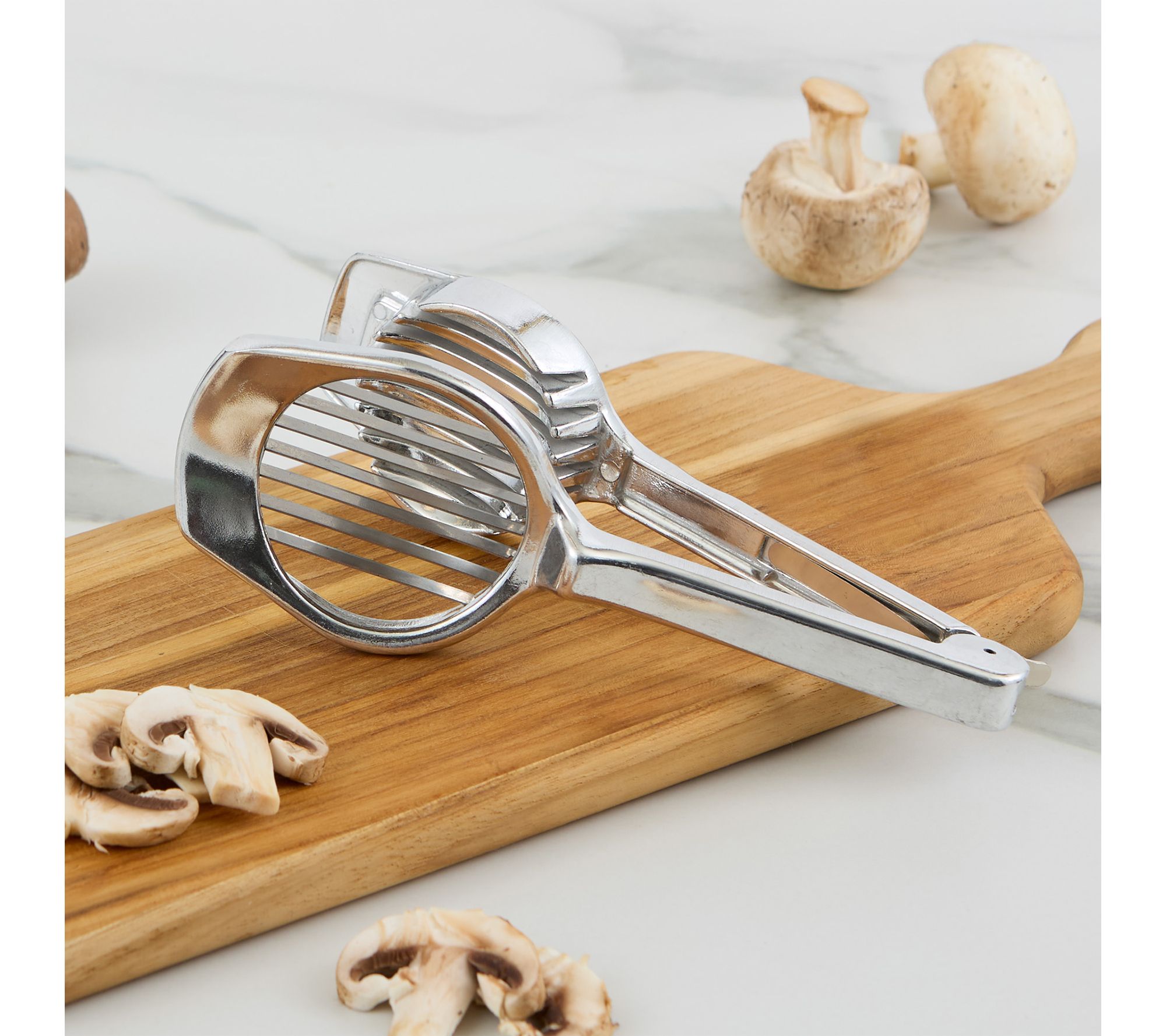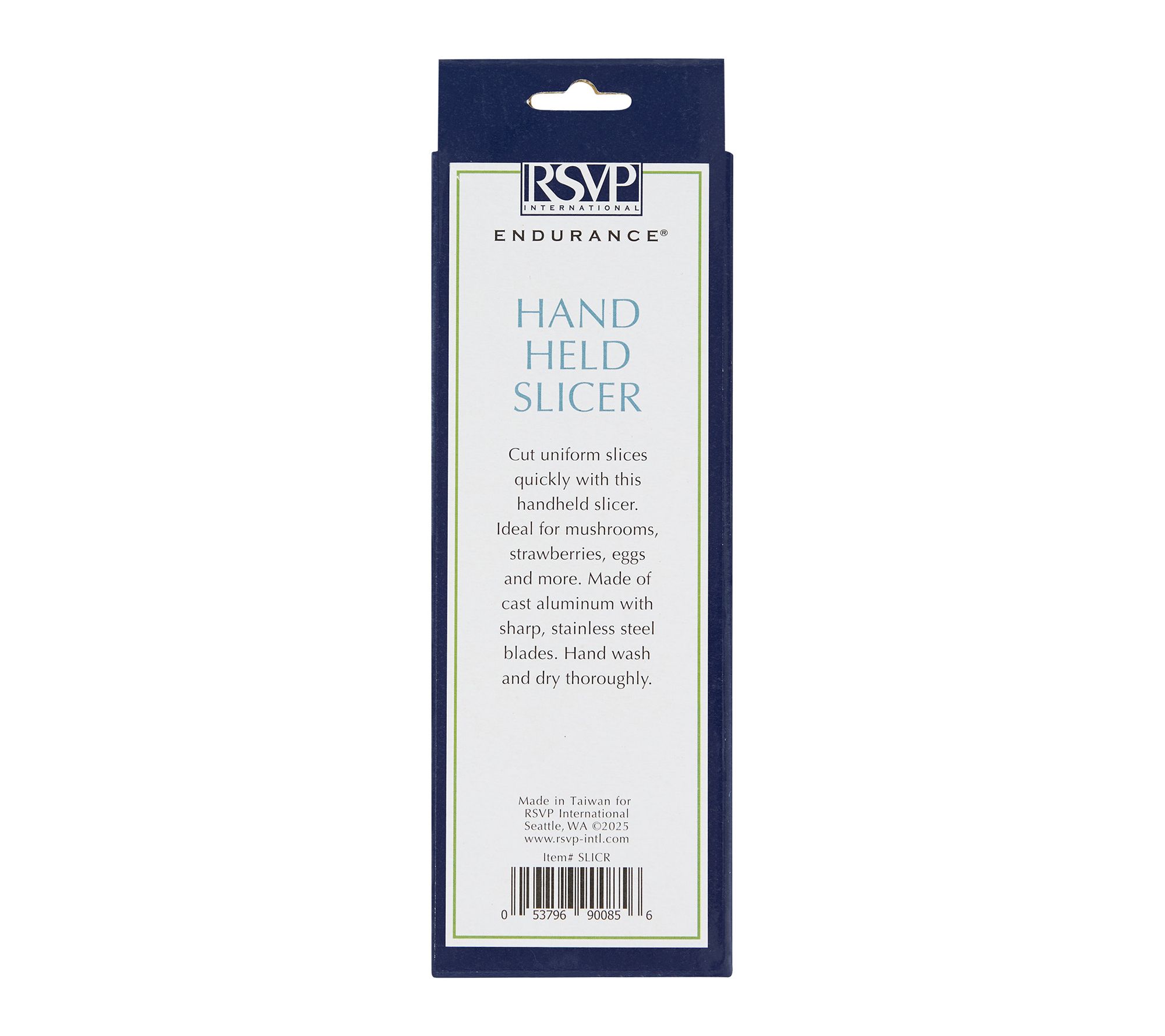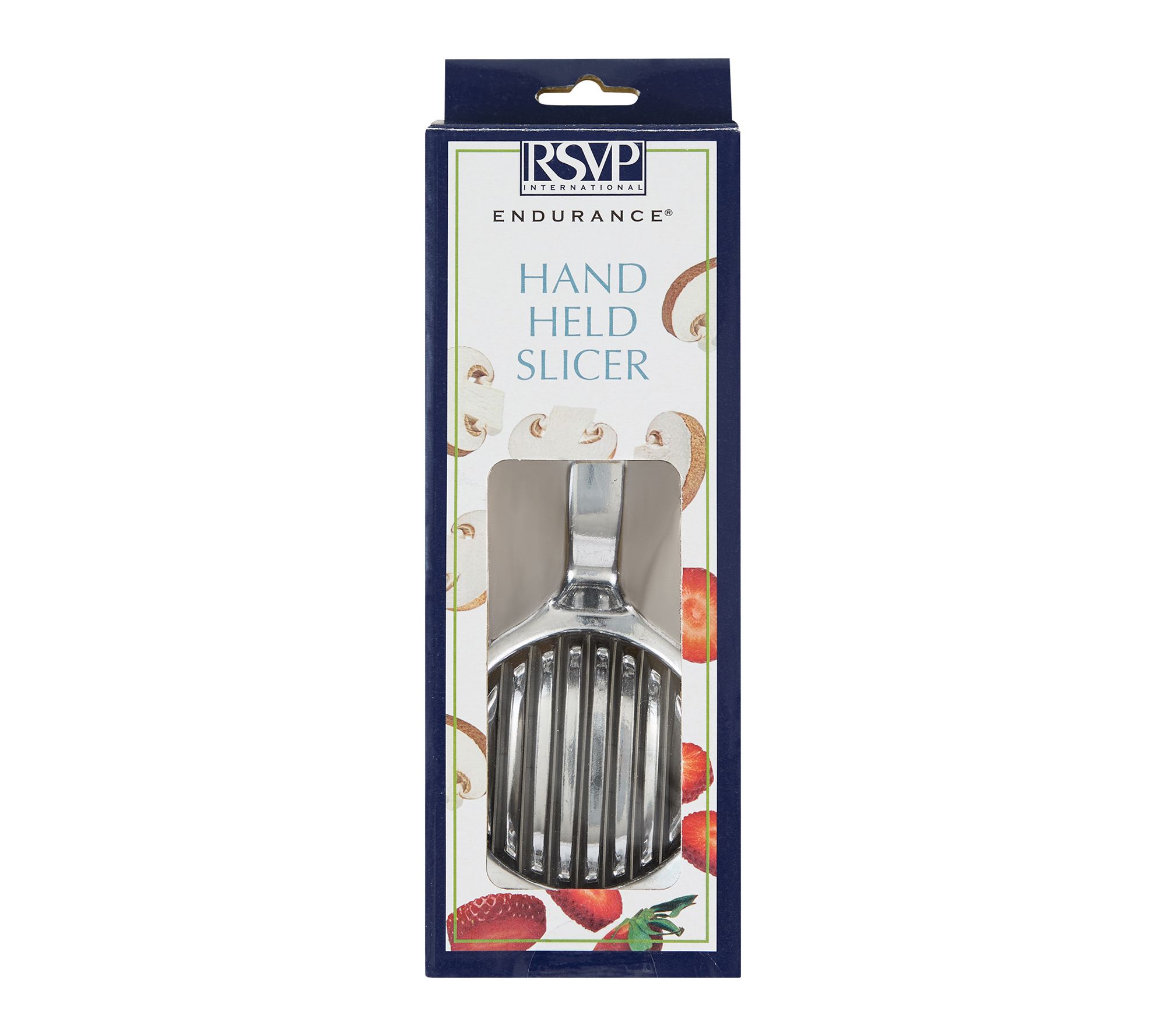 Preparing a colorful salad or slicing up snacks for the family becomes quick and easy with this handheld fruit and vegetable slicer. The sharp stainless steel blades create consistent slices of your favorite produce or cheese in seconds, helping you prep for salads, stir-fries, or party trays without reaching for a cutting board. Enjoy safer, faster slicing while saving counter space. From RSVP International.