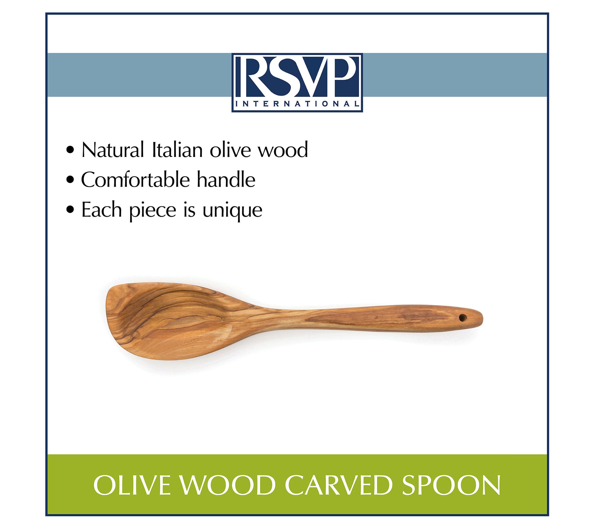 Made from beautiful Italian olive wood, this curved spoon makes an elegant presentation on your dinner table. From RSVP.