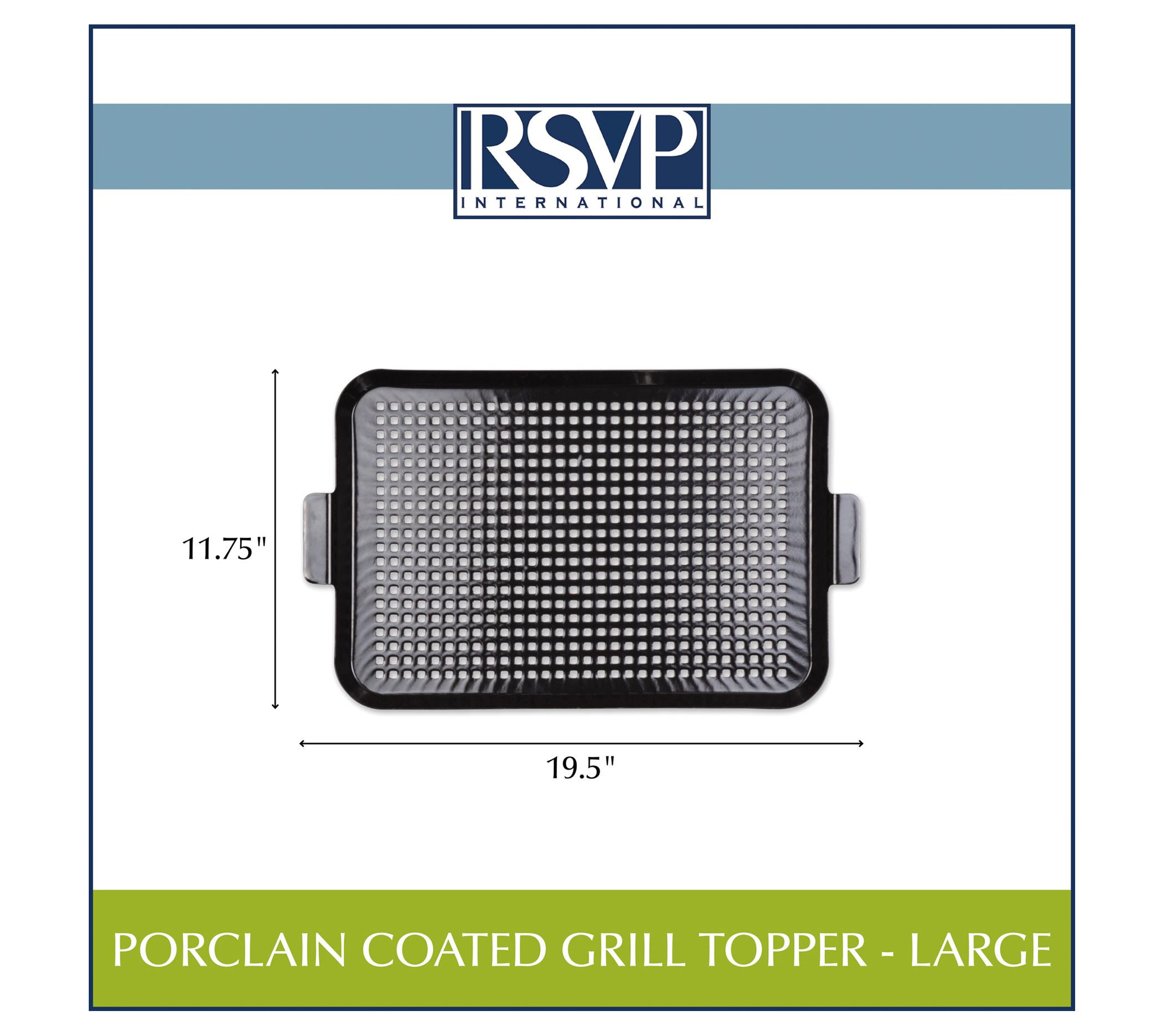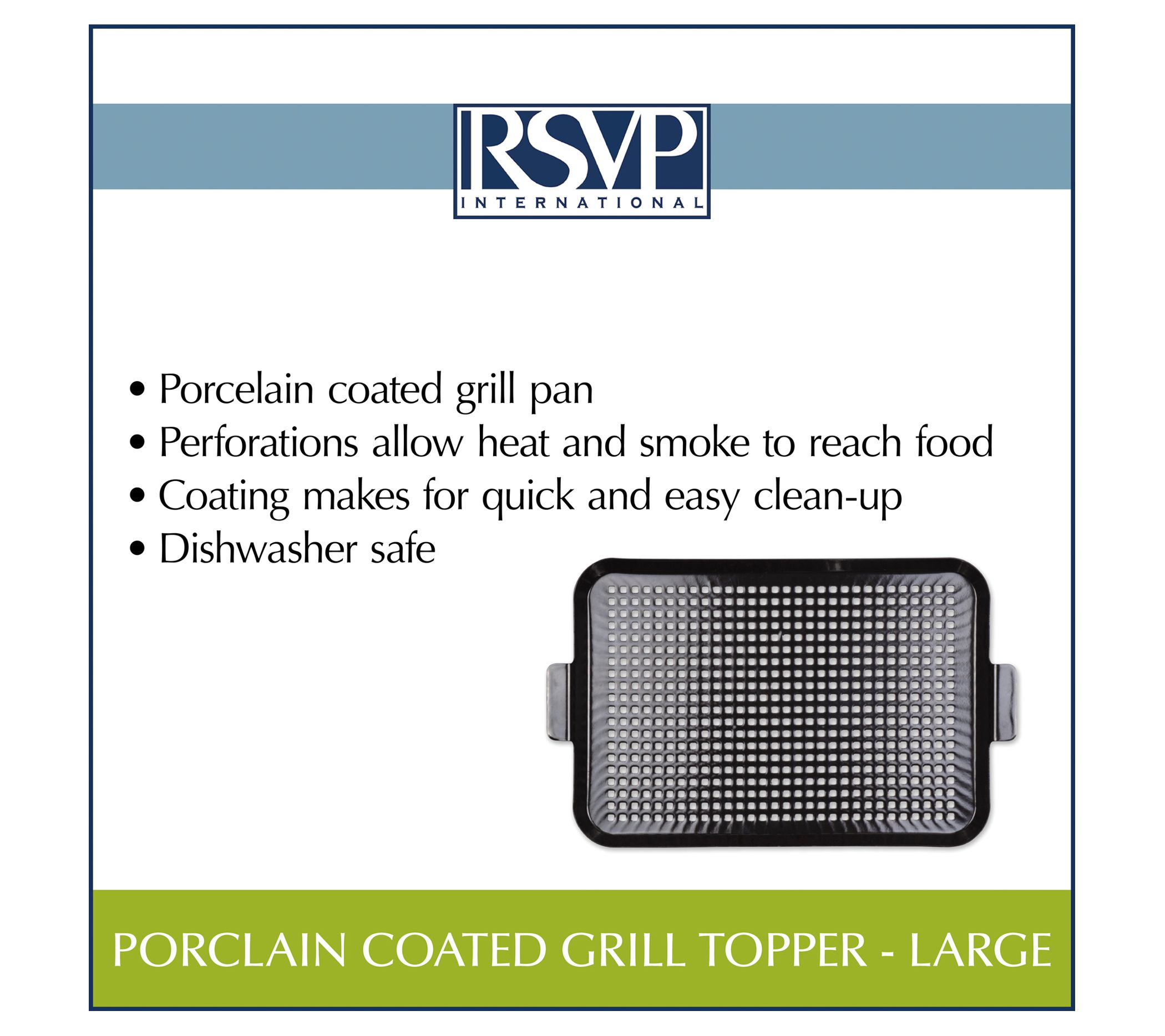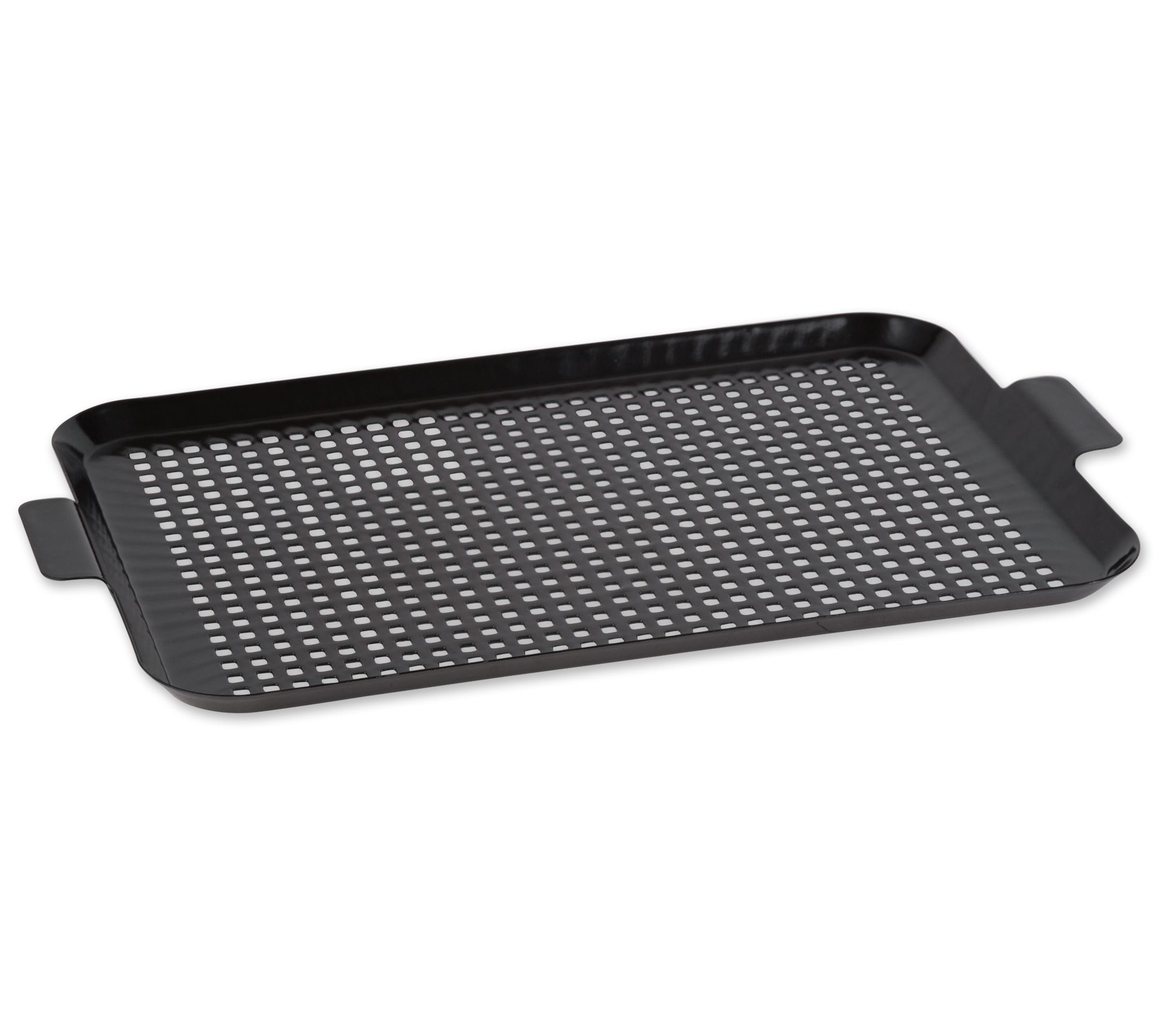 This grill topper prevents veggies, shellfish, and smaller cuts of meat from falling through the grates of your grill. Perforations allow heat and smoke to reach food and juices to flow out. From RSVP.