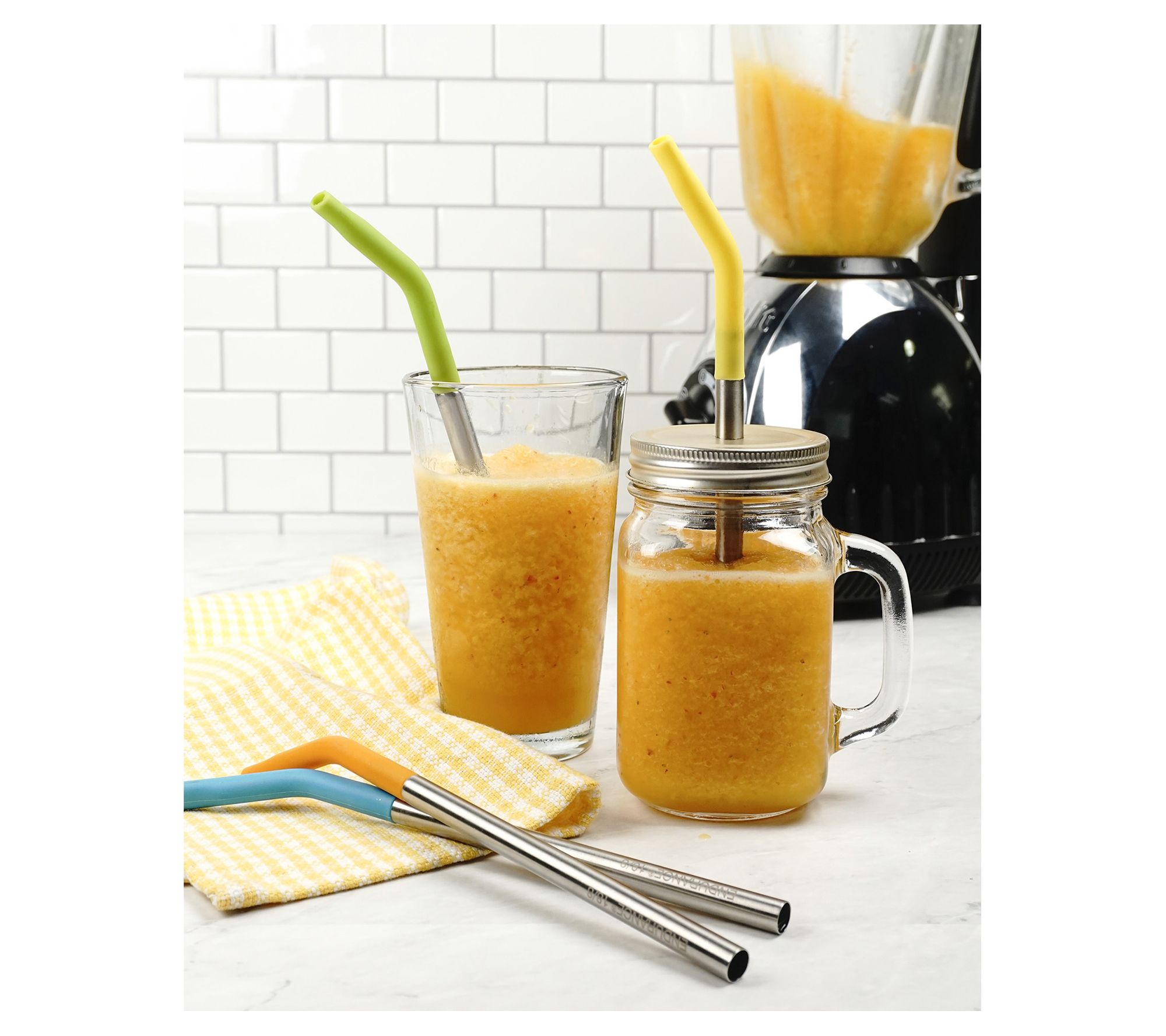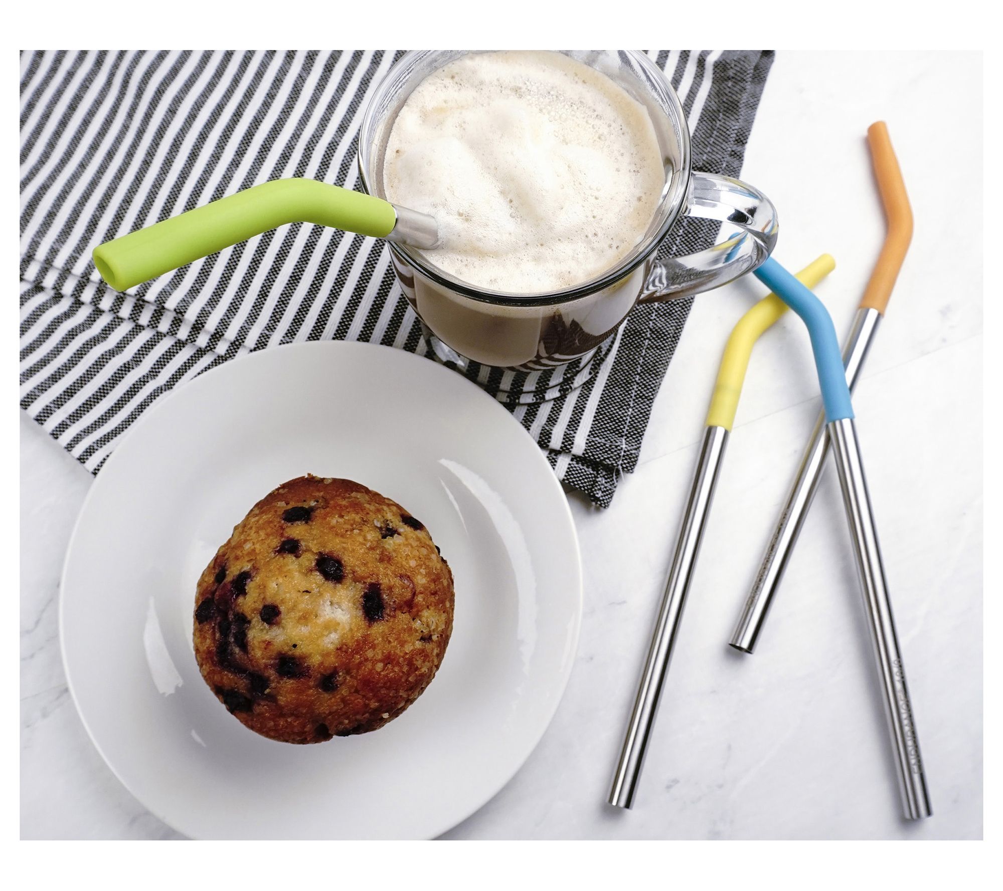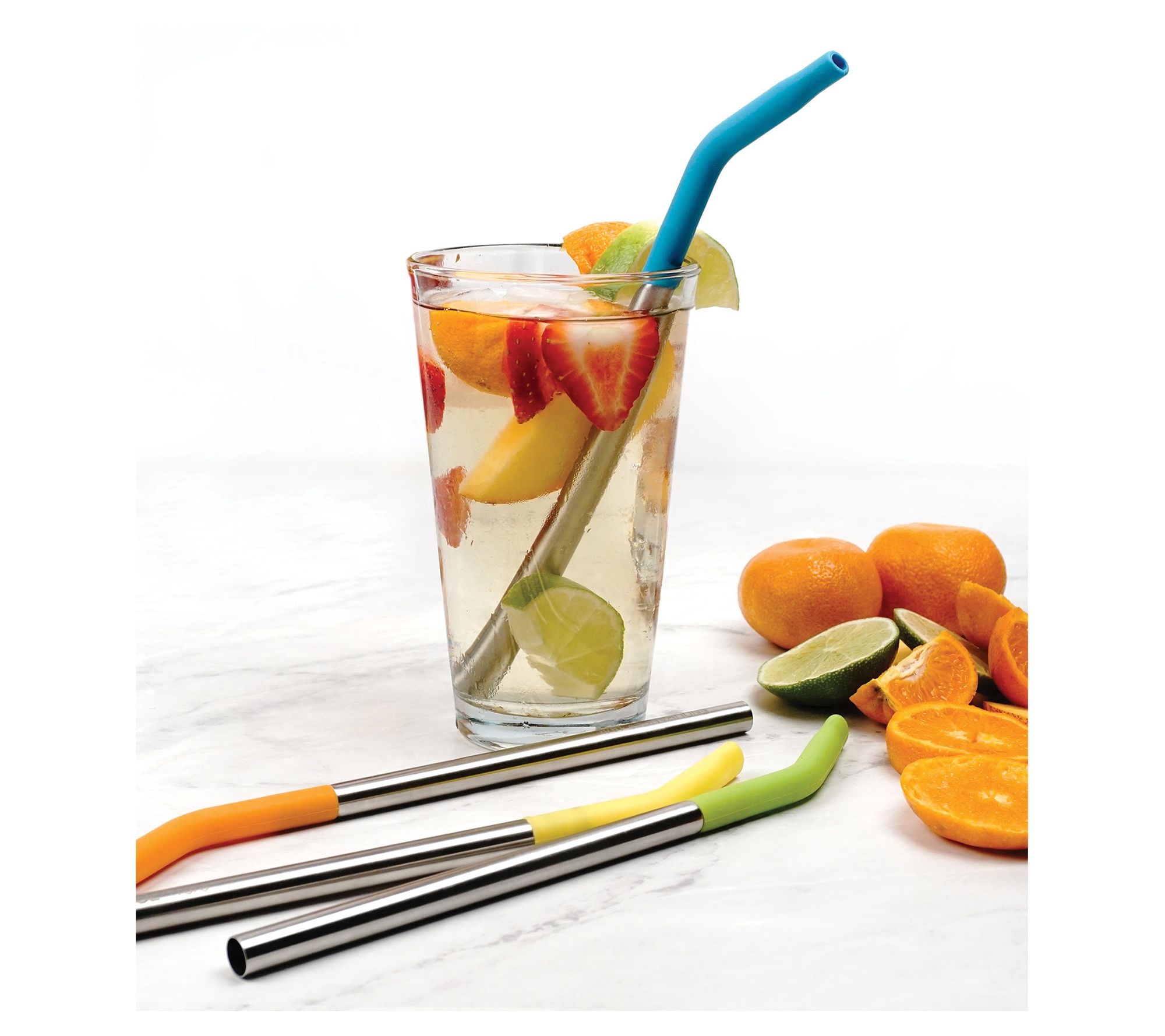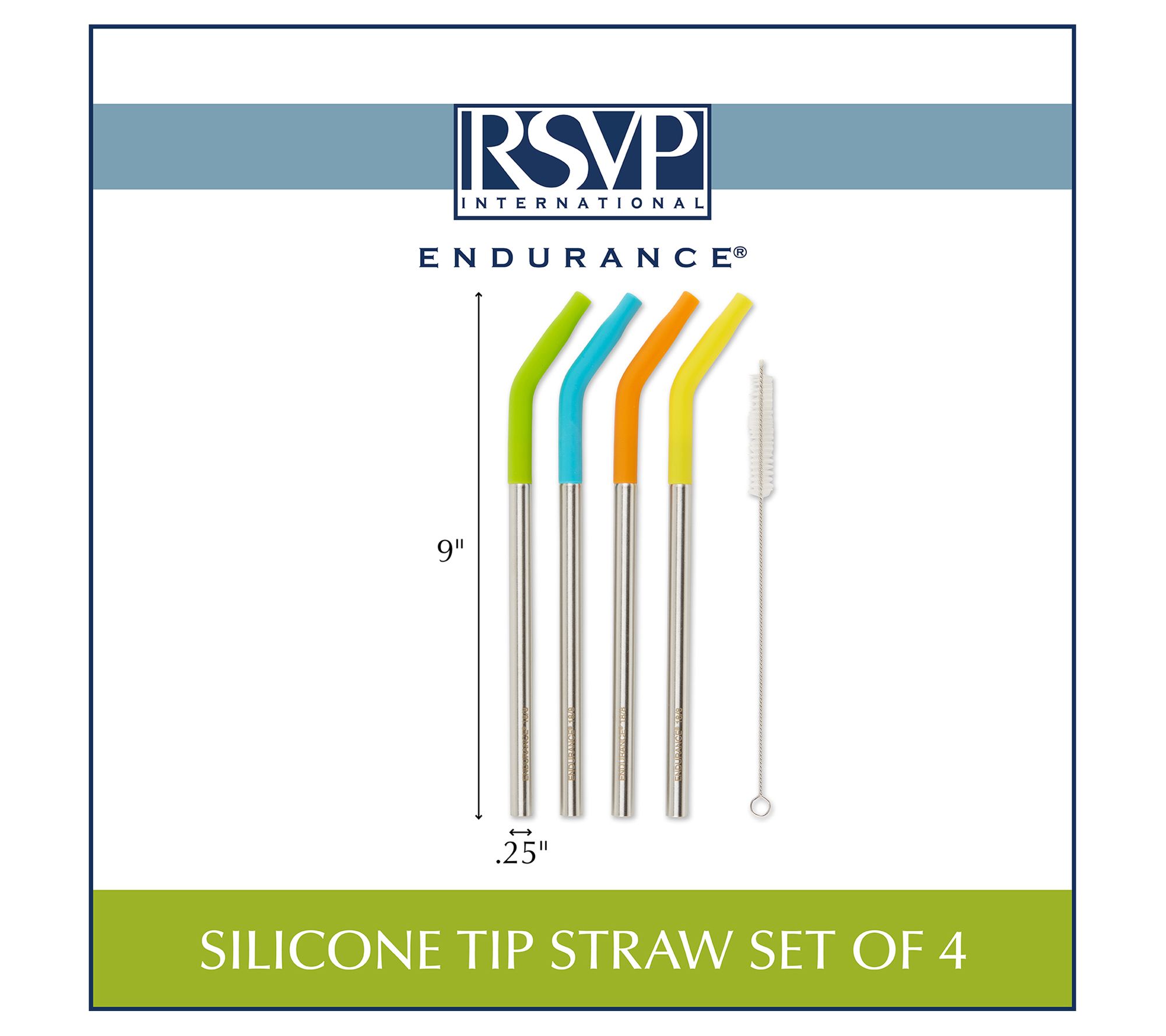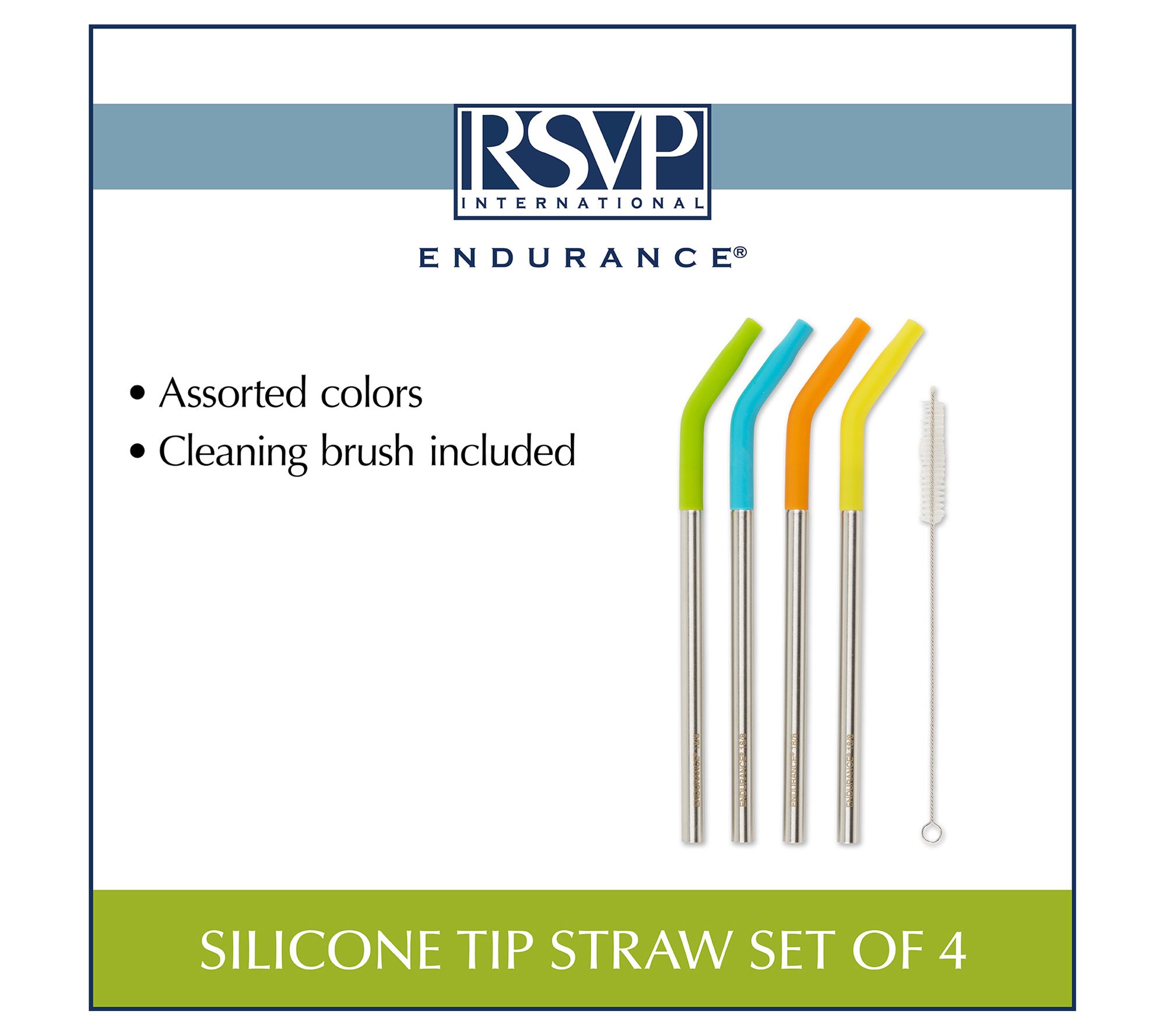 Perfect for smoothies or iced drinks, this reusable stainless steel set with removable silicone tips is a great alternative to disposable straws. From RSVP.