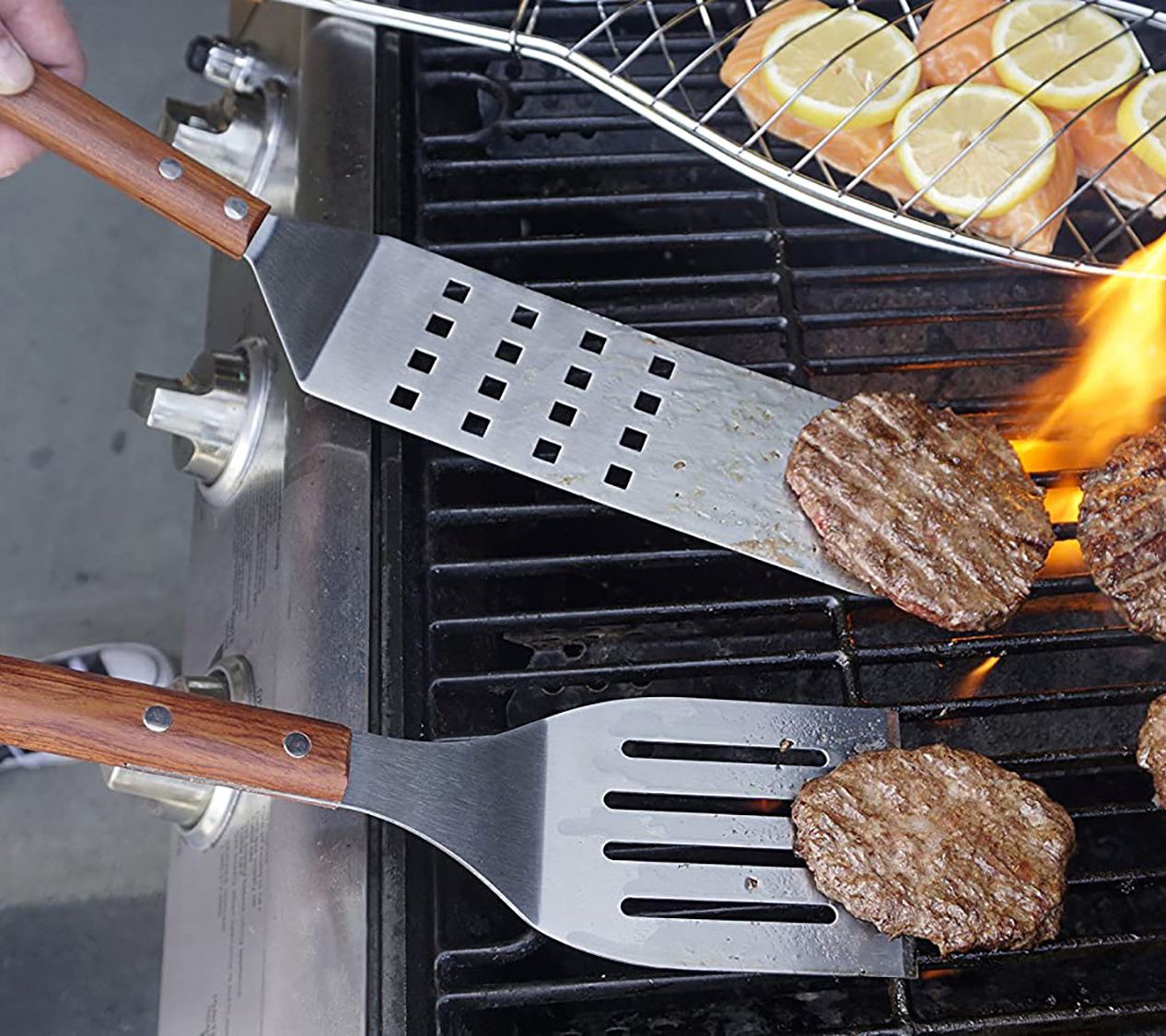 Start barbecuing your favorite meats like a pro with this handy spatula. Its long length allows you to flip foods easily while remaining away from the hot fire. When not in use, the hook on its handle provides convenient and simple storage. From RSVP.