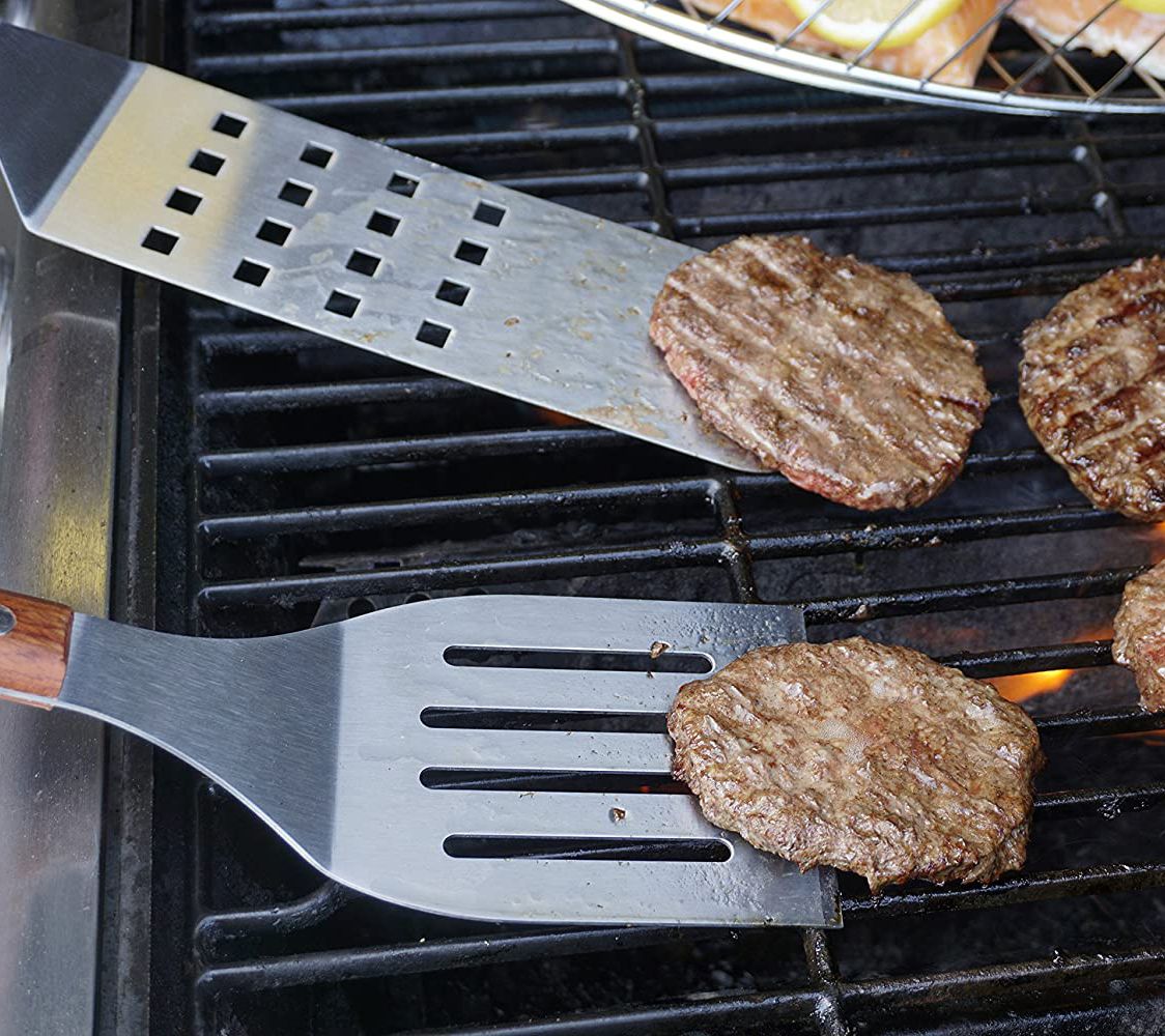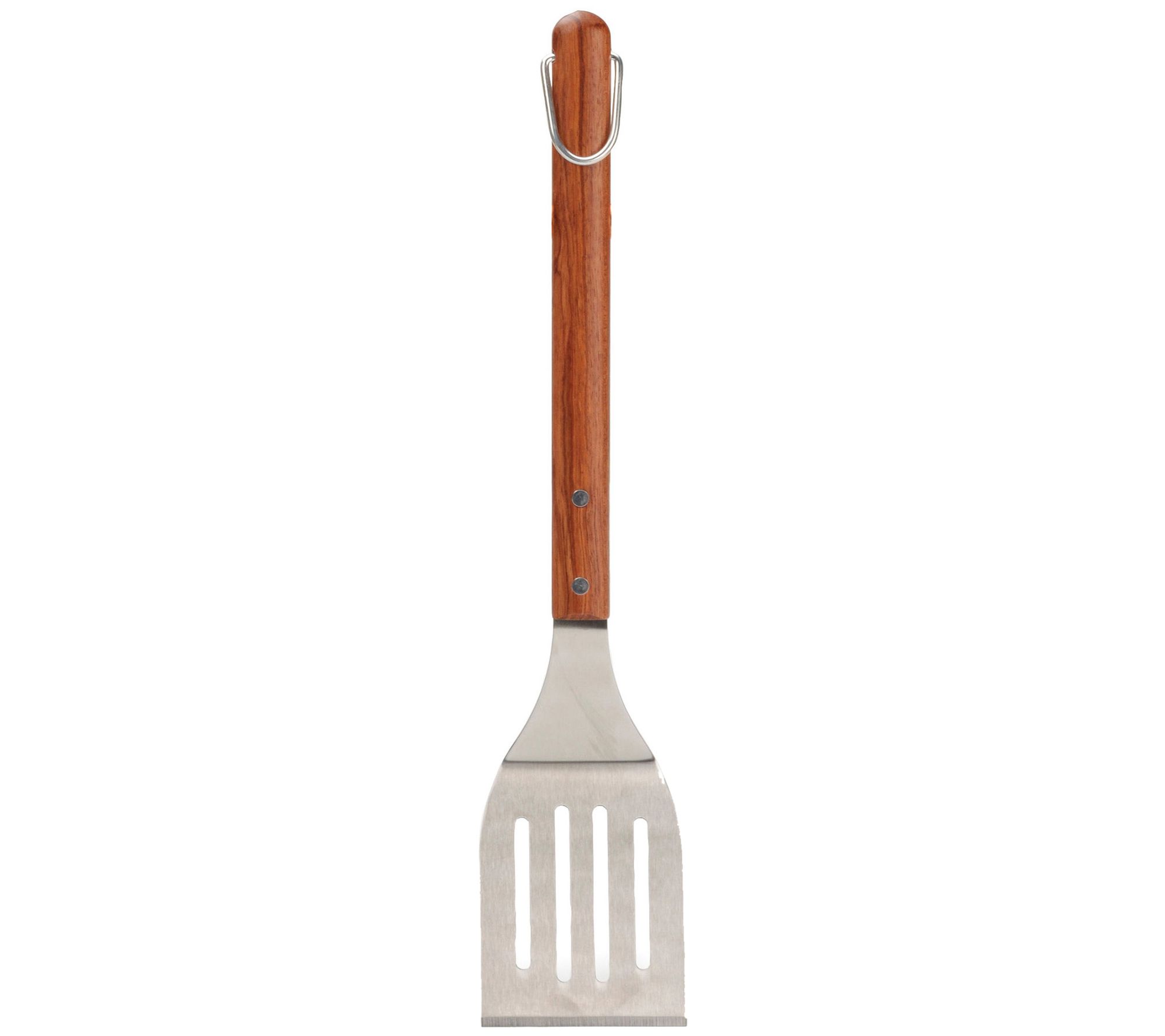 Start barbecuing your favorite meats like a pro with this handy spatula. Its long length allows you to flip foods easily while remaining away from the hot fire. When not in use, the hook on its handle provides convenient and simple storage. From RSVP.