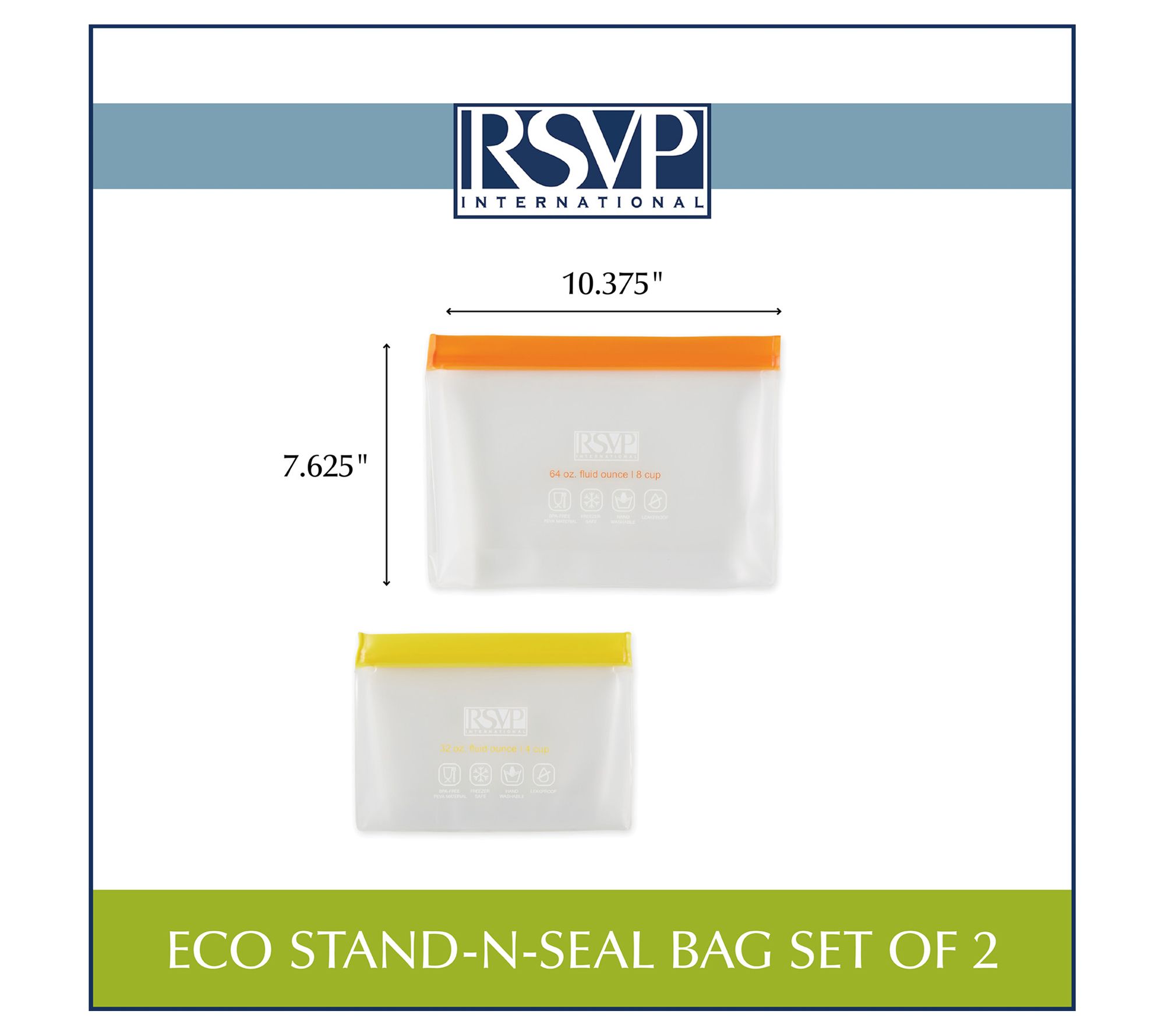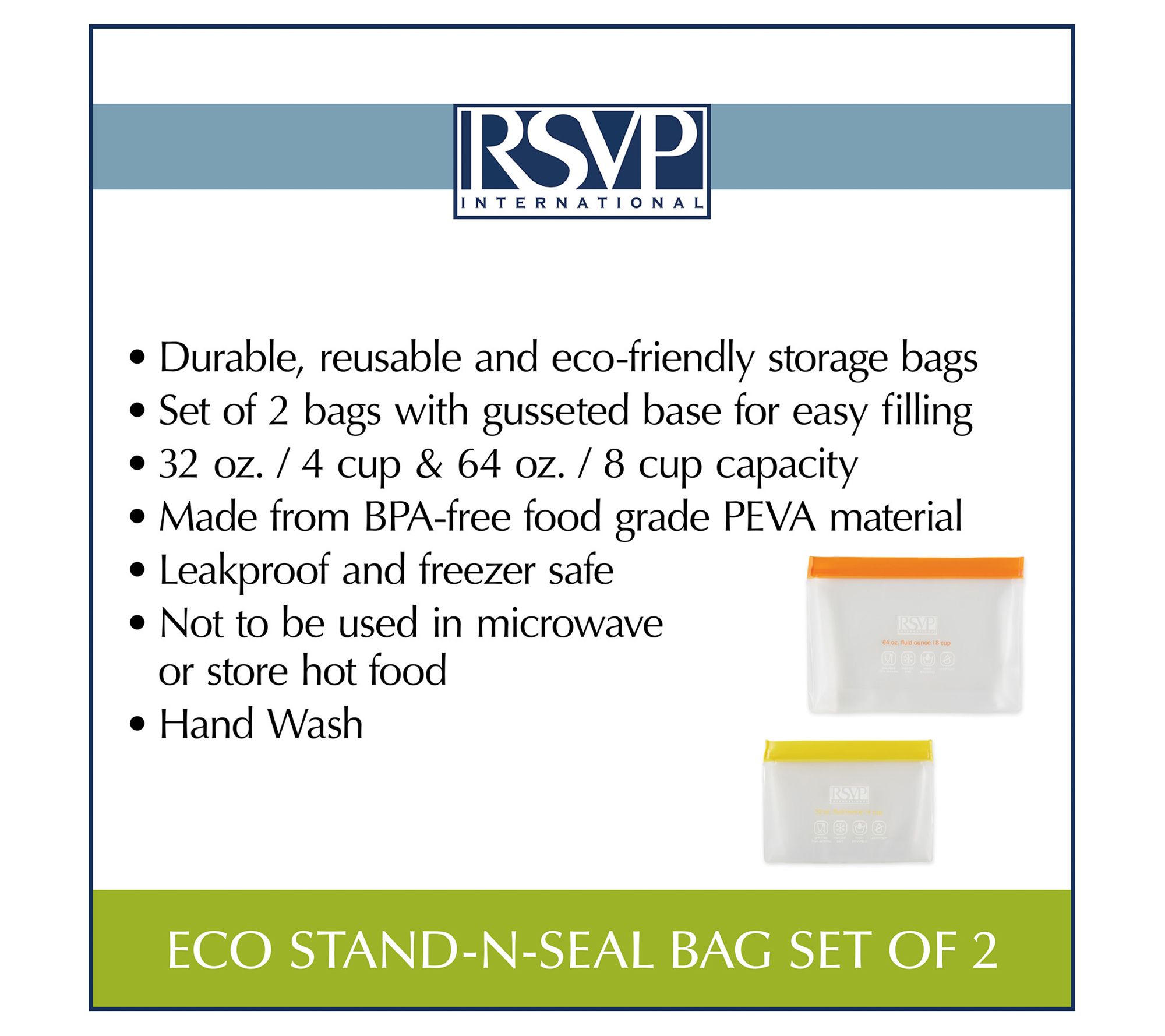 RSVP Set of 2 Reusable Stand-N-Seal Bags