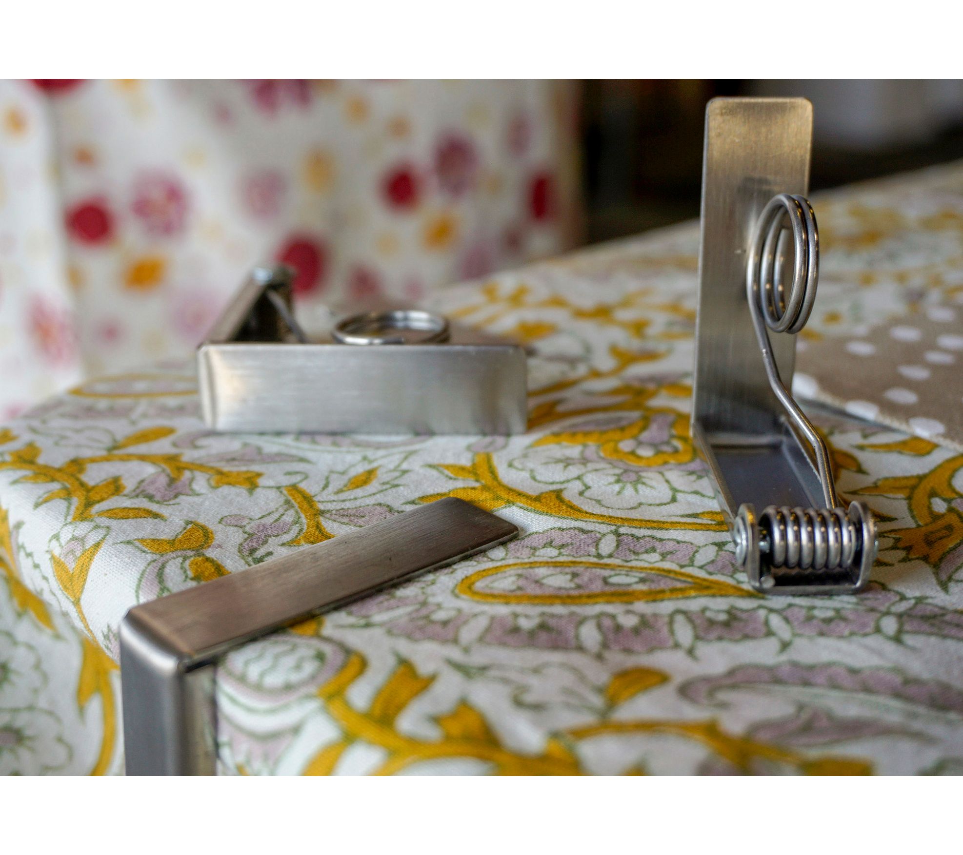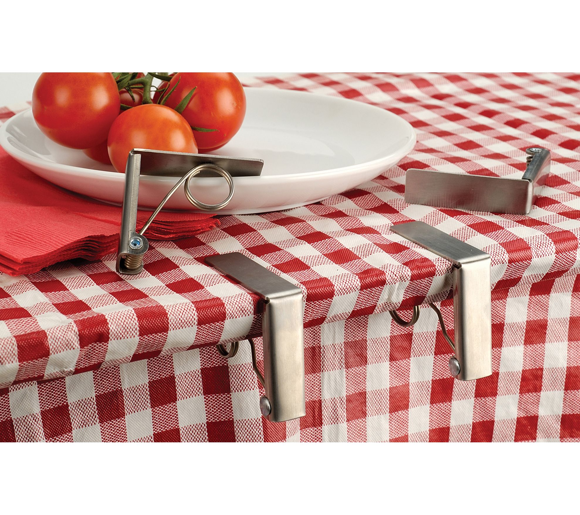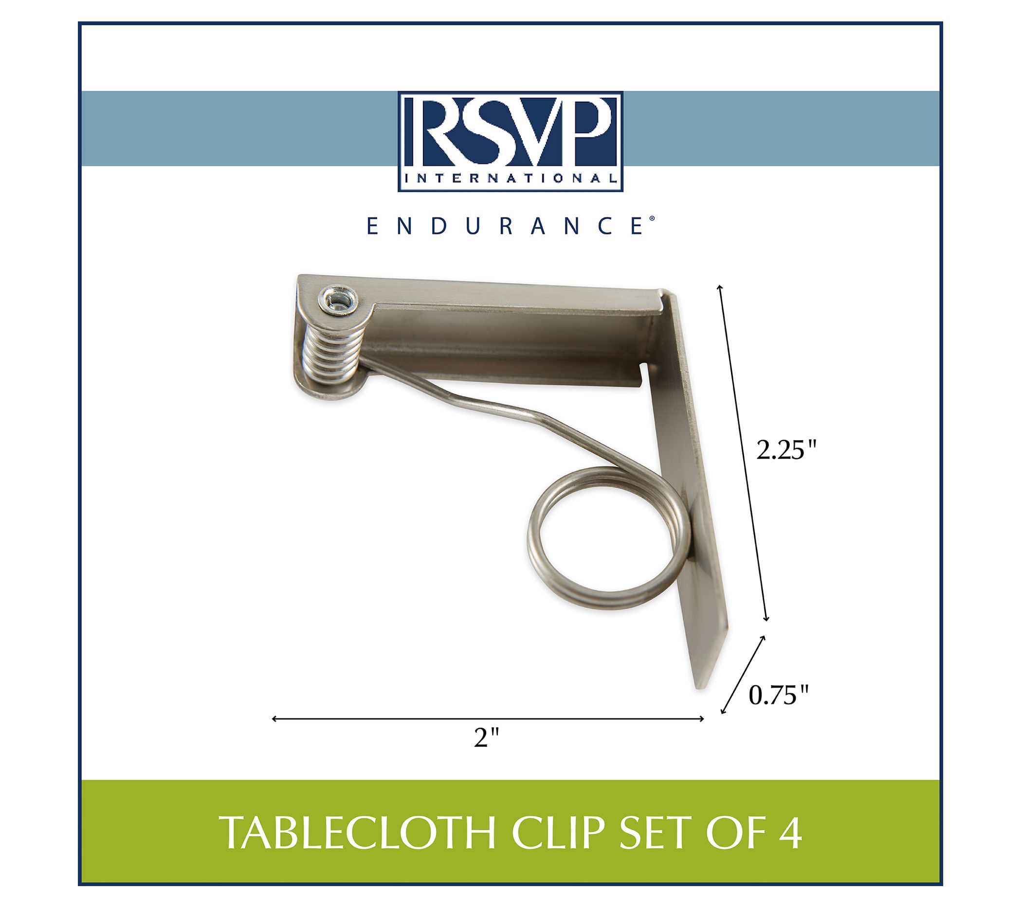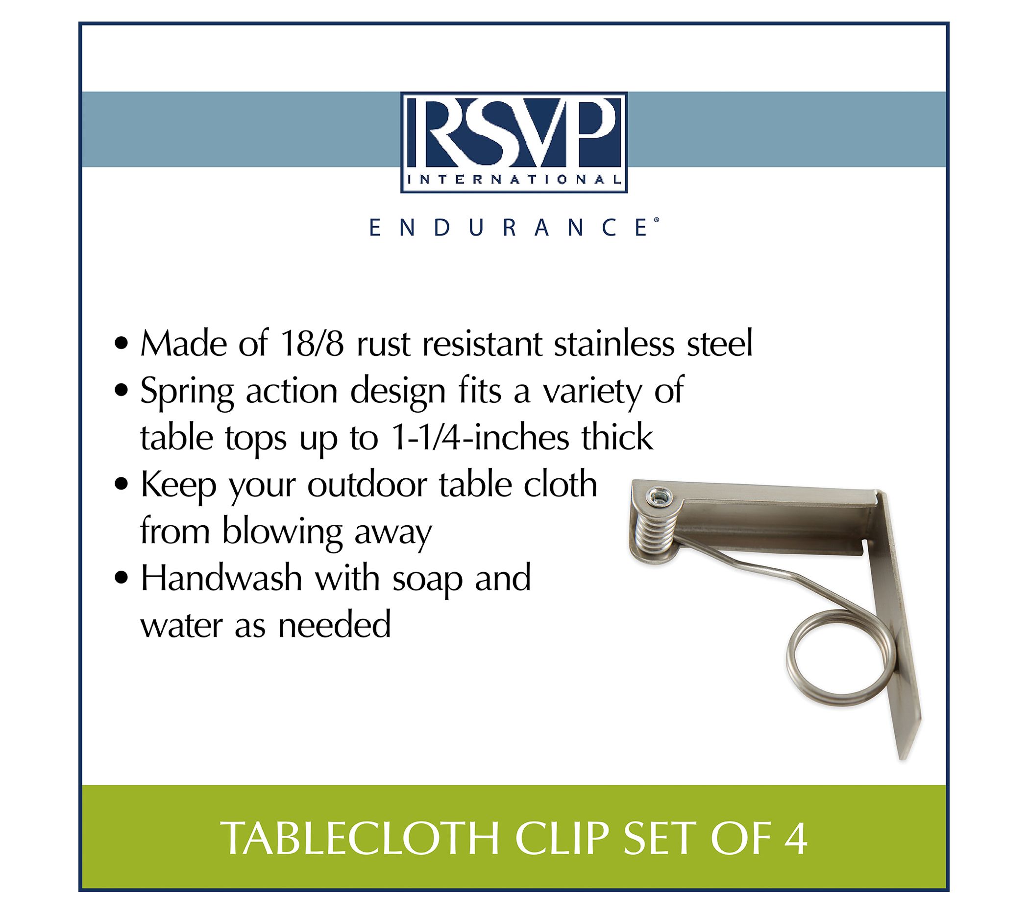 Solve the age-old problem of keeping your outdoor tablecloth from blowing away with help from this set of four clips. From RSVP.