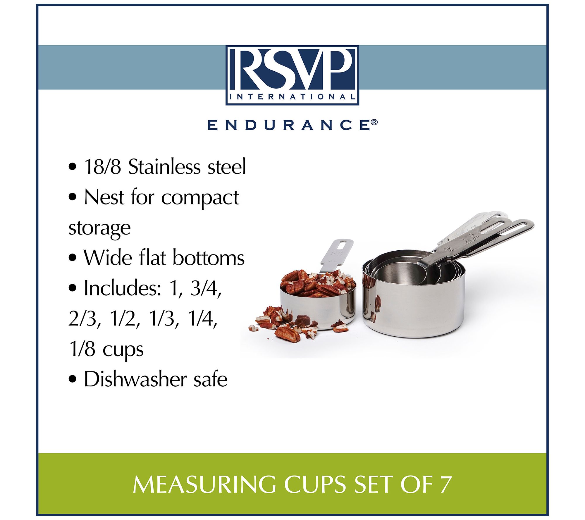 Equipped with the most common sizes you'll need while baking and cooking, this set of seven measuring cups ensures you have the tools you need to whip up delicious creations. From RSVP.
