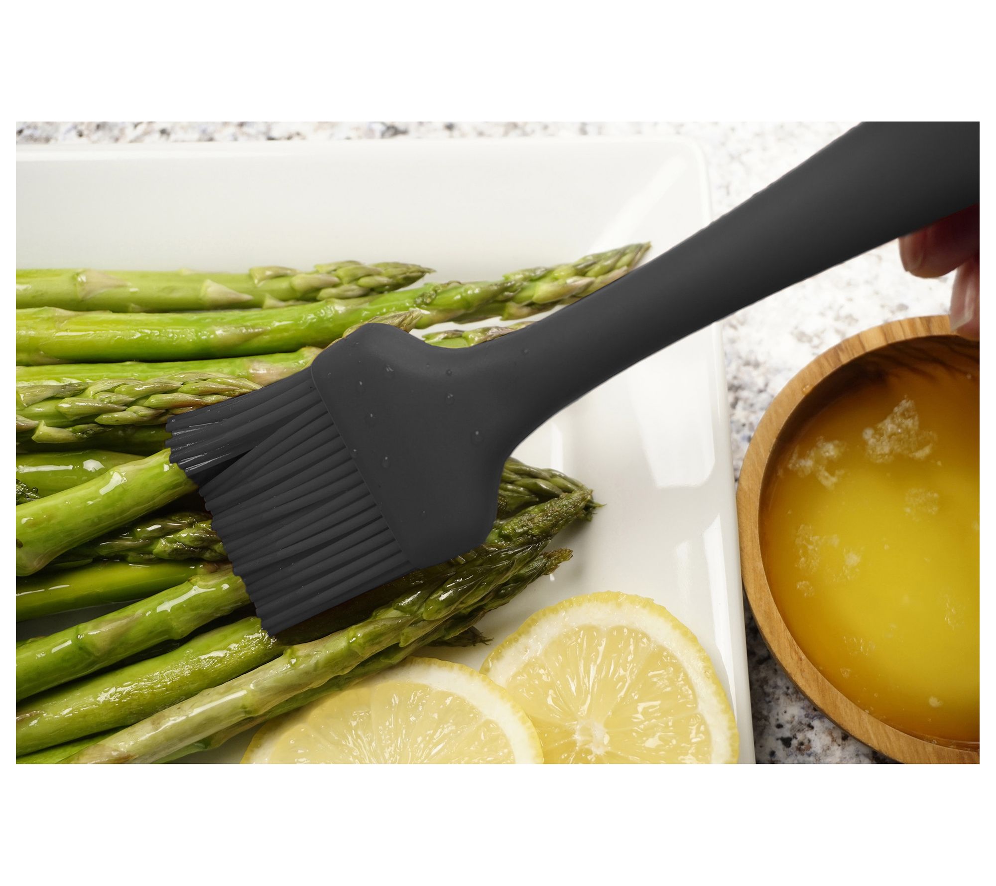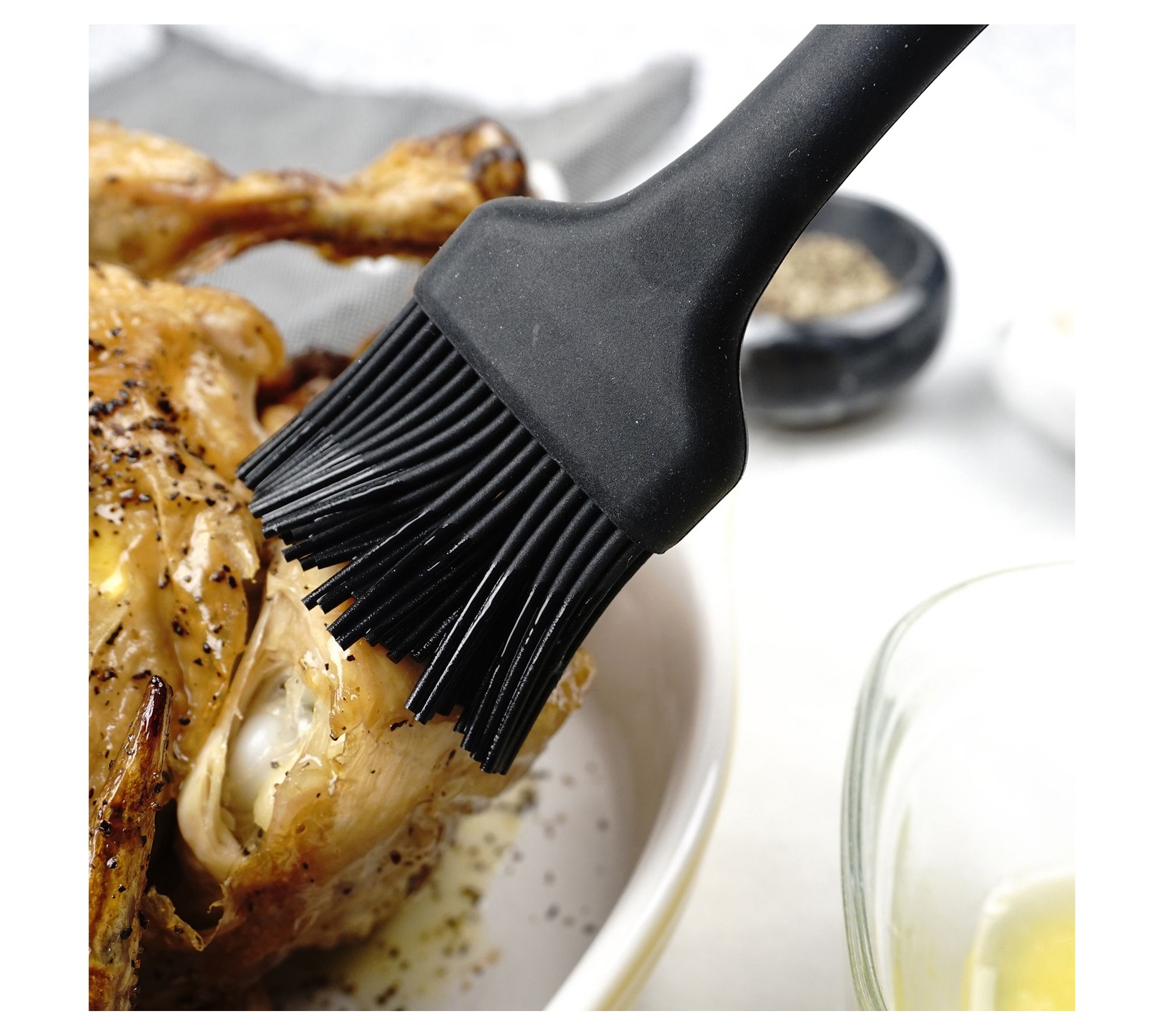 Offering silicone bristles designed to gently spread glazes, sauces, and melted butter, this basting brush is the perfect way to easily add flavor to your foods. From RSVP.