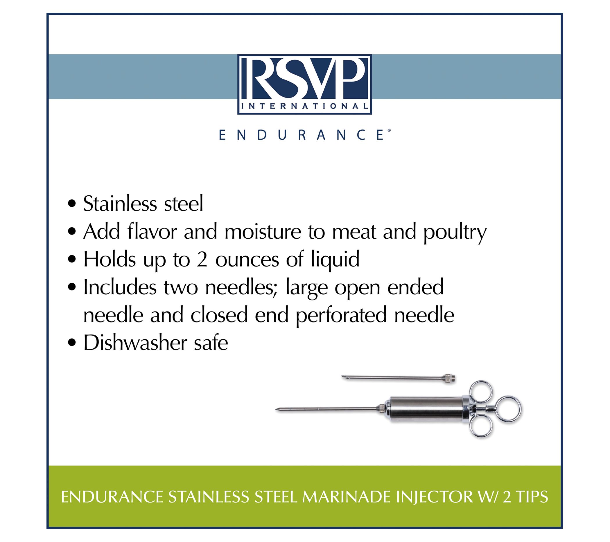 Infuse your meat and poultry with delicious flavors thanks to this stainless steel marinade injector set. From RSVP.