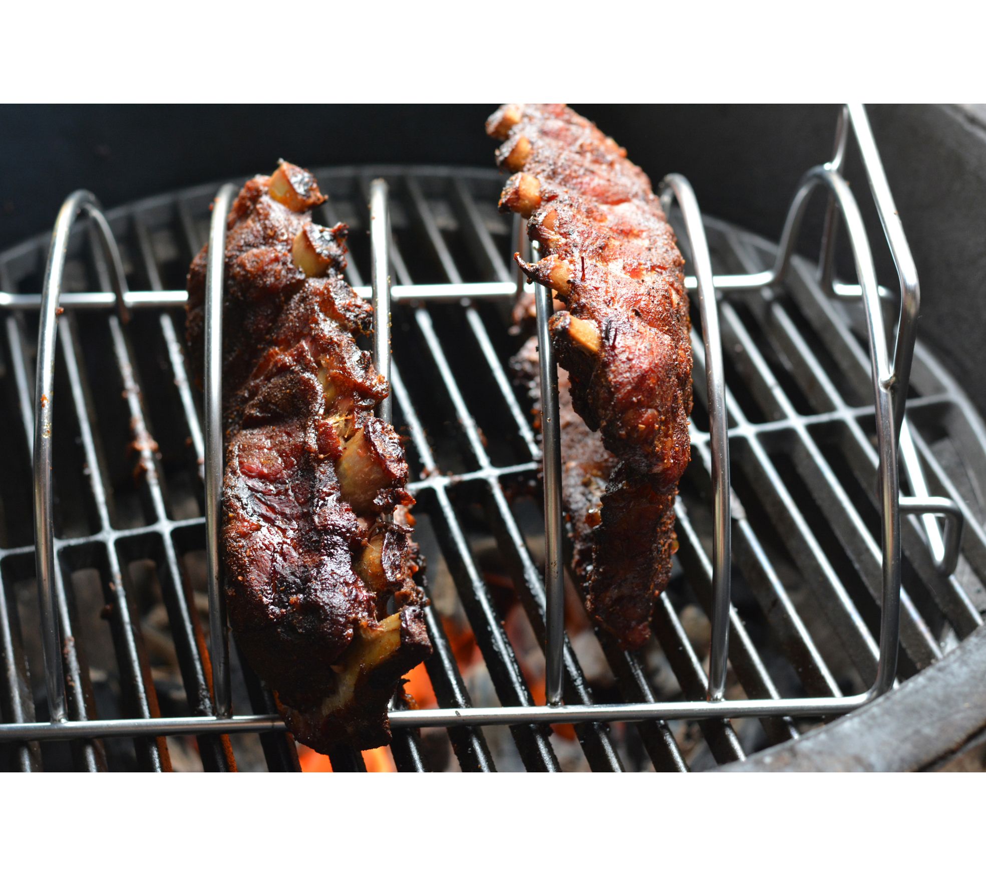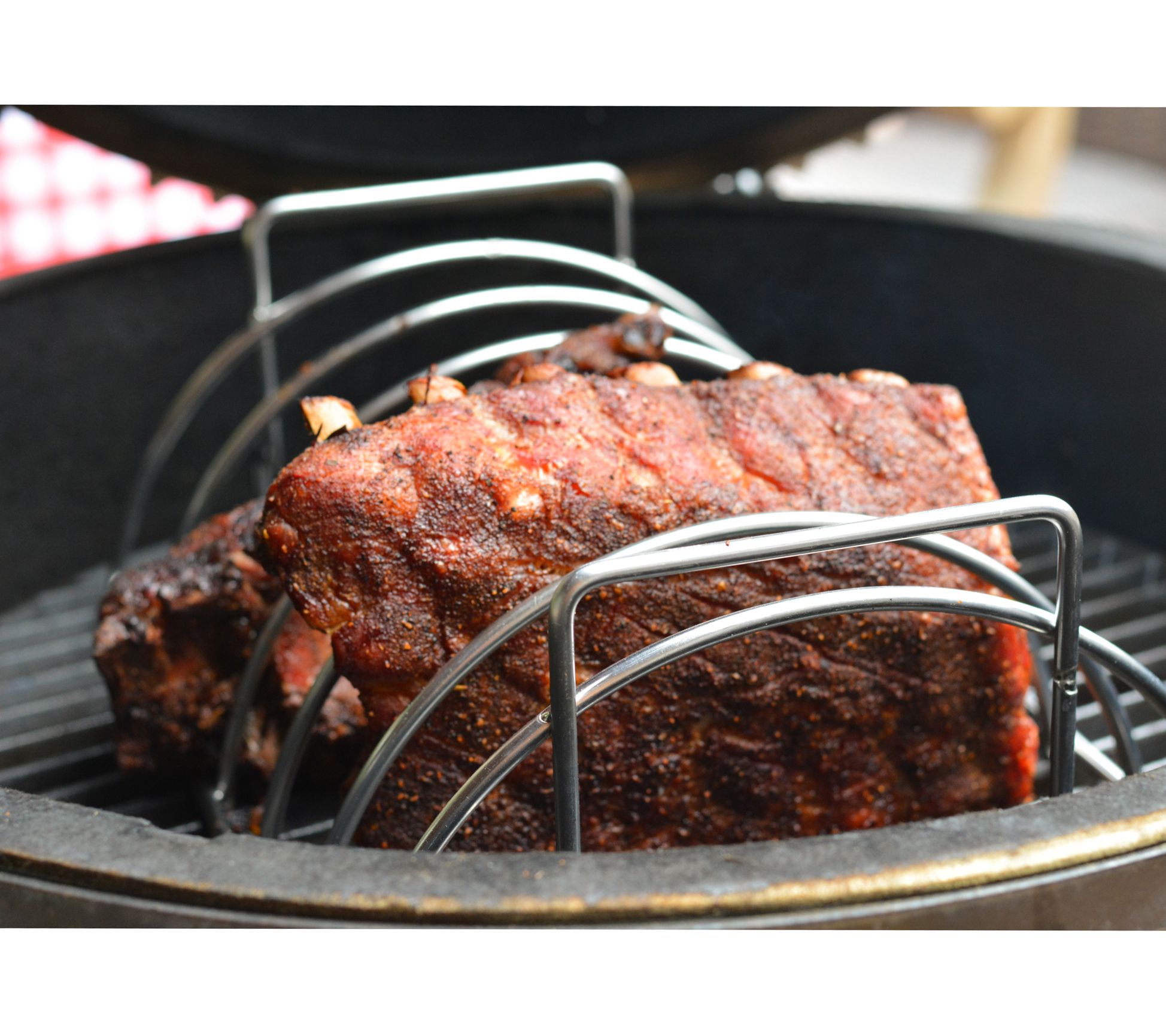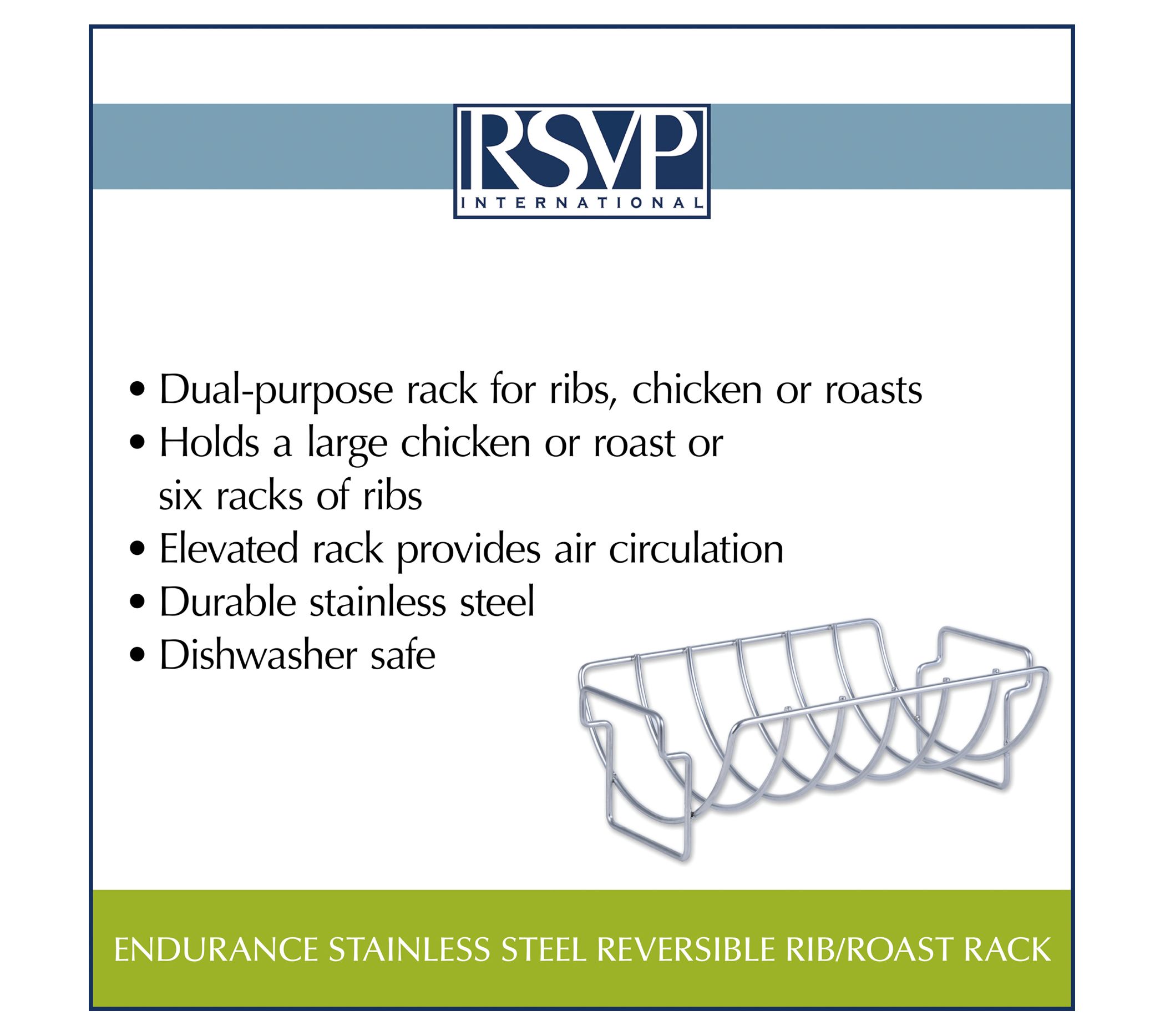 Mouthwatering ribs, chicken, and roasts are all on the menu with this reversible stainless steel rack, oven-safe to 500F and dishwasher-safe for easy cleanup. From RSVP.