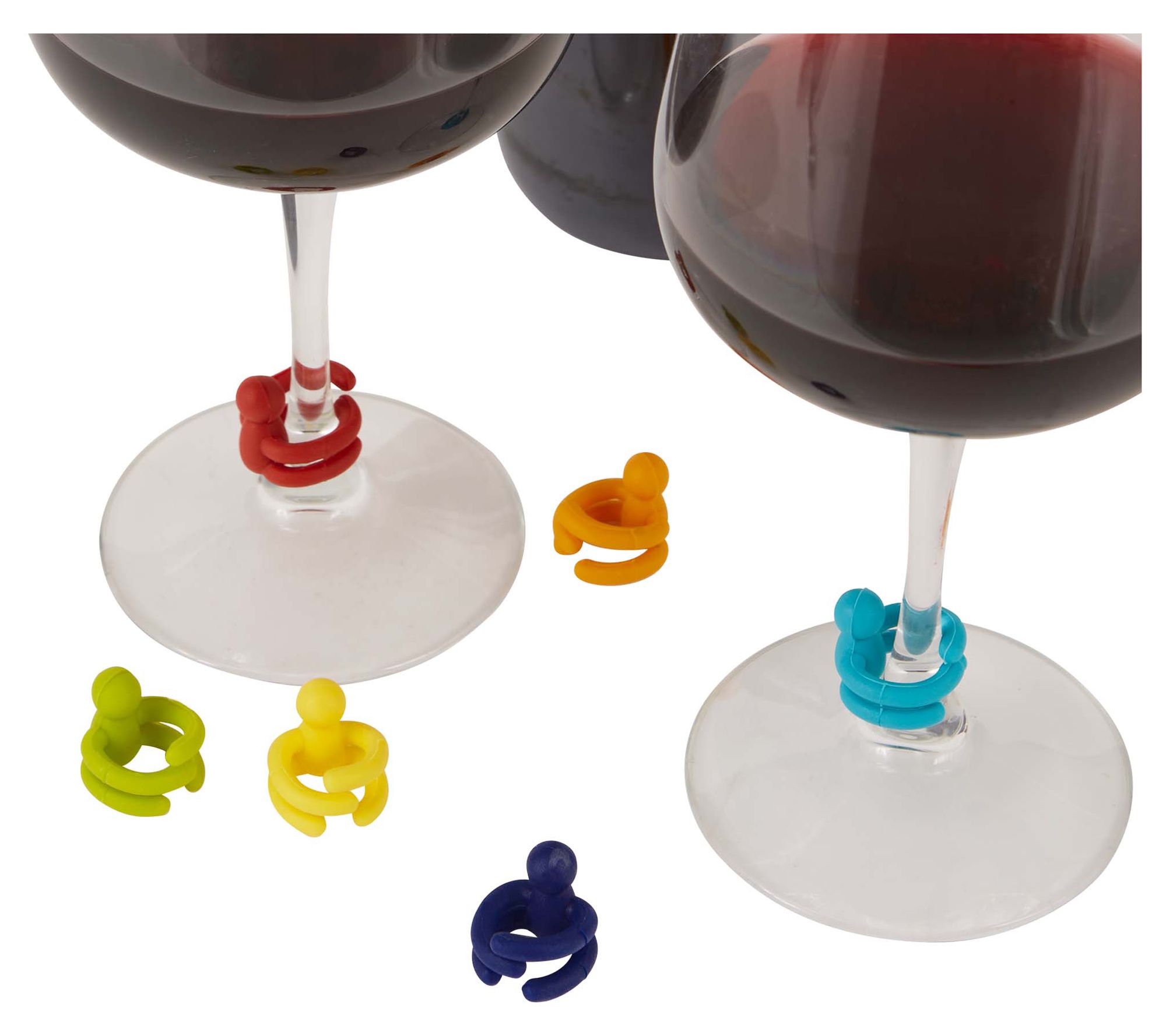 Add a splash of color and a dash of fun to your next gathering with this set of six stemware markers. These charming drink markers, crafted from silicone, come in an assortment of vibrant colors, making it a breeze to keep track of everyone's drink. From RSVP.