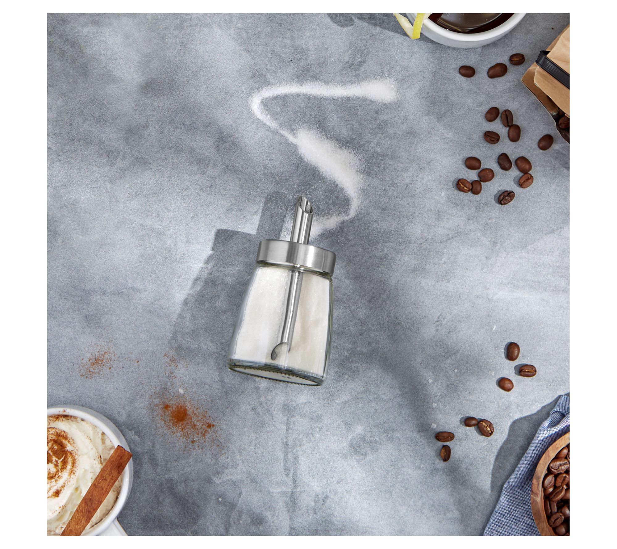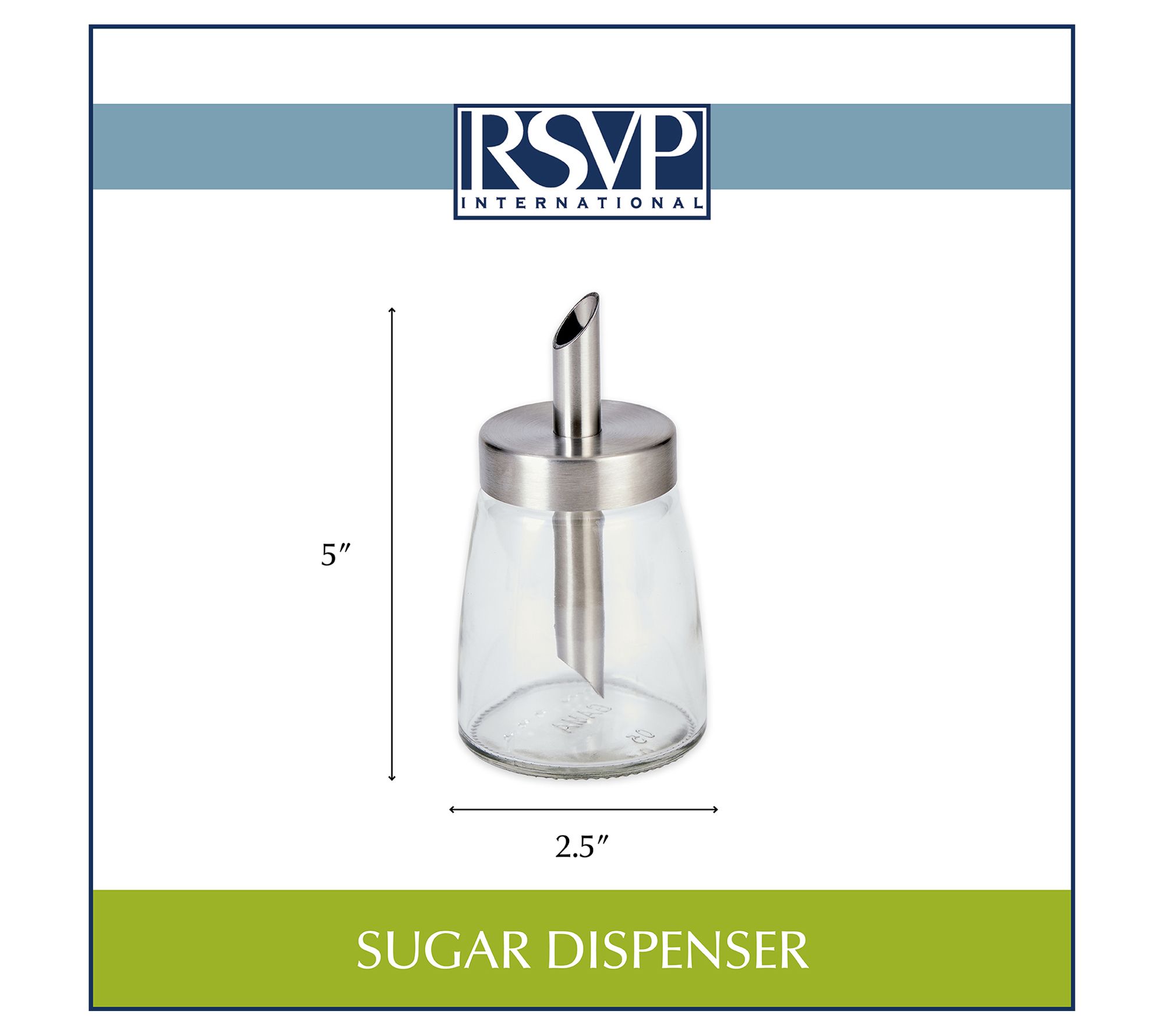 Enjoy a cozy morning coffee at home with the RSVP sugar dispenser. This sleek, clear glass jar with a stainless steel lid makes adding just the right amount of sugar to your beverage easy and mess-free. Perfect for any kitchen countertop, it's both functional and stylish. From RSVP.