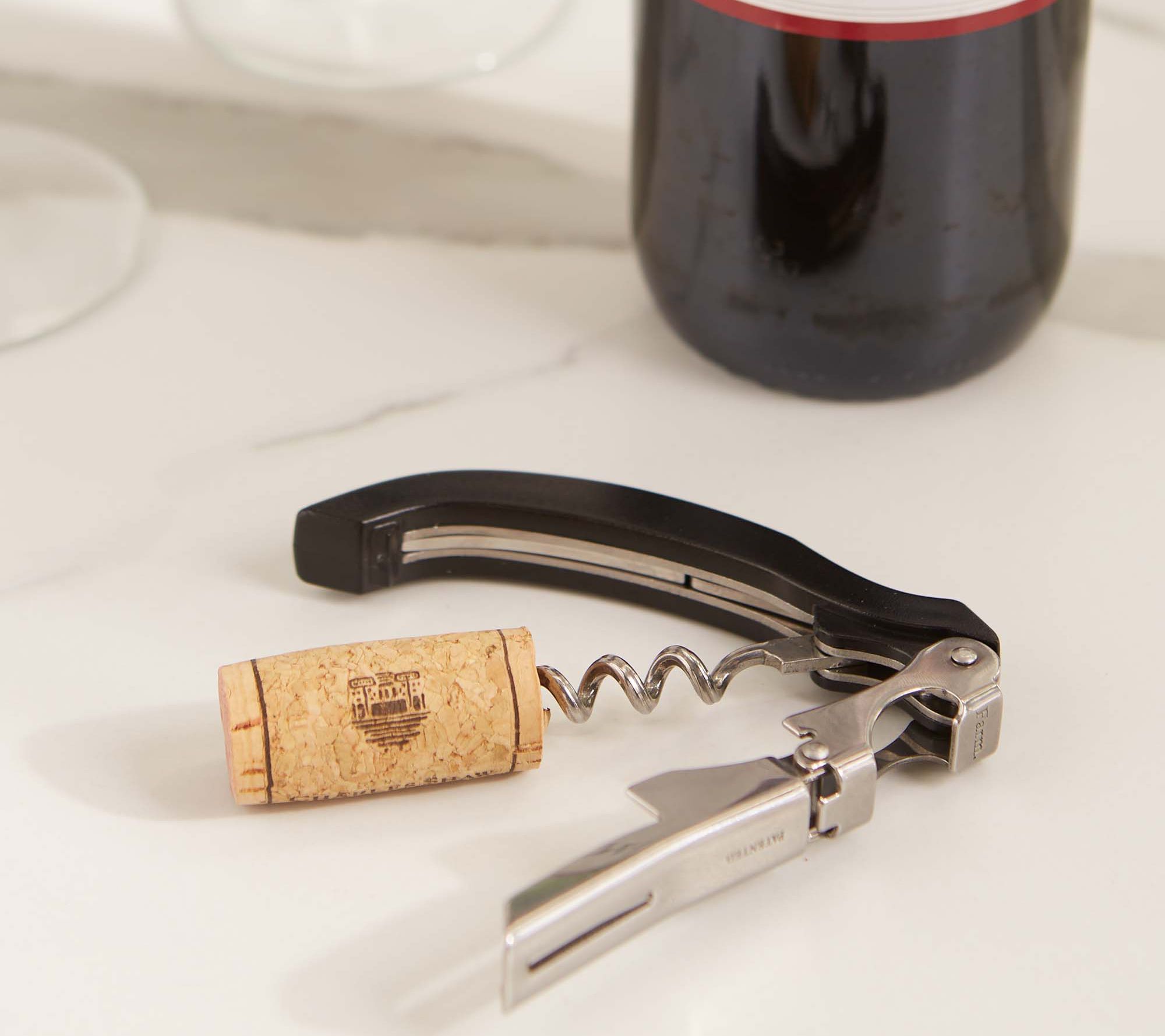 Opening bottles feels effortless with this waiter's wine opener, whether you're sharing a celebratory toast or relaxing with a favorite craft beer. The stainless steel corkscrew, foil cutter, and bottle opener all fold out from a contoured handle, making it a handy choice for picnics, dinners, or evenings at home. From RSVP.