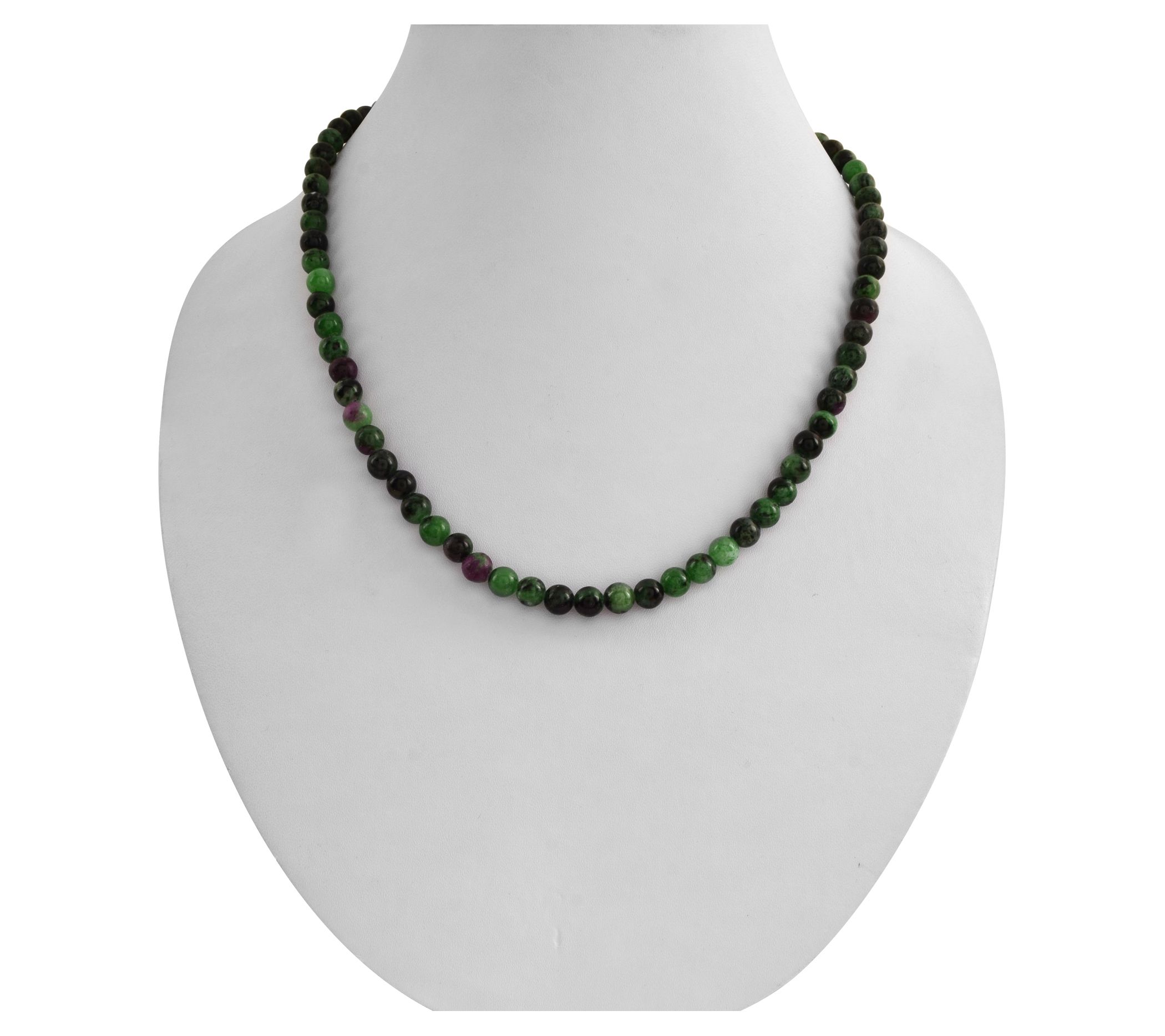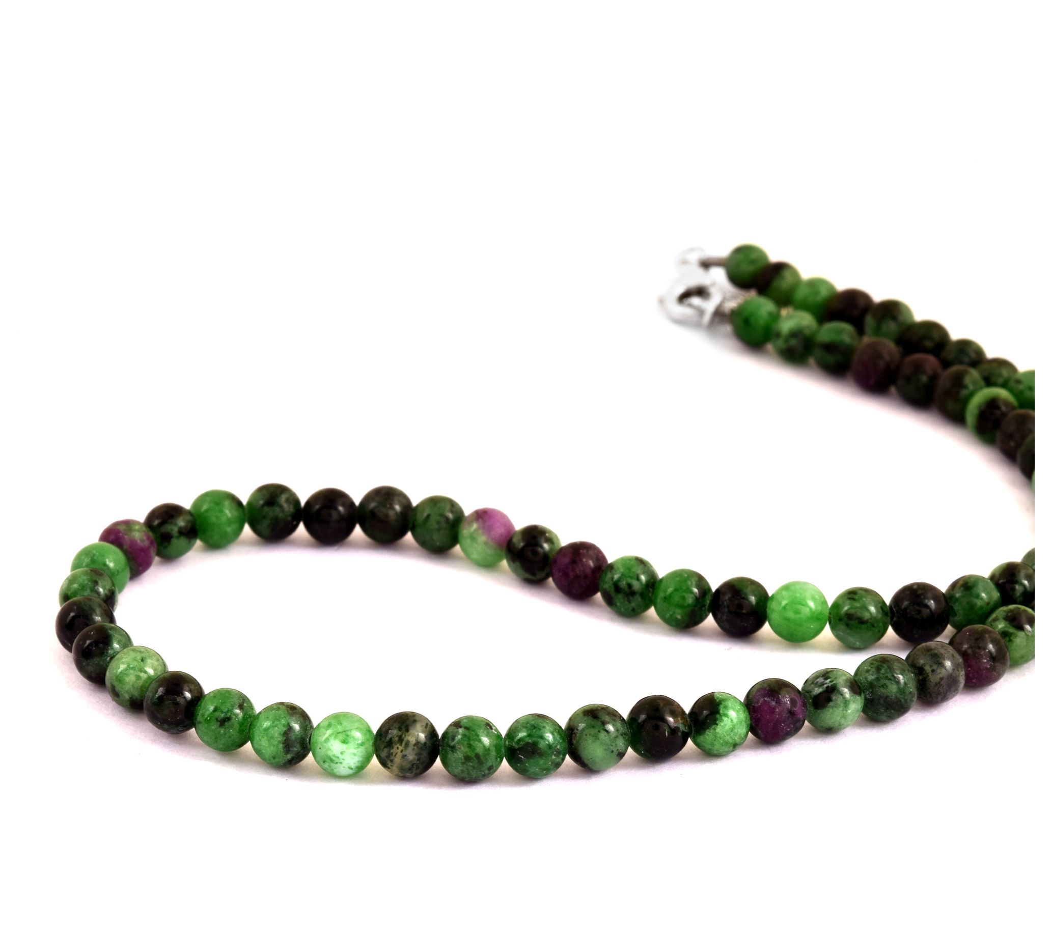 Ruby Ziosite Beaded Necklace, Sterling