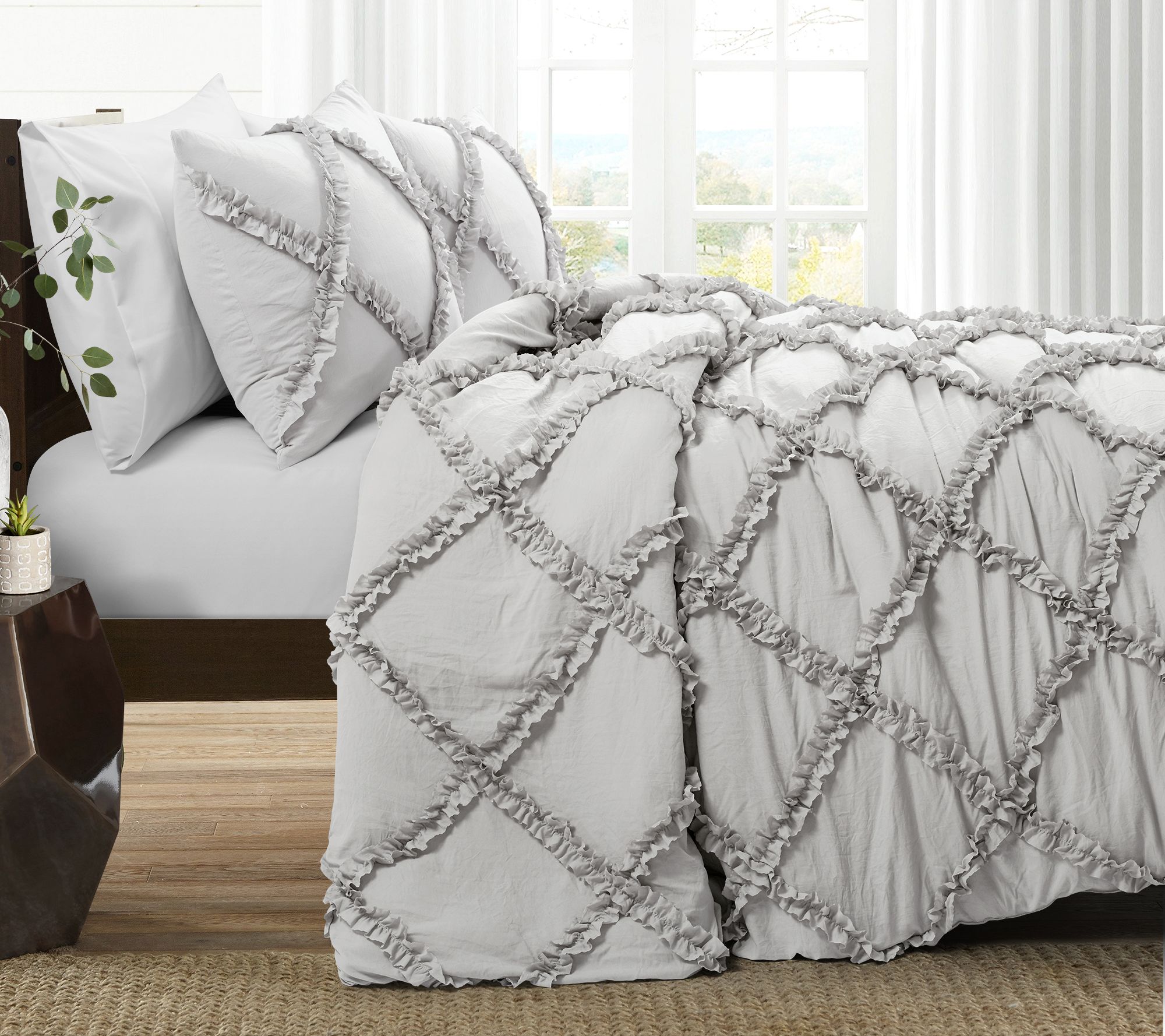 Ruffle Diamond 3-Piece King Comforter Set by Lush Decor