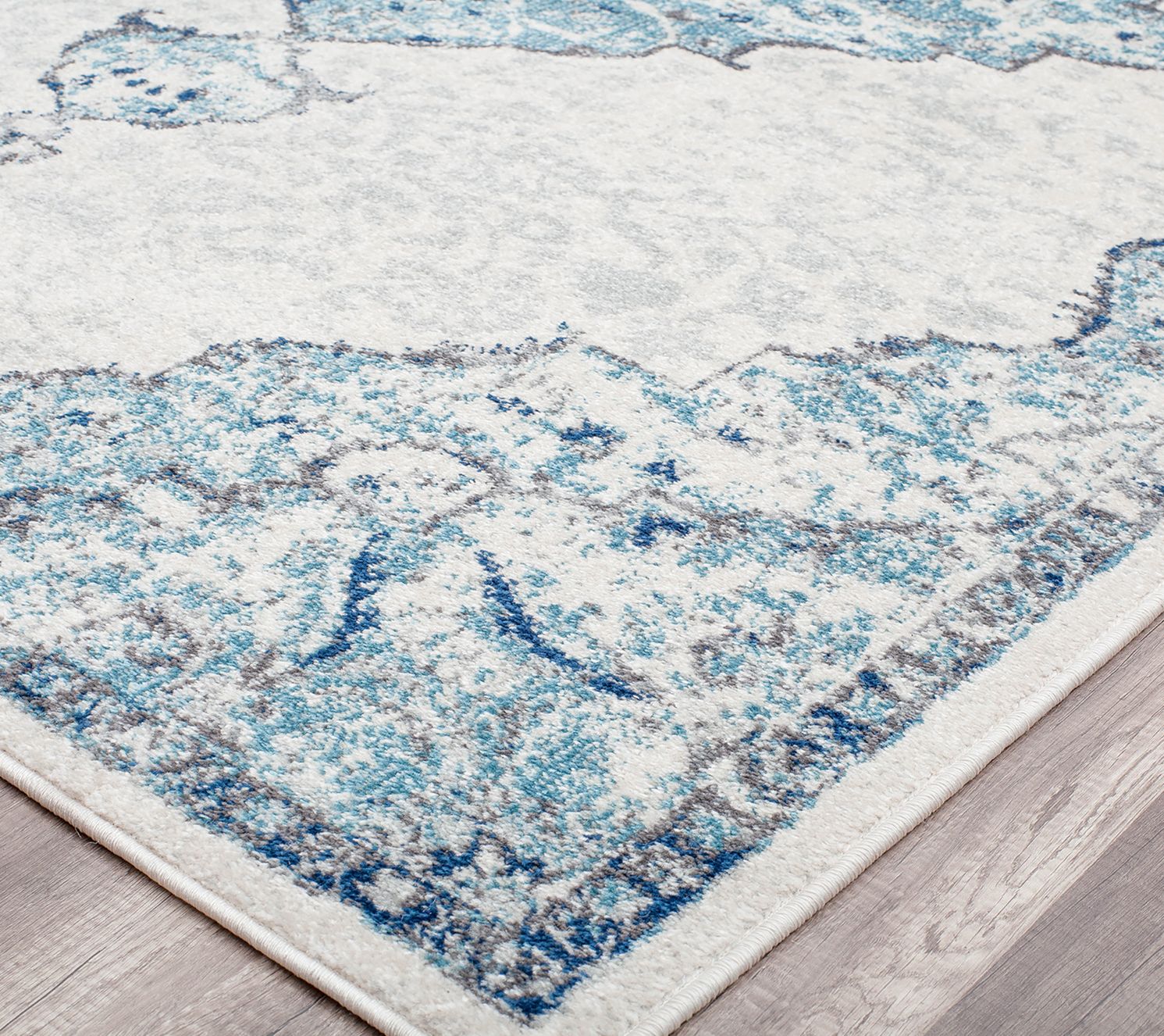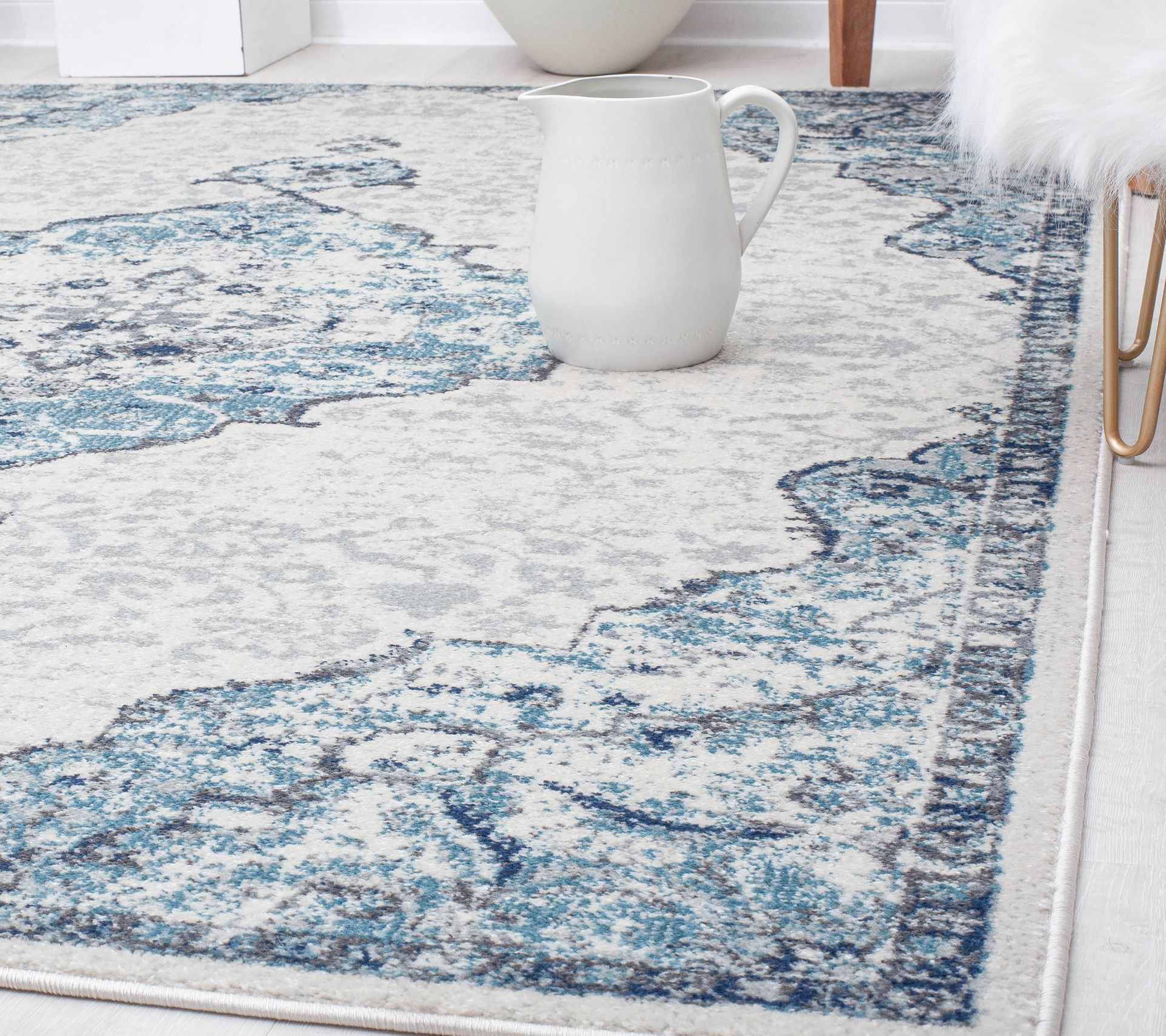 Topped with an intricate, timeless design that will always be in style and cool shades of blue and gray, the Hailey Bluebonnet area rug will fill any room with effortless sophistication. From Rugs America.