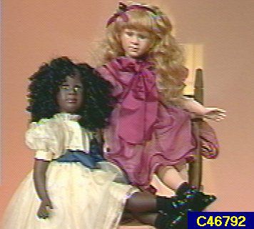 Adeline features blue eyes, long blonde human hair wig and real eyelashes. She is wearing a warm raspberry organza dress with a matching satin bow around her neck and in her hair. Black patent shoes and black socks complete her outfit. Wool-stuffed cloth body. Vinyl head, hands, feet. Limited edition 1000 worldwide. Stand not included. Measures 28-3/4". Comes with a numbered certificate. Made in Spain.