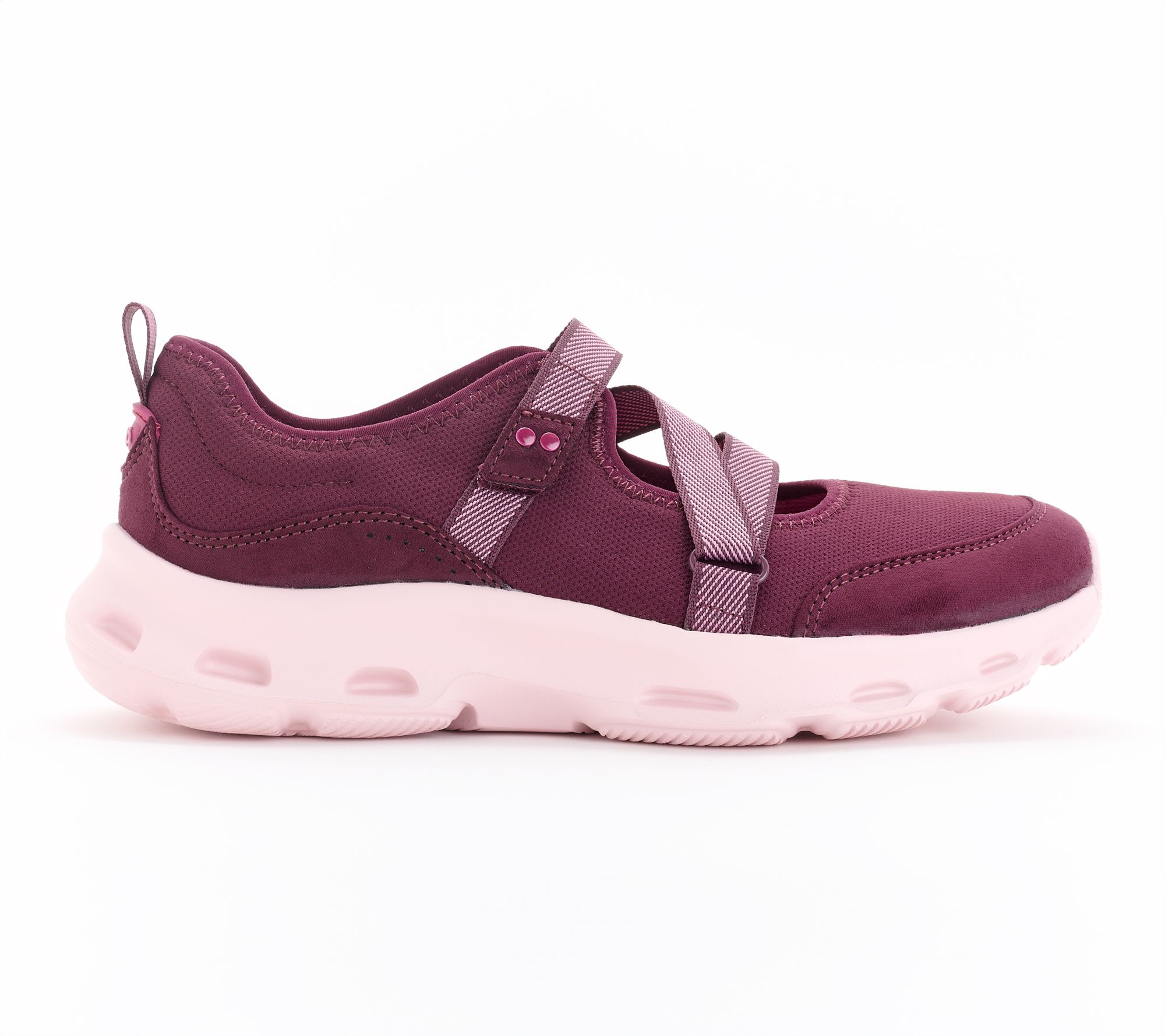 A morning walk, a quick trip to the market, or standing all day at work -- these athletic Mary Janes bring comfort and style to your busy. The Z-strap with easy hook-and-loop closure keeps the fit secure, while a soft fabric upper and anatomical insole offer cushioned support from arch to heel. From Ryka.