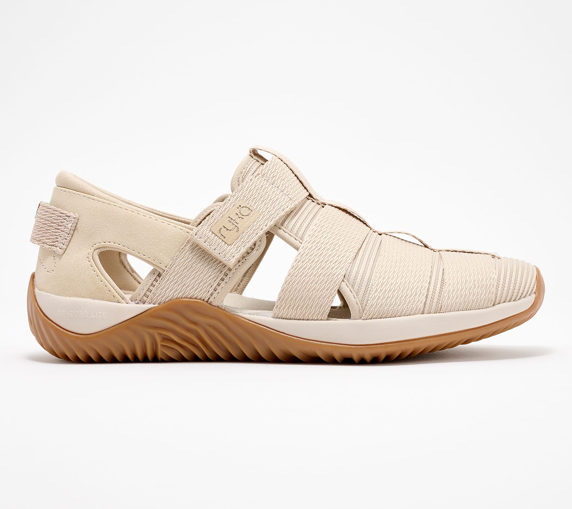 Warm afternoons at the park or seaside walks are made easier in these adjustable fisherman sandals, delivering a secure fit with hook-and-loop straps and cushioned comfort for every step. The flexible sole and padded heel collar keep you supported, whether you're out exploring or enjoying a casual outing with friends. From Ryka.