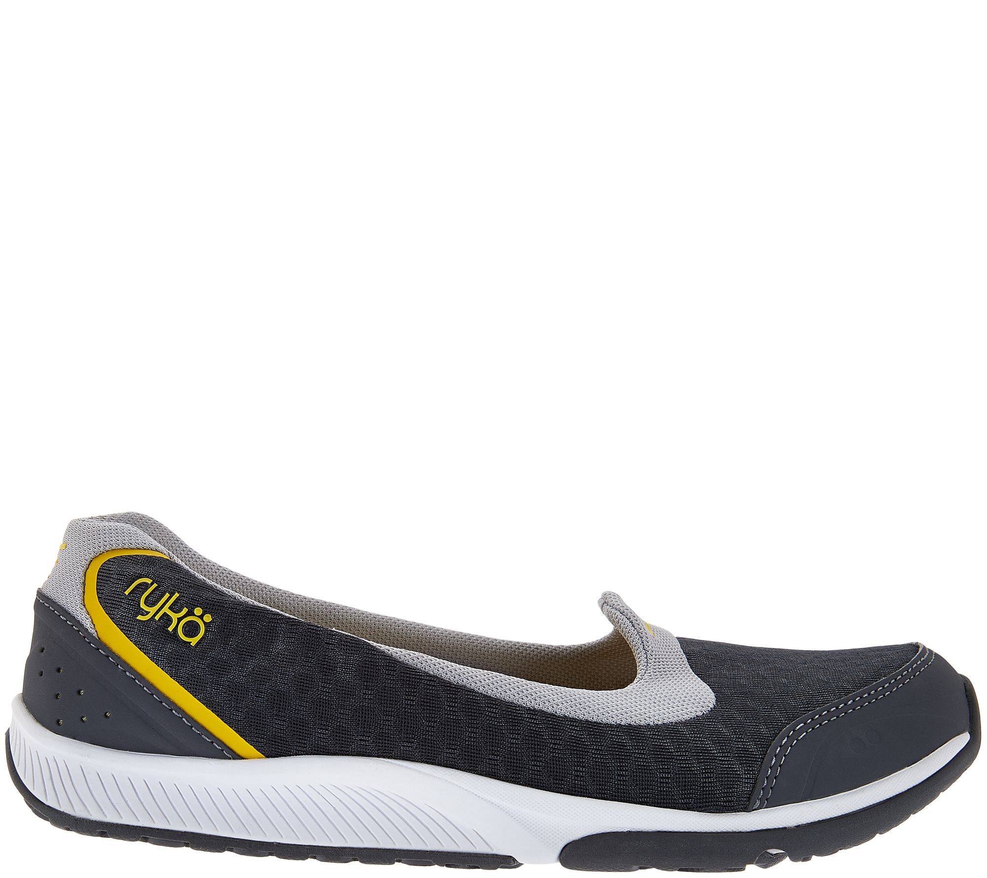 Buoyant beauties. The light-on-your-feet Flutter from Ryka makes an easy-to-wear addition to your slip-on sneaker collection. Its airy construction boasts allover mesh and perforated and stitch detailing--so you can get walk-ready in an instant with the Flutter at the ready. From Ryka.