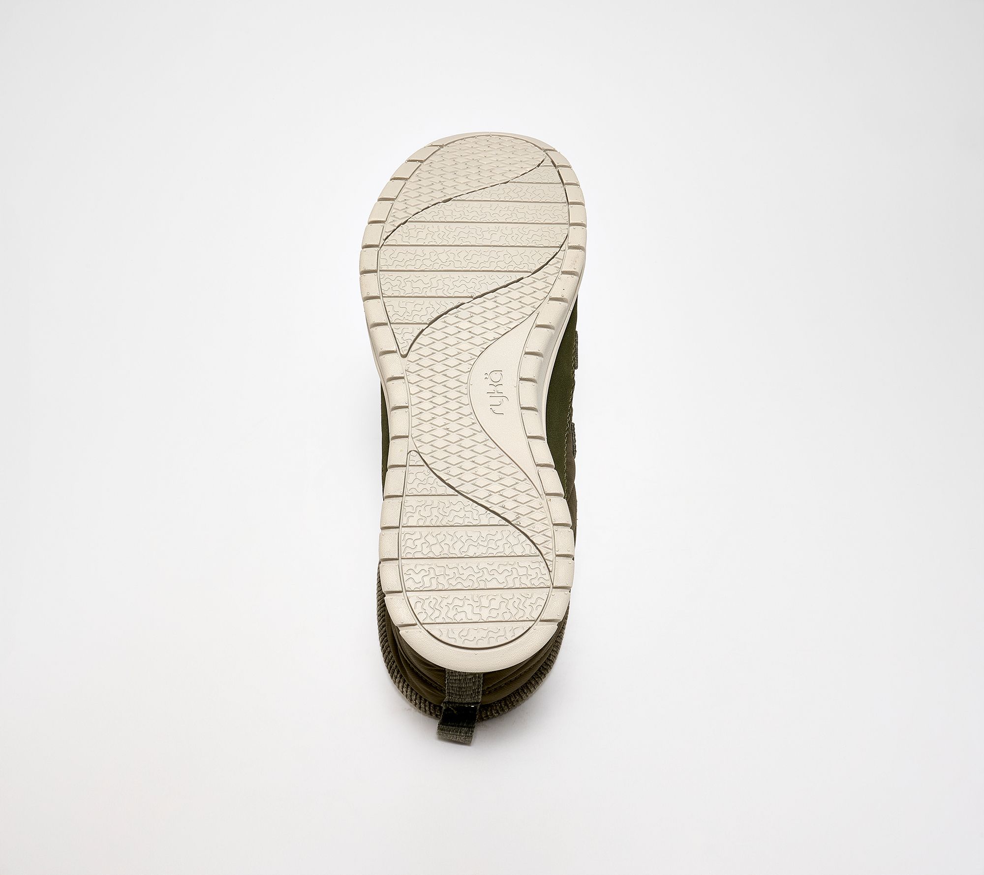 Water- and stain-resistant Ryka Repel construction, quilted padded upper, mudgard, infinity-style toggle laces, padded tongue and collar, heel pull