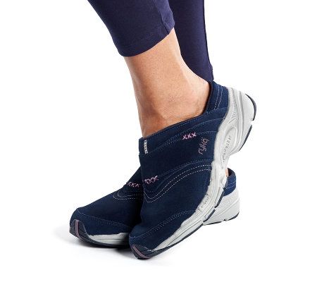 They're more than just a shoe--enhanced with Ryka Rocker Technology, superior flexibility, and water-resistant suede uppers, these sporty mules are made for walking.