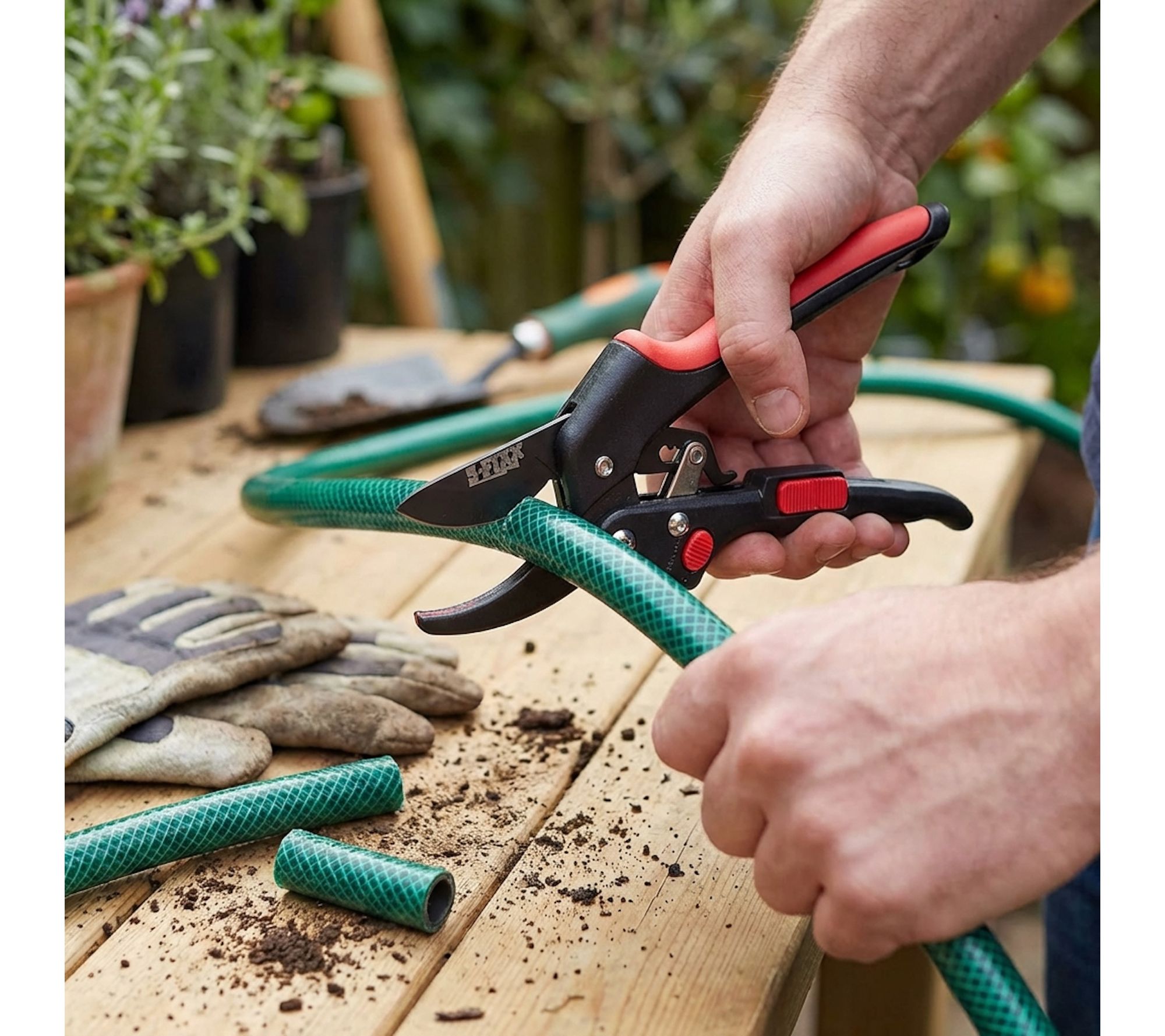• Cuts through tough branches and stems