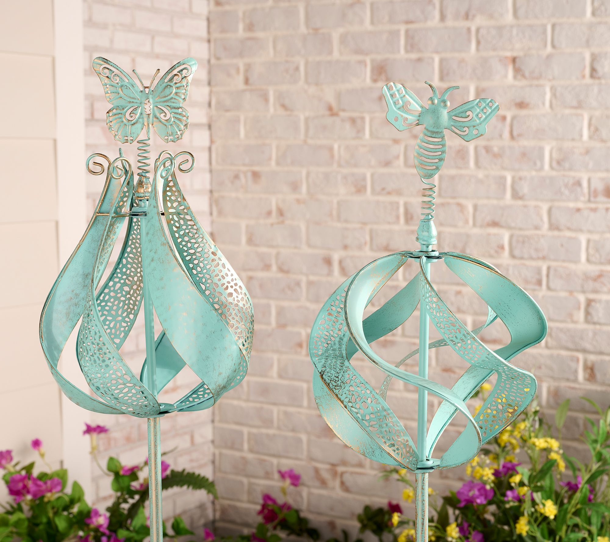 S/2 Decorative Indoor/Outdoor Metal Wind Spinners by Kim Gravel
