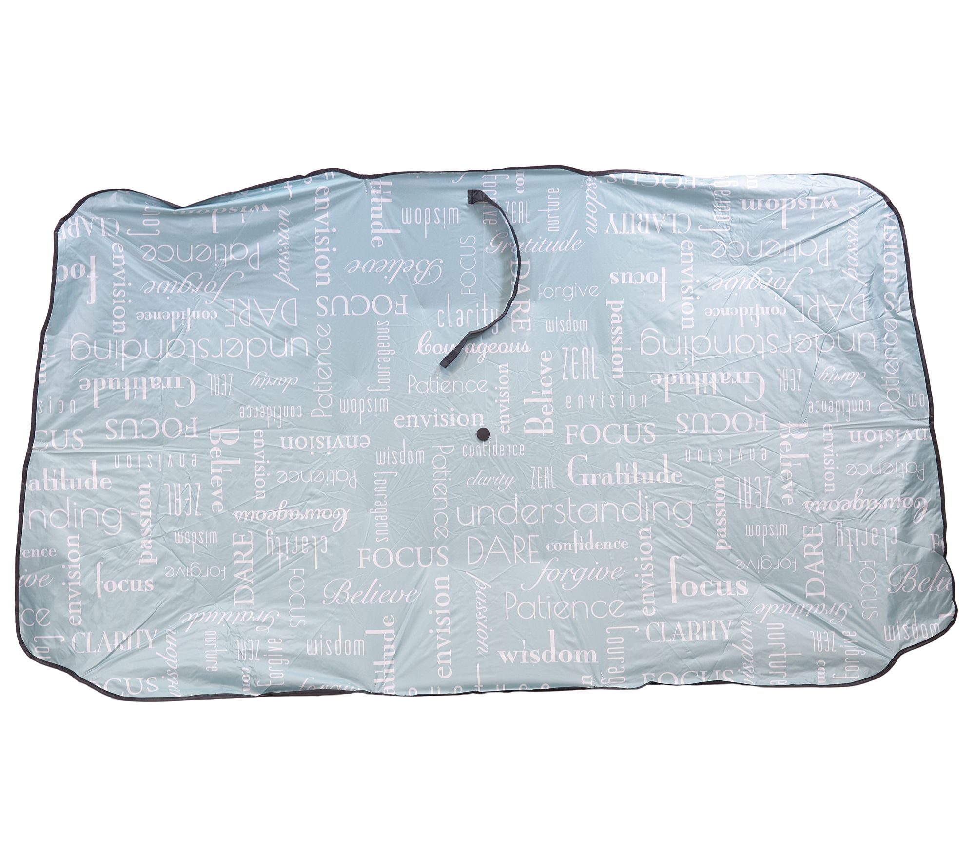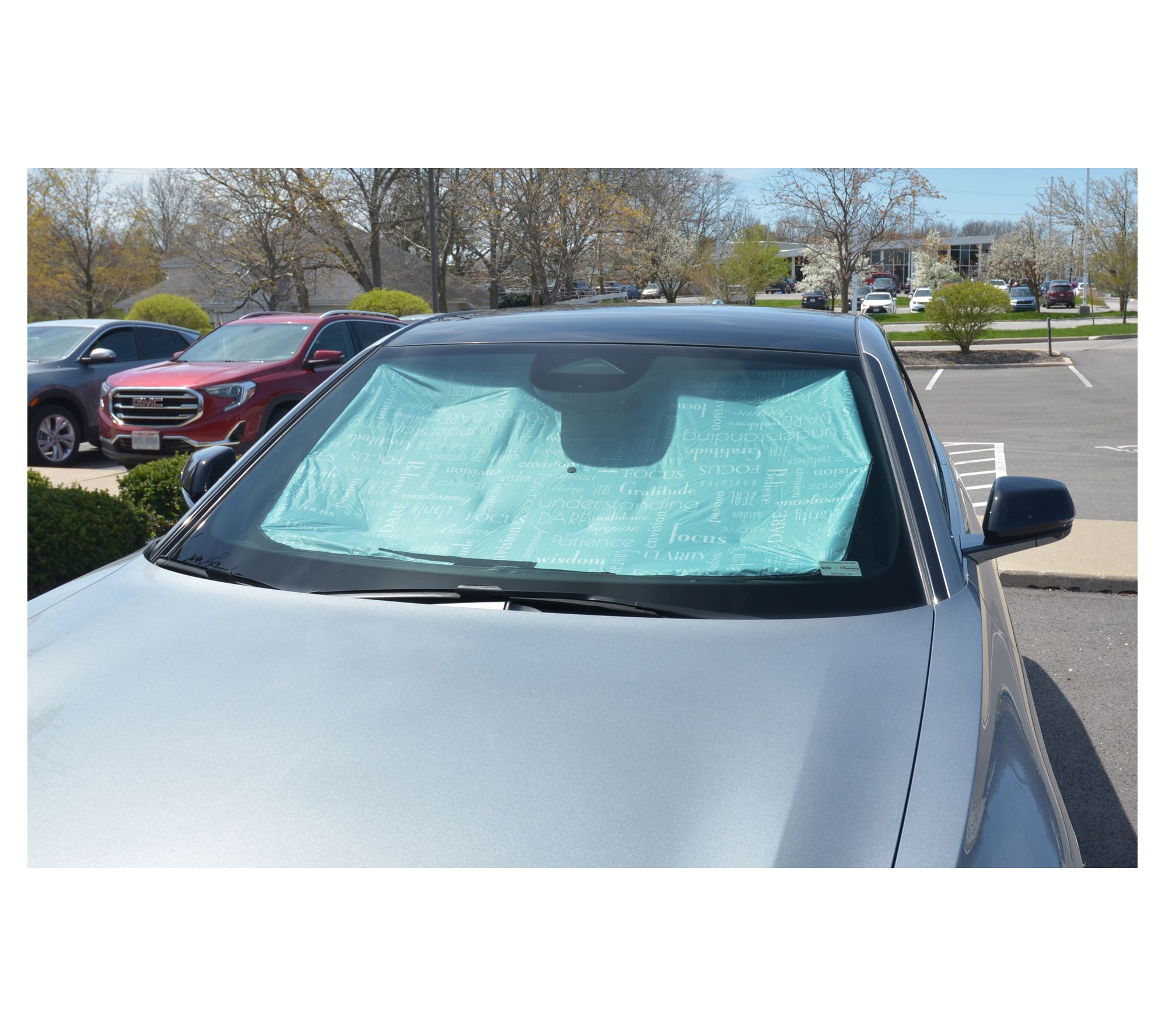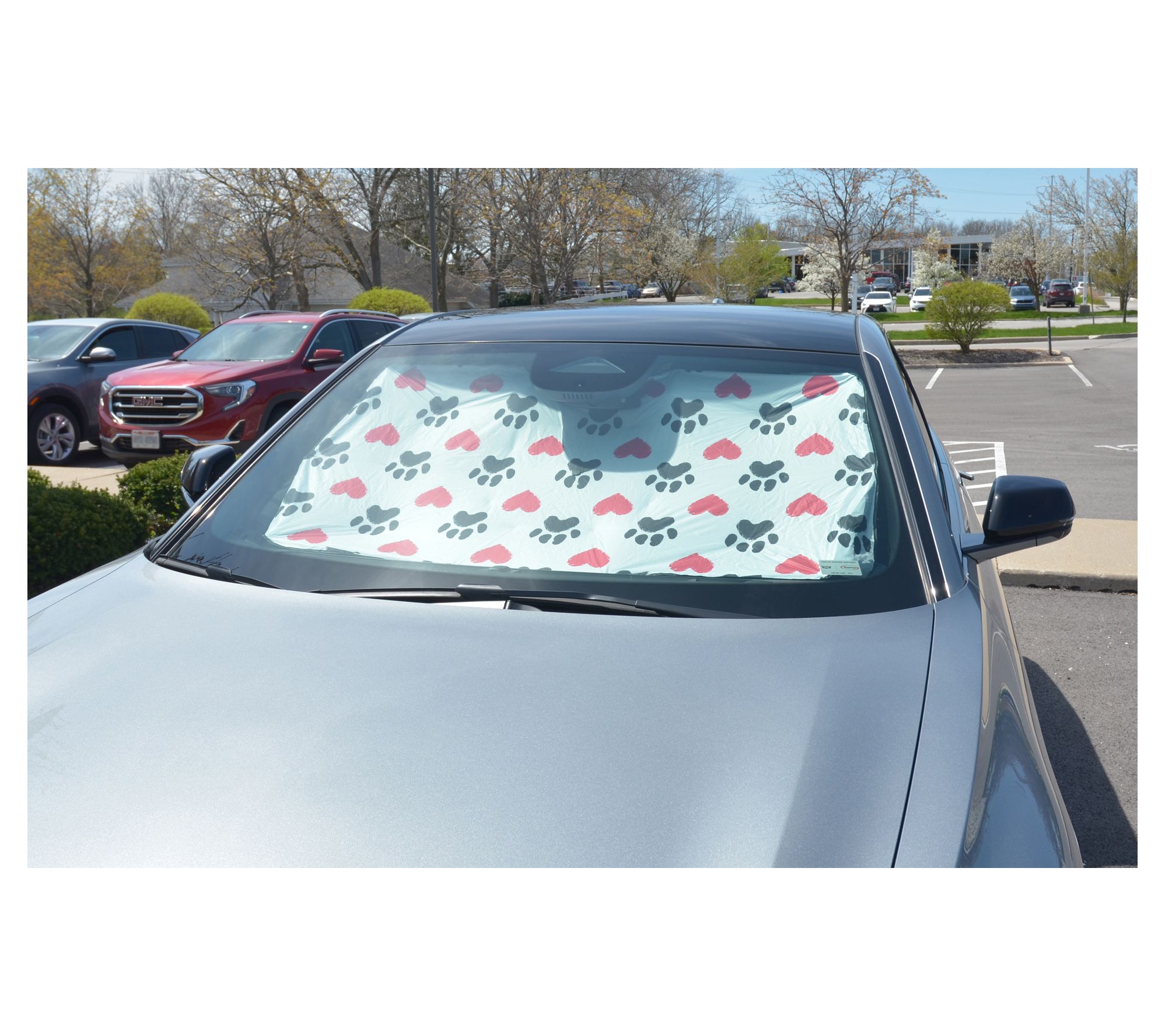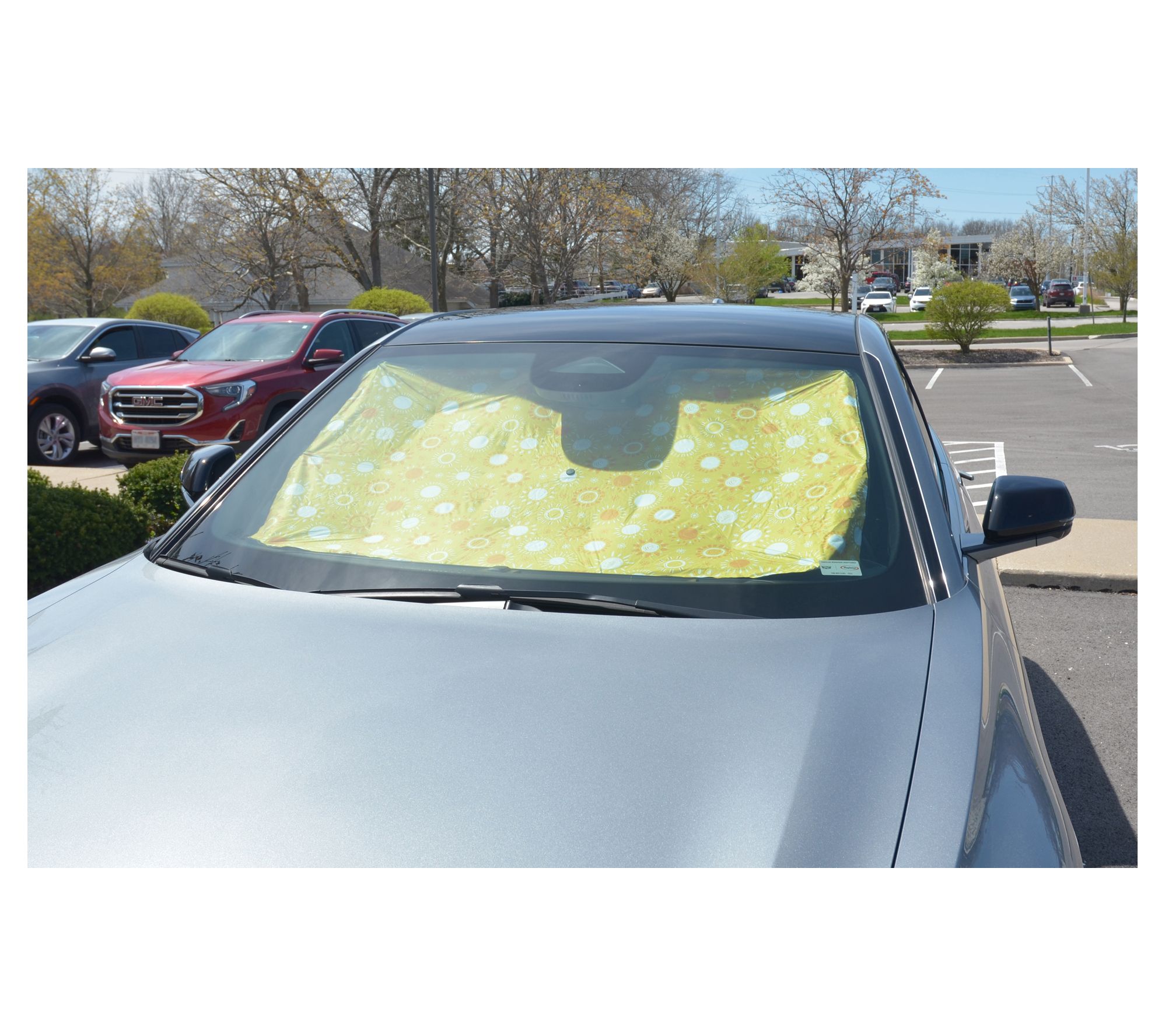 Includes one print car shade and one solid-color car shade, each with storage sleeve