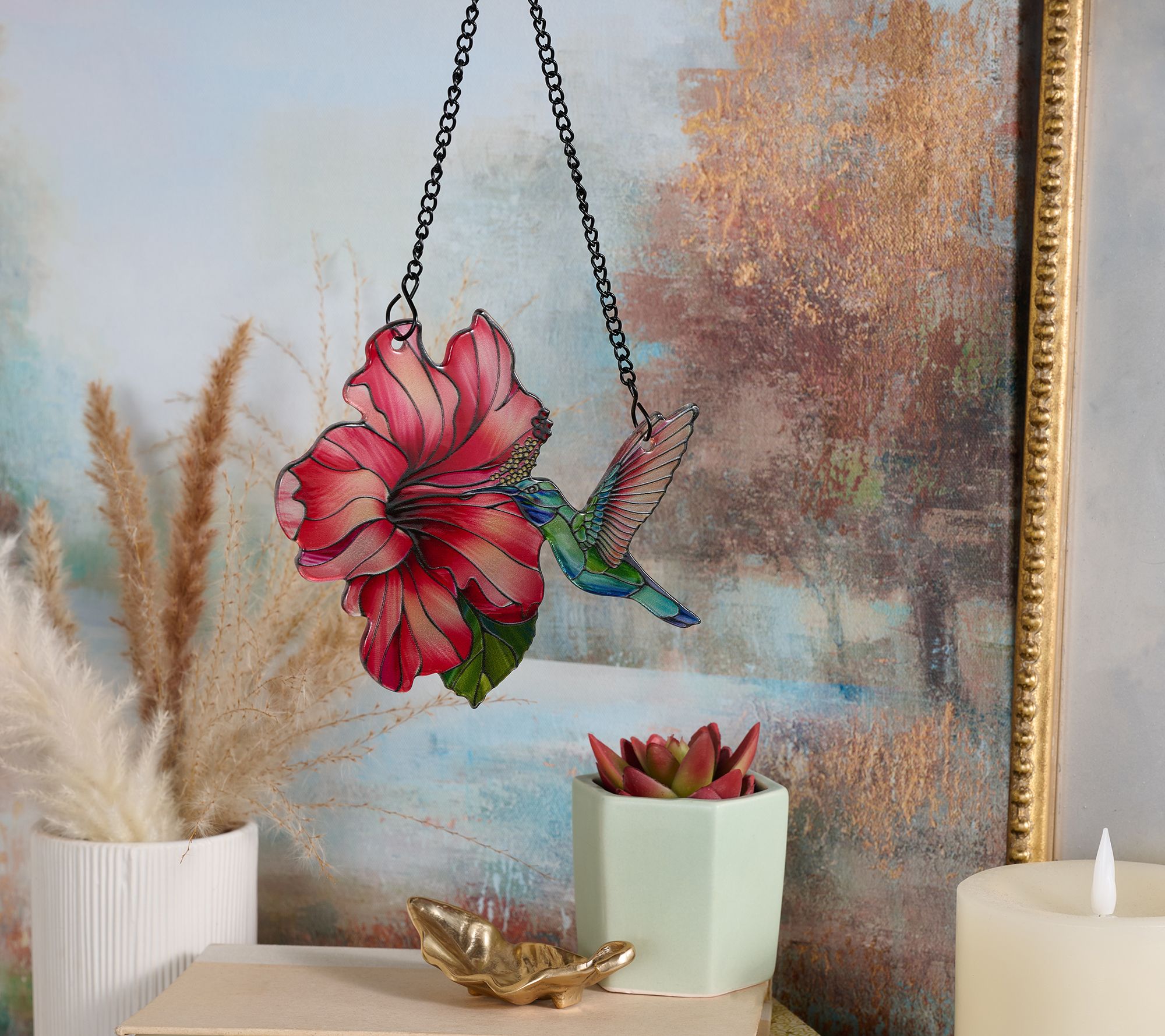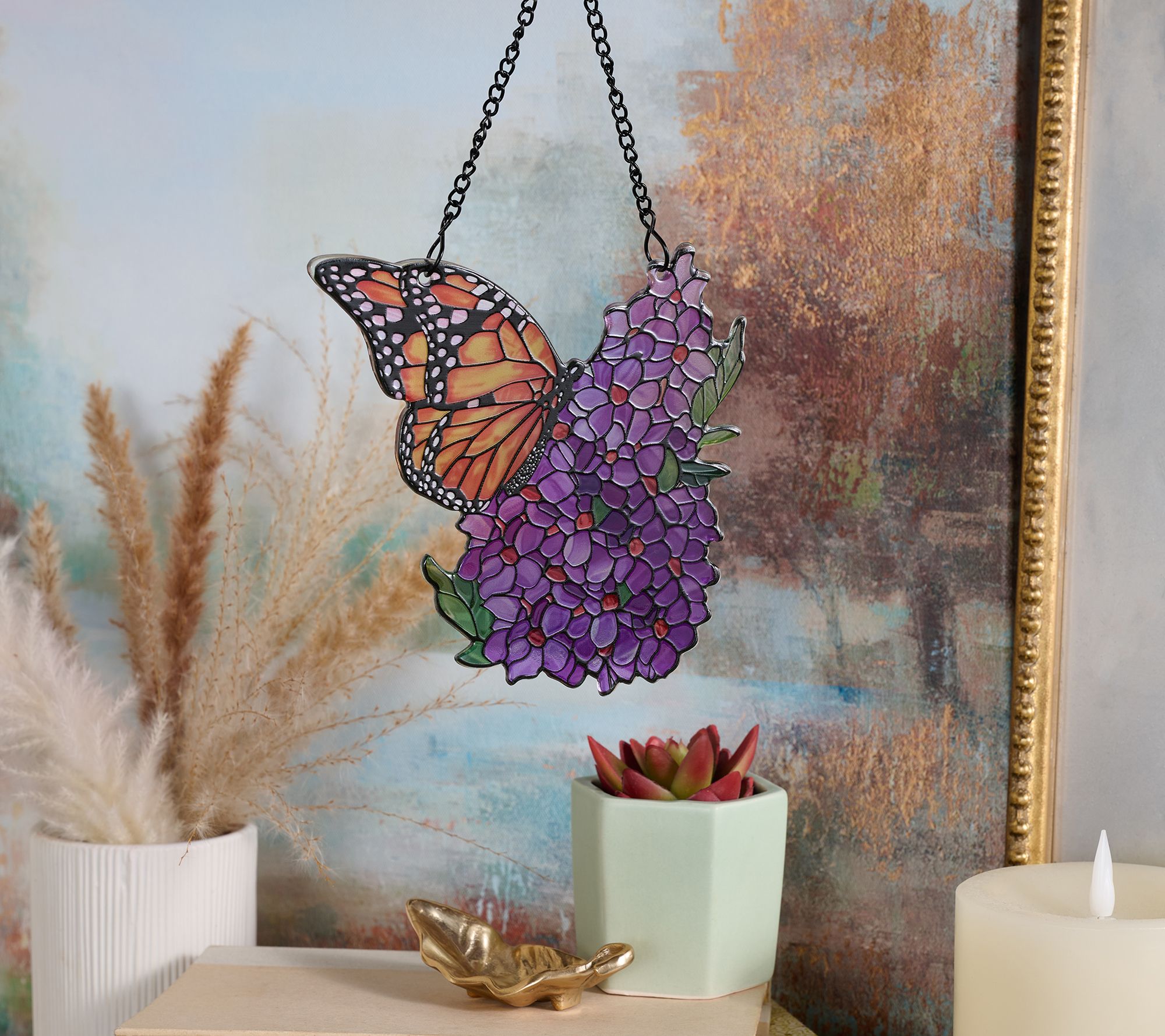 Color dances across your space when sunlight streams through these floral glass suncatchers, each accented by a charming bird or insect motif. Showcasing magnolia and dragonfly, hibiscus and hummingbird, plus hydrangea and butterfly, this trio makes a thoughtful gift or a delightful way to brighten windows year-round. From the Valerie Parr Hill Collection.