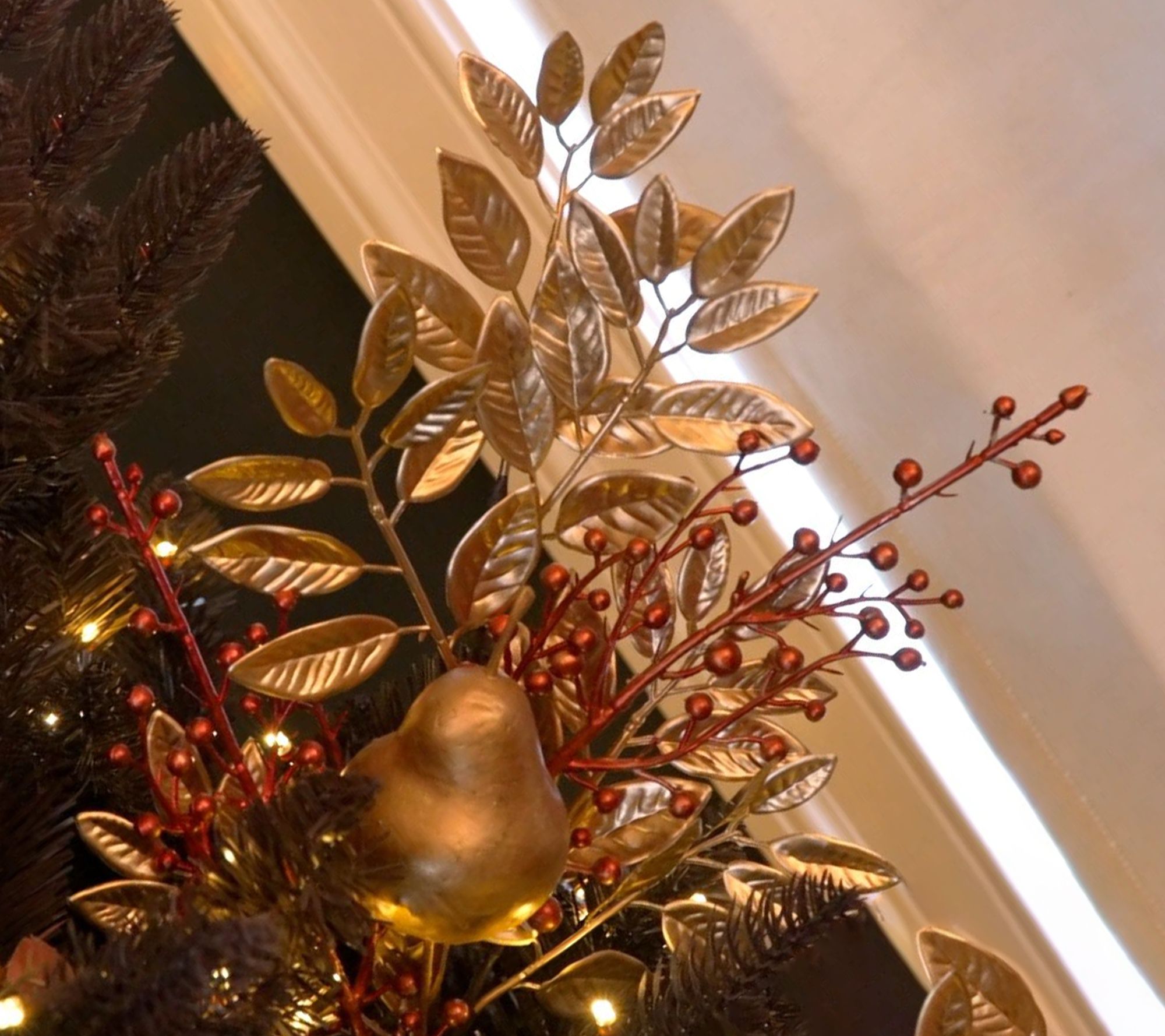 • Faux leaves, berries, and pear accent